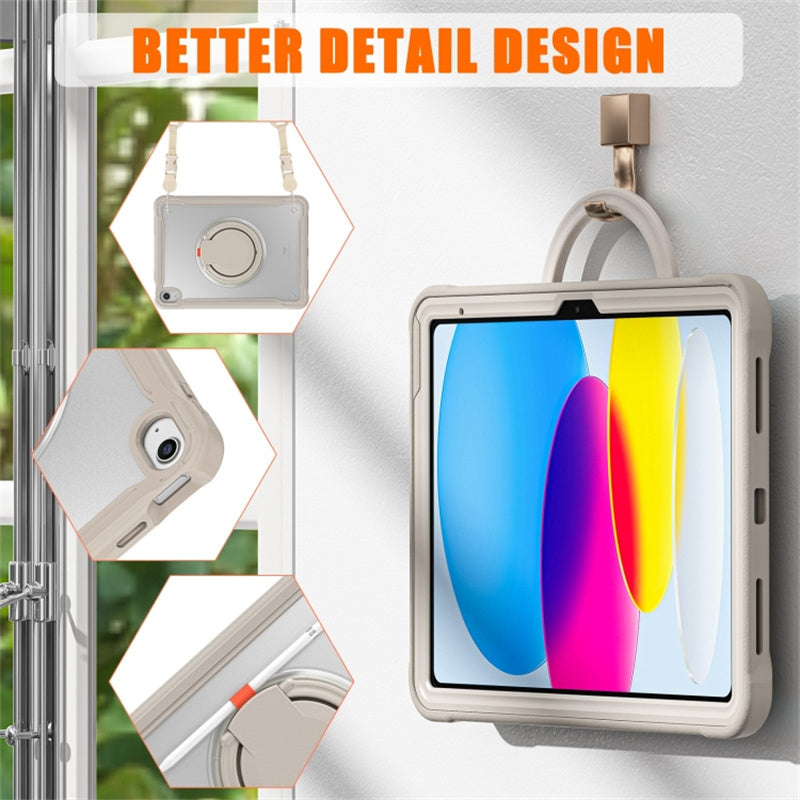 For iPad 10.9 (2022) 360-Degree Rotating Kickstand PC+TPU Cover Shockproof Portable Tablet Case with Shoulder Strap