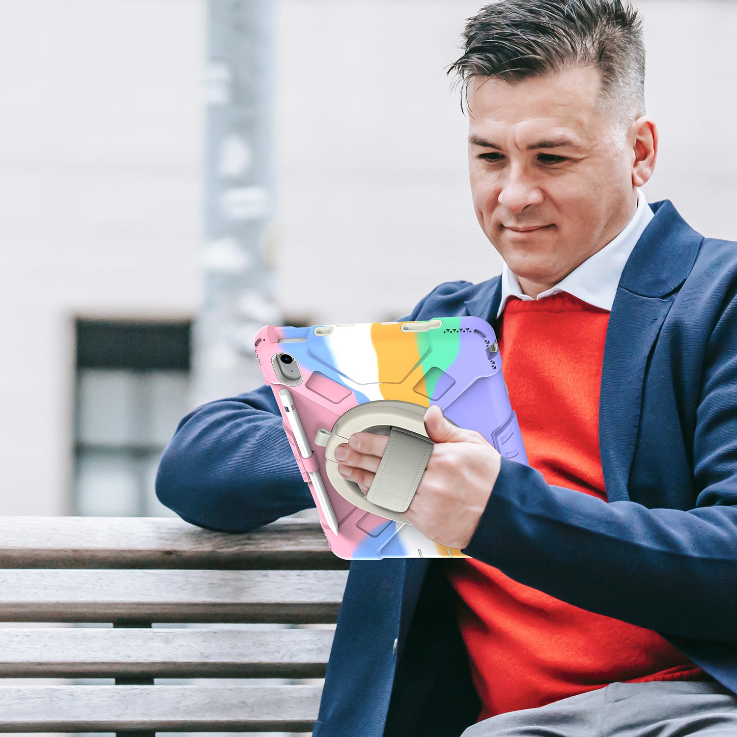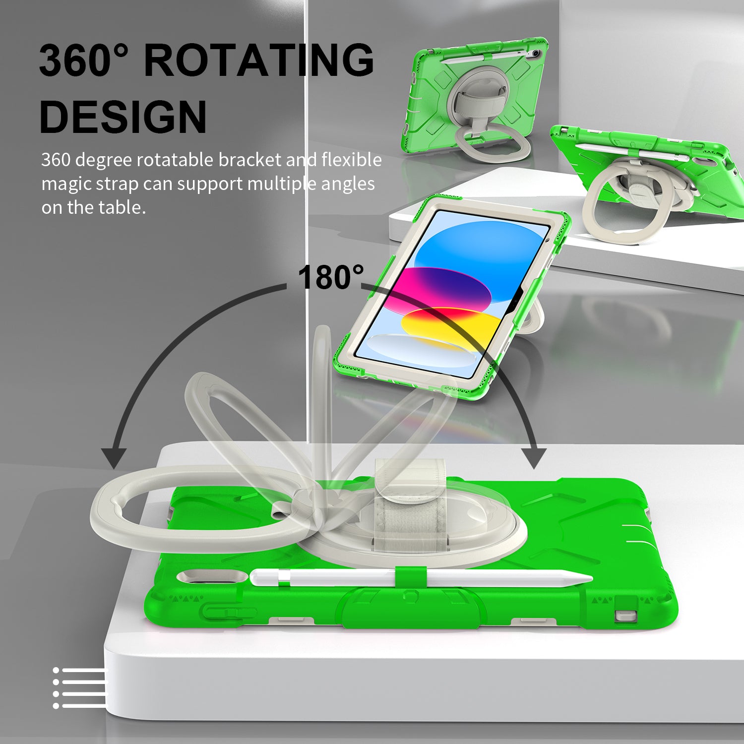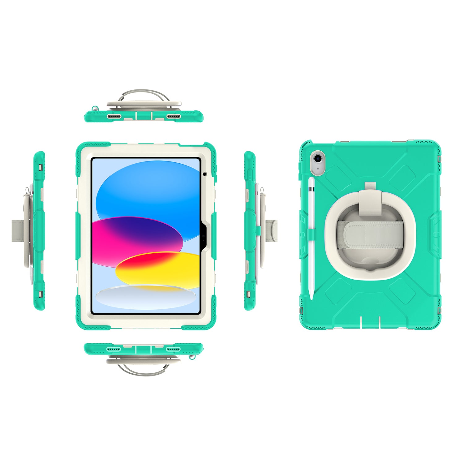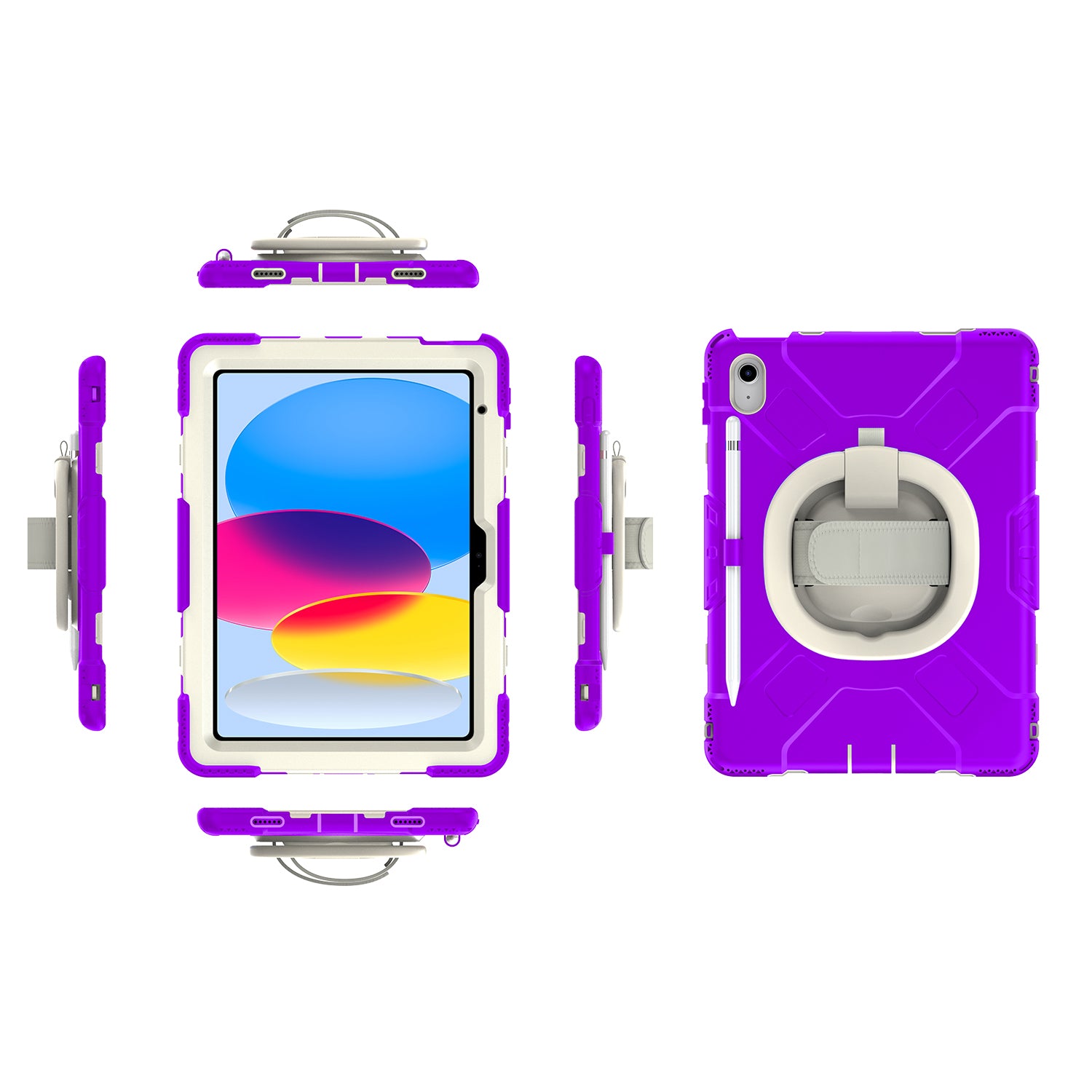 For iPad 10.9 (2022) Hand Strap Kickstand Tablet Case PC+Silicone Dual Layer Protective Cover with Shoulder Strap