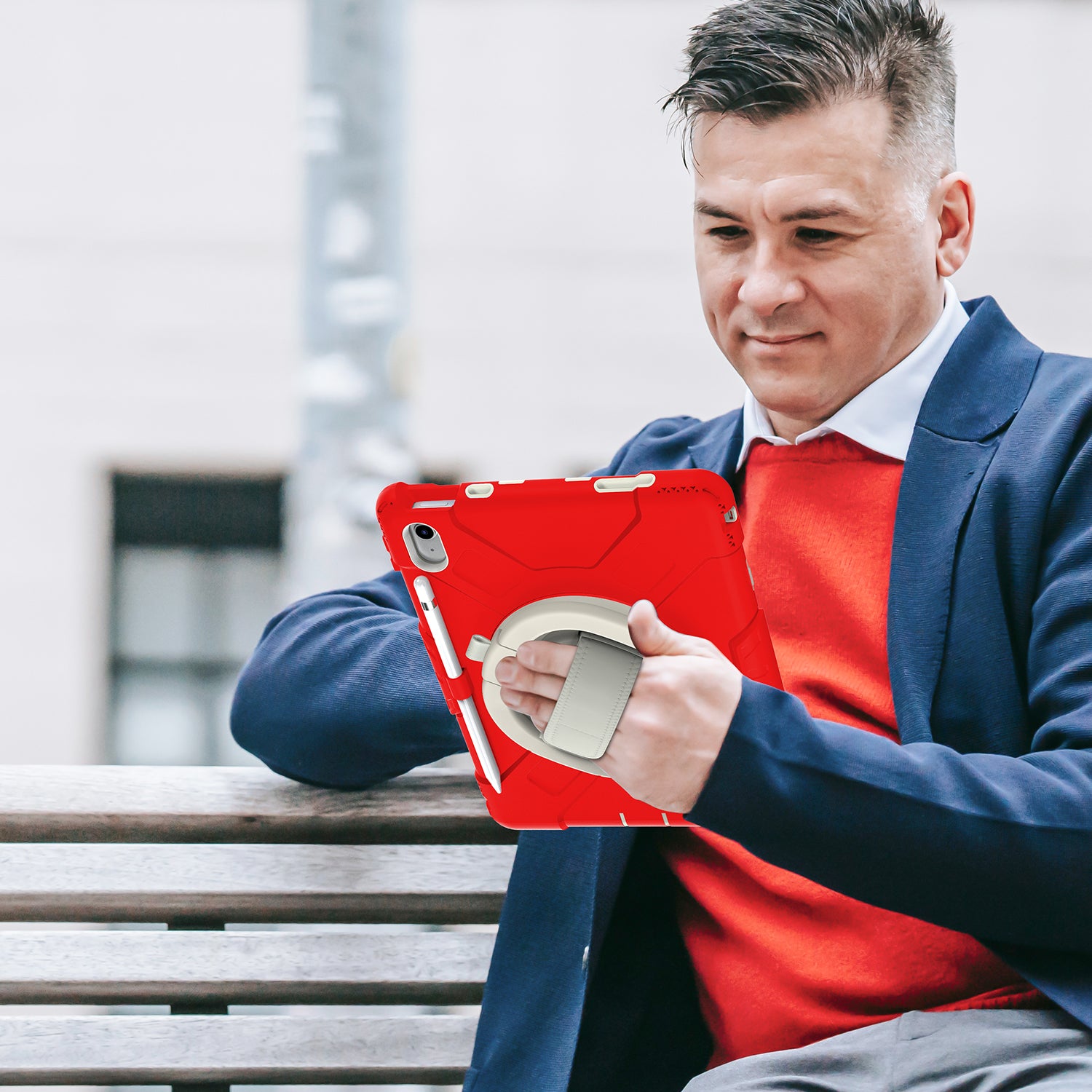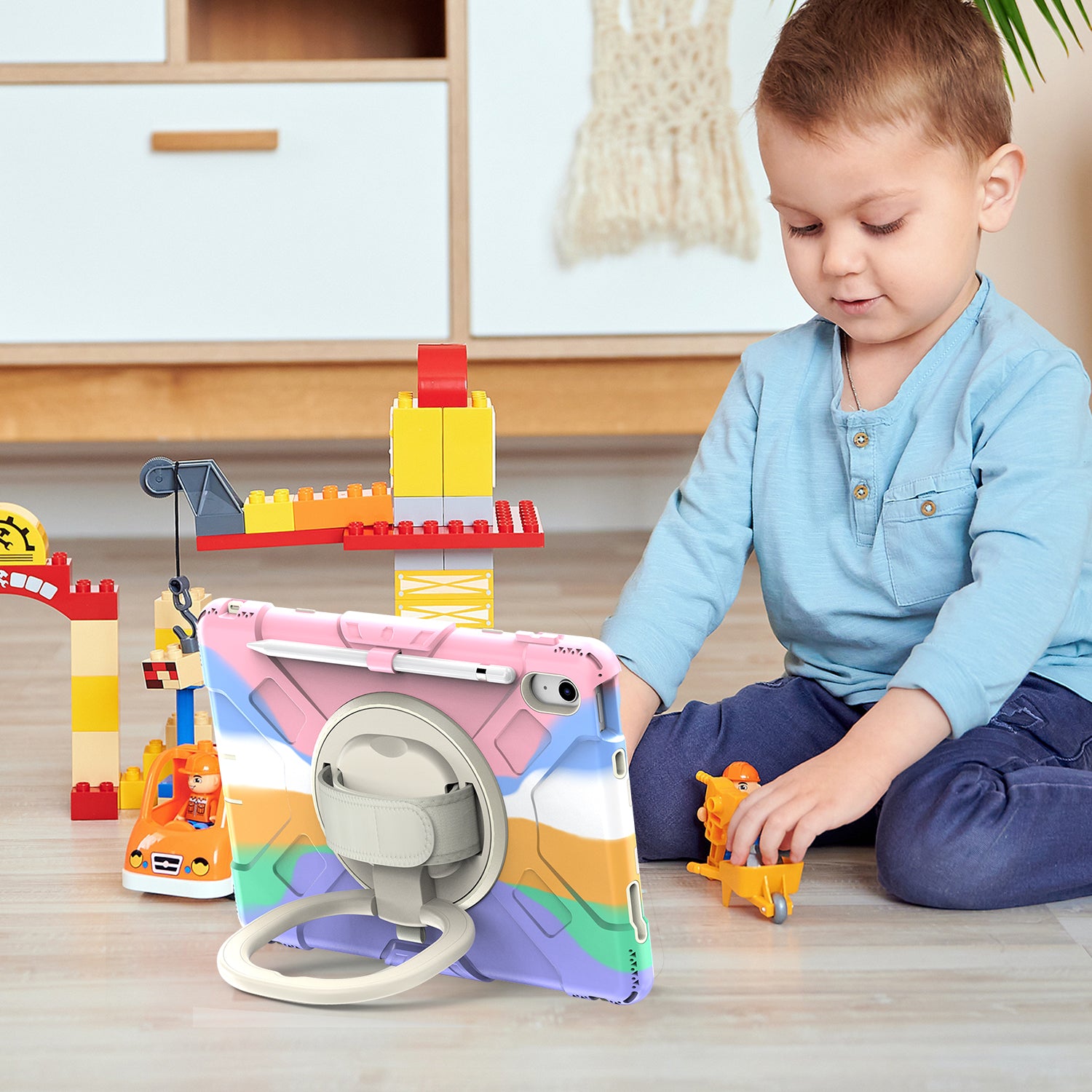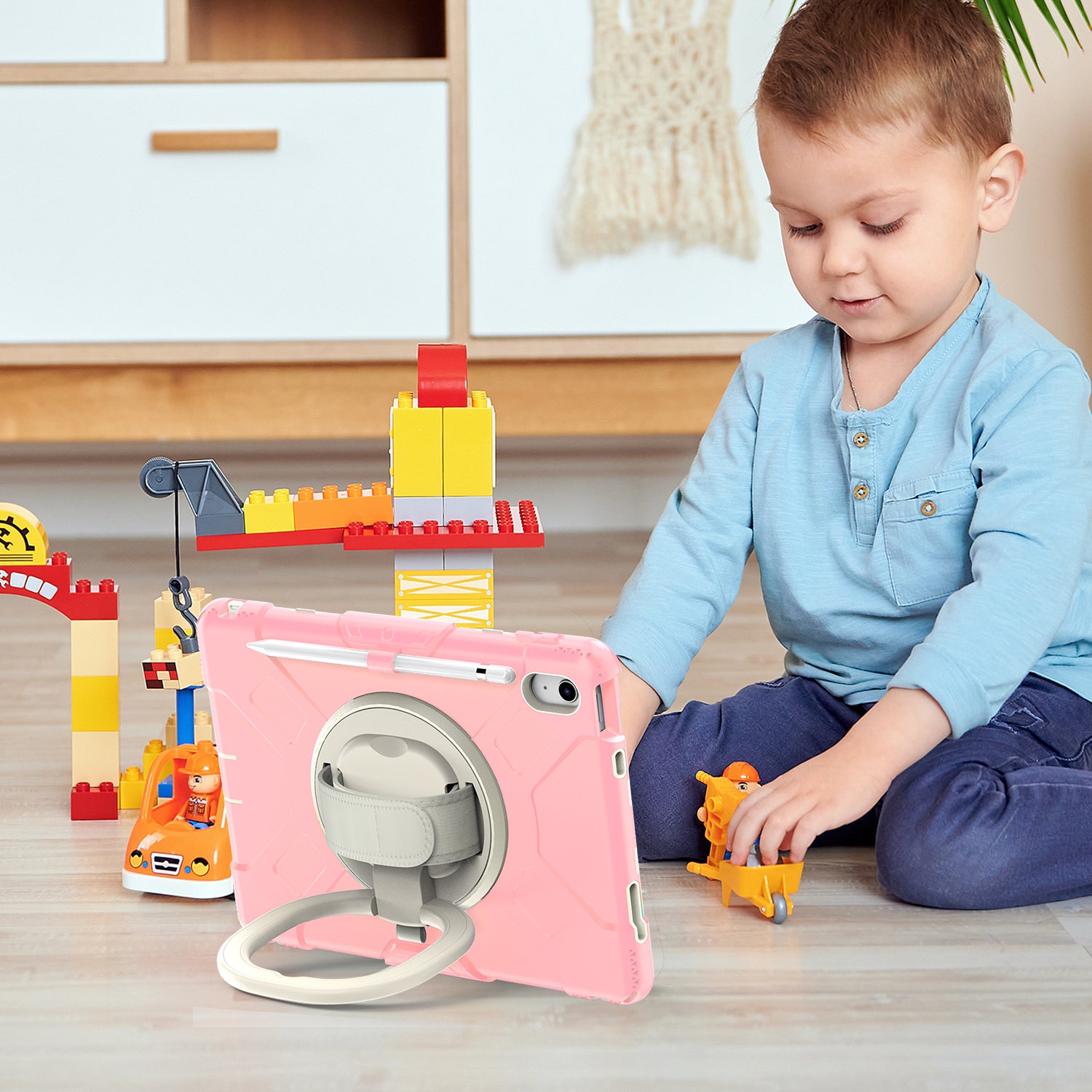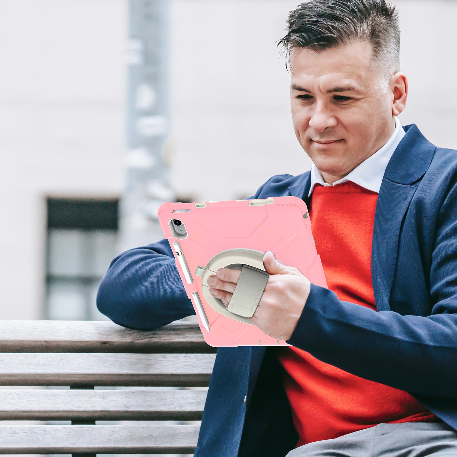 For iPad 10.9 (2022) Hand Strap Kickstand Tablet Case PC+Silicone Dual Layer Protective Cover with Shoulder Strap