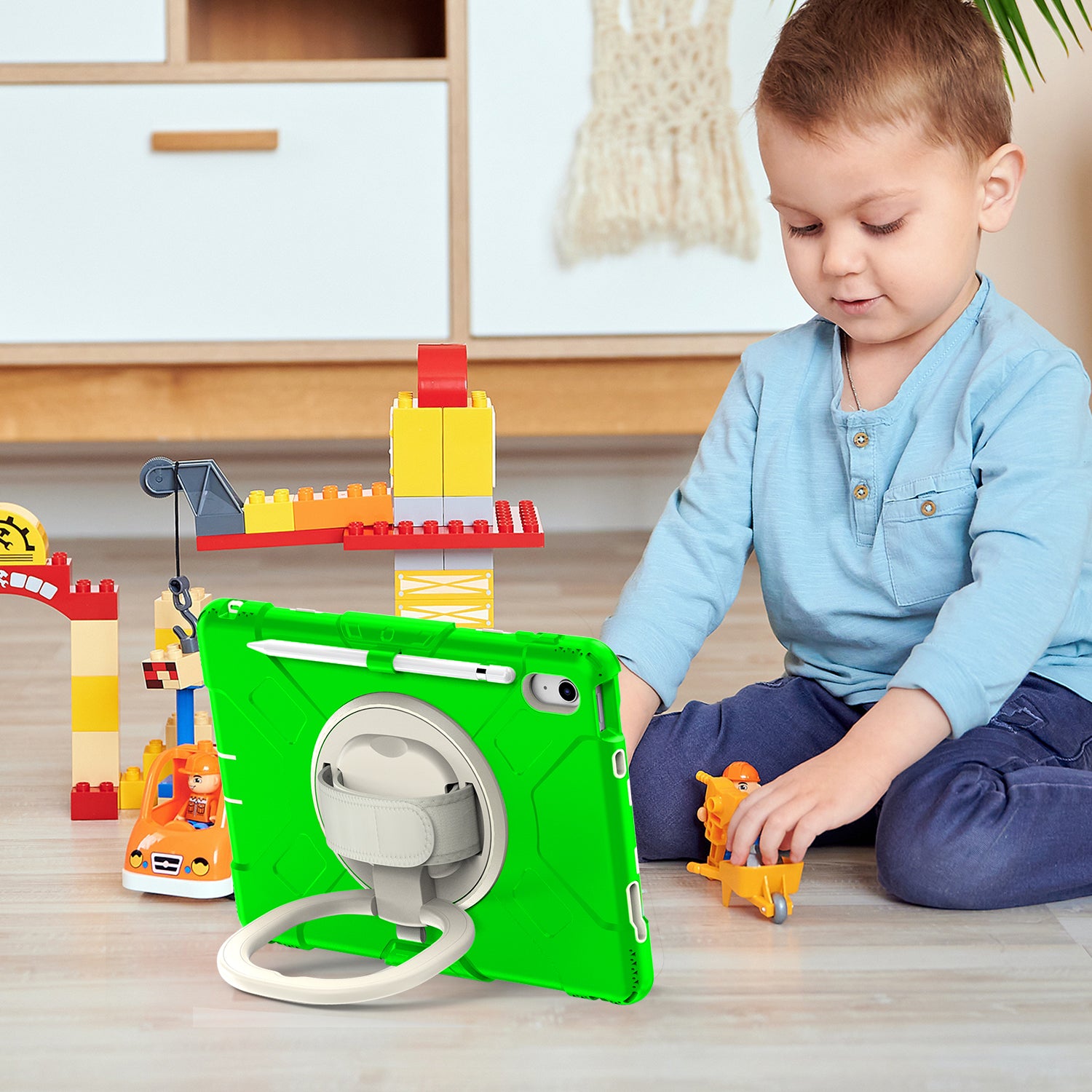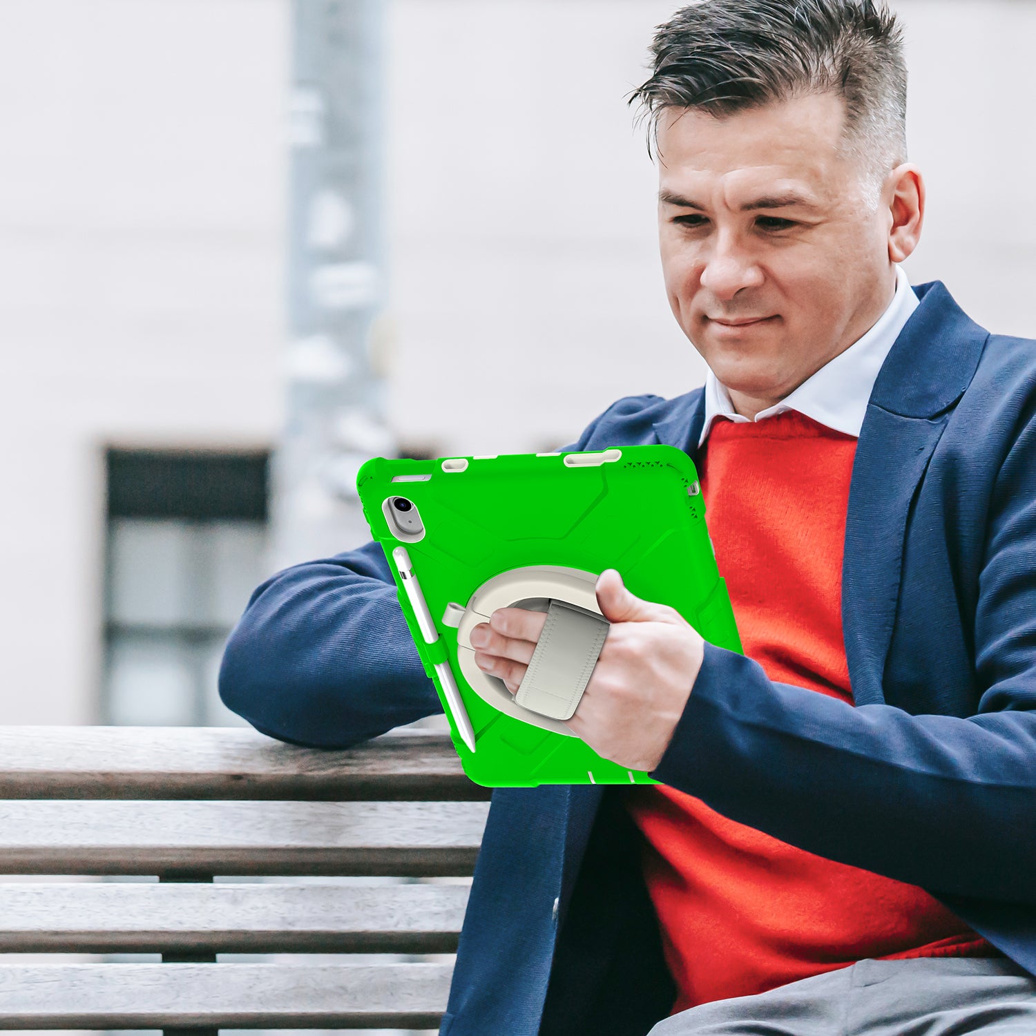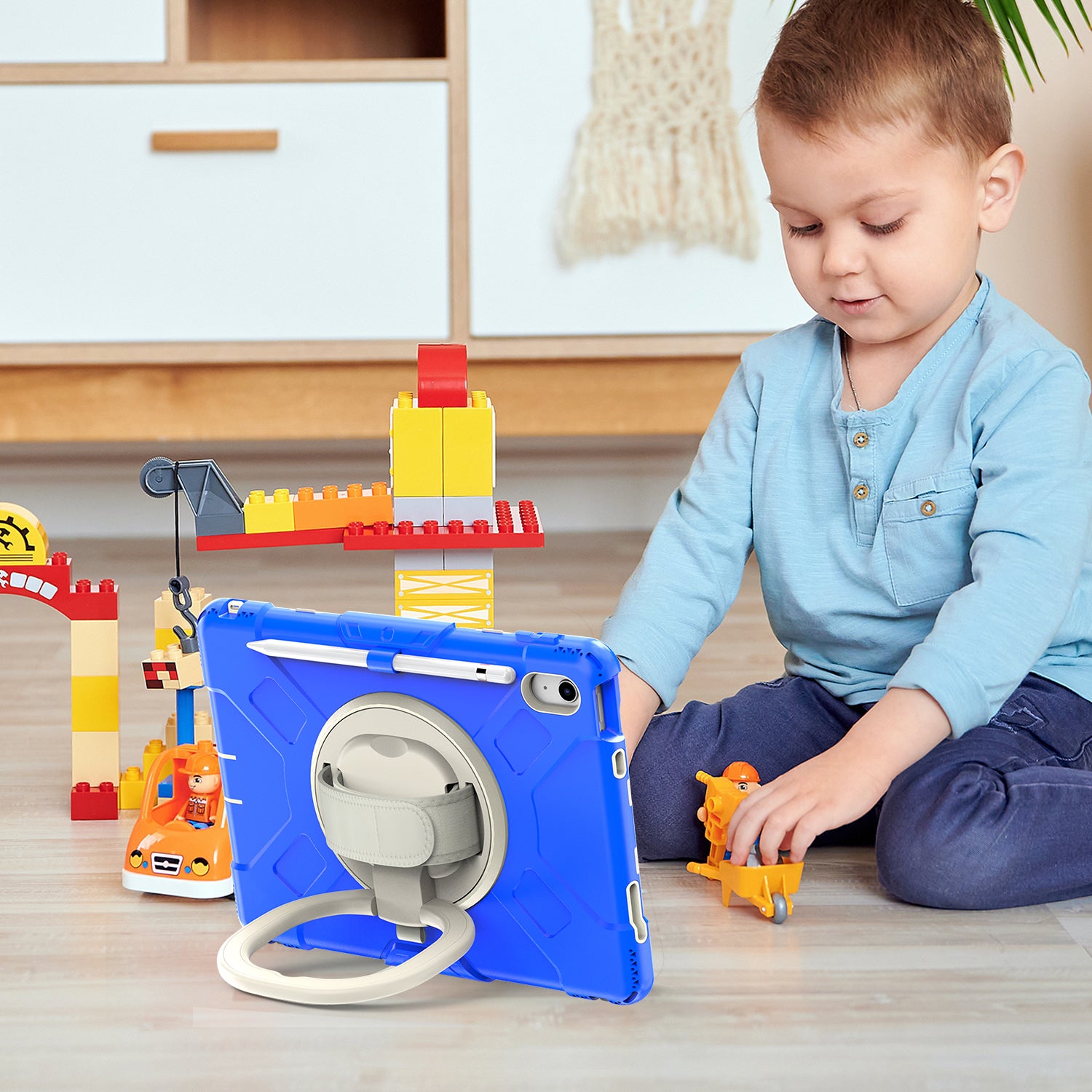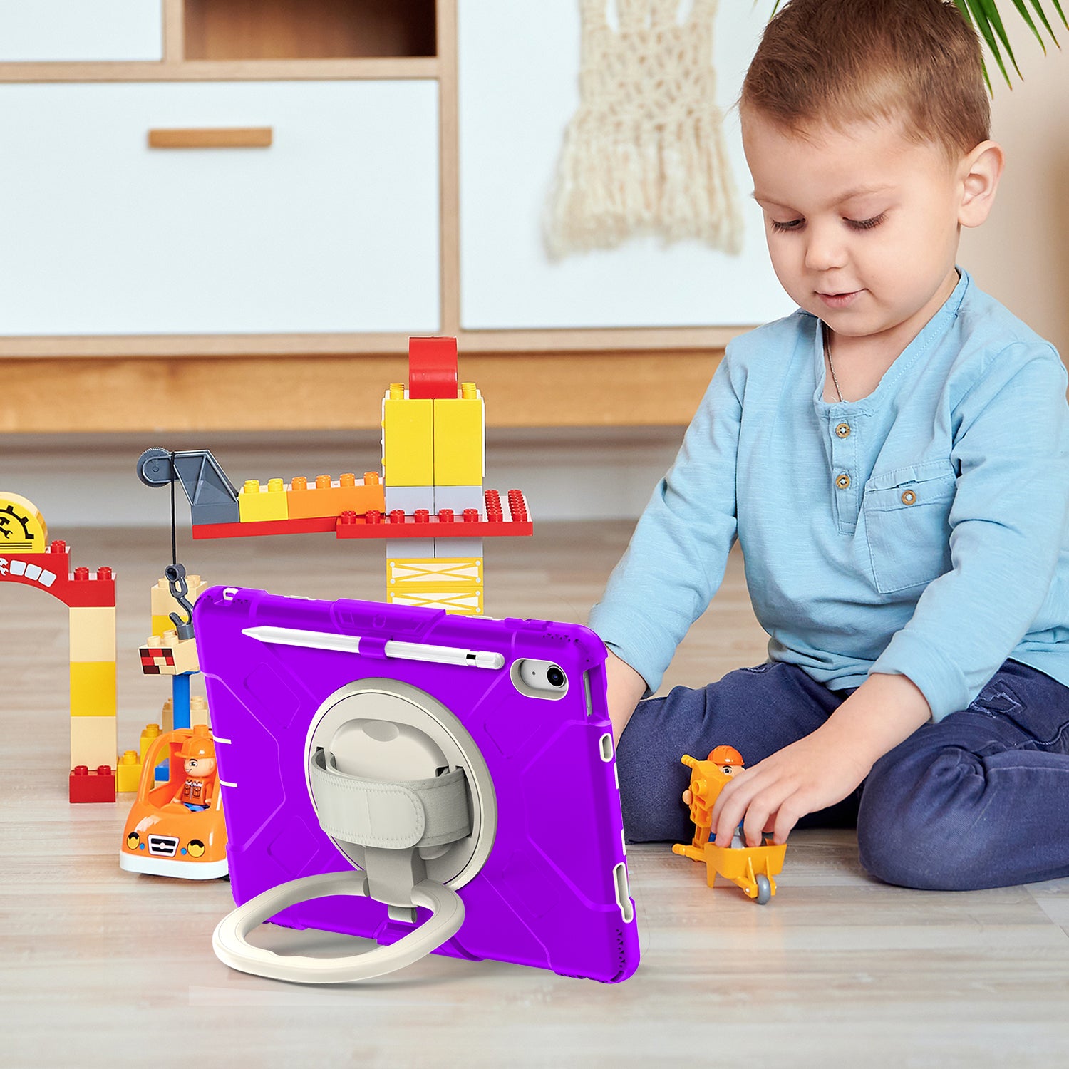 For iPad 10.9 (2022) Hand Strap Kickstand Tablet Case PC+Silicone Dual Layer Protective Cover with Shoulder Strap