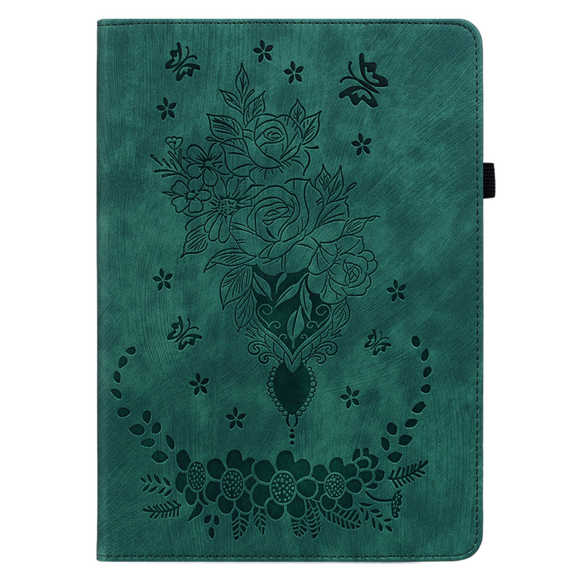 For iPad 10.9 (2022) PU Leather Stand Case Butterfly Rose Imprinted Card Holder Tablet Cover
