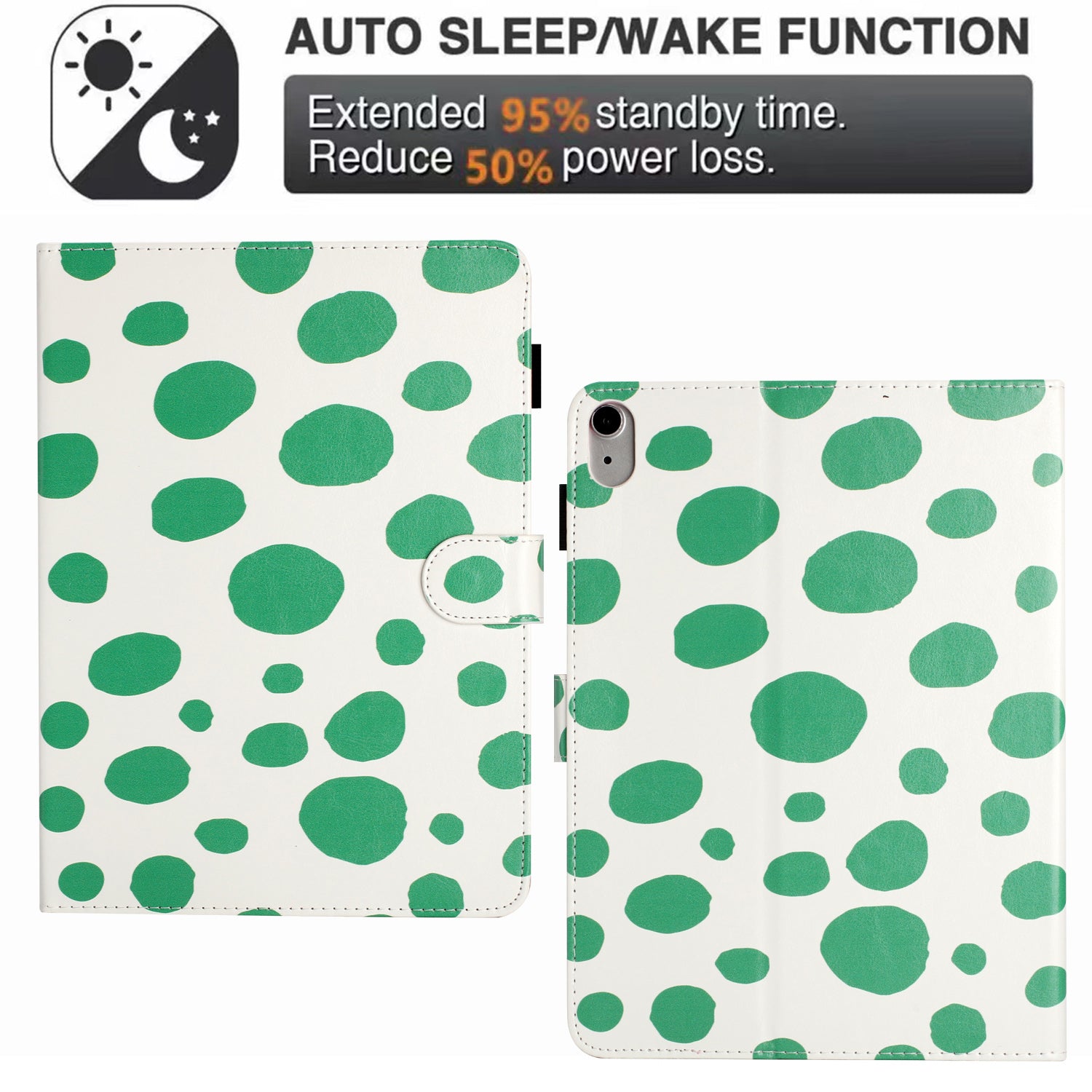For iPad 10.9 (2022) PU Leather Tablet Cover Dots Pattern Stand Smart Cover with Card Holder