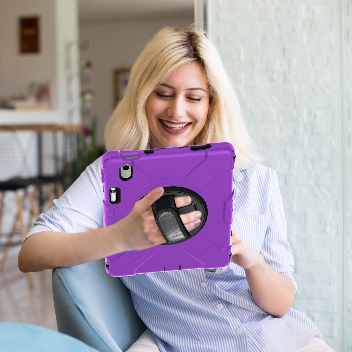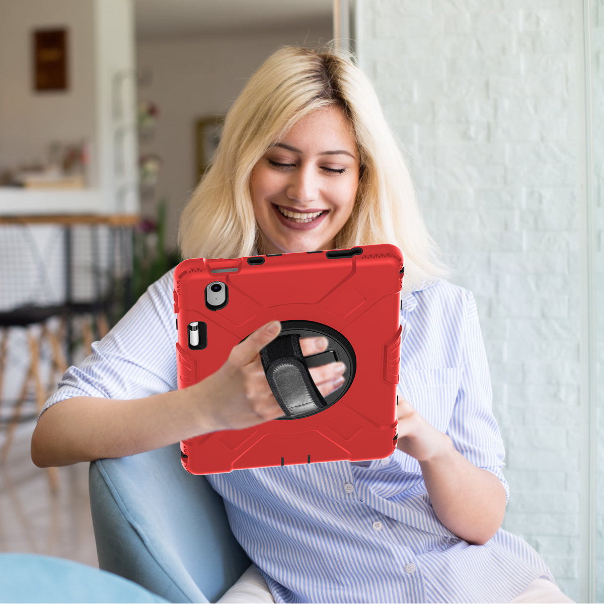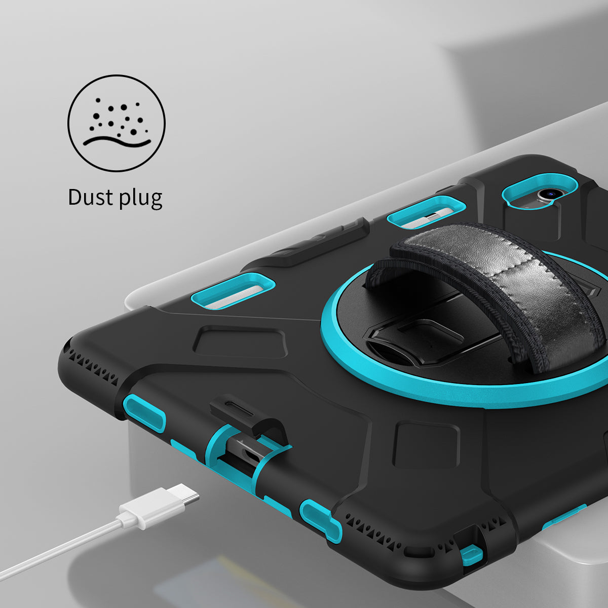 - There is a hand band strap on the back of the tablet case, which allows you to hold your device safely with one hand