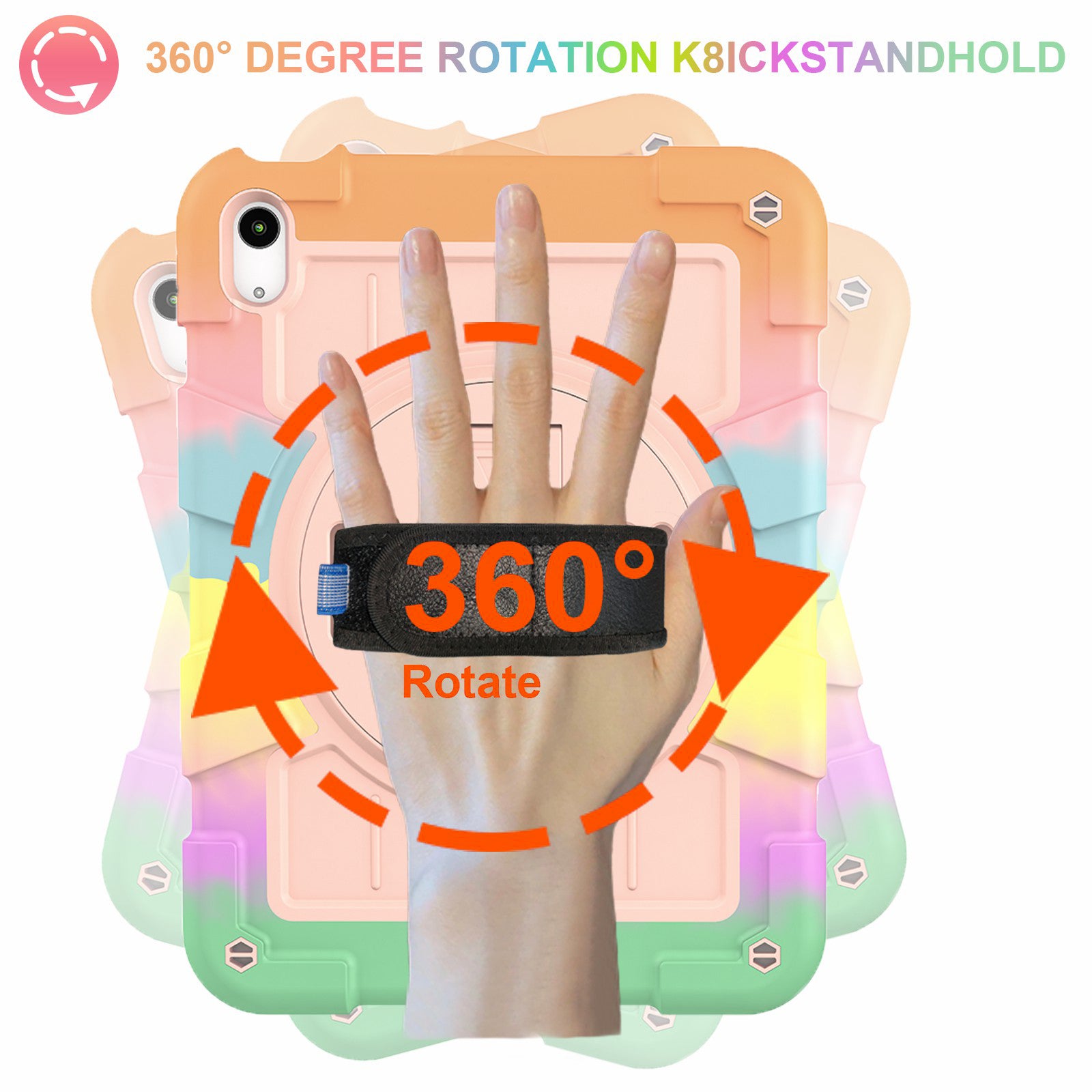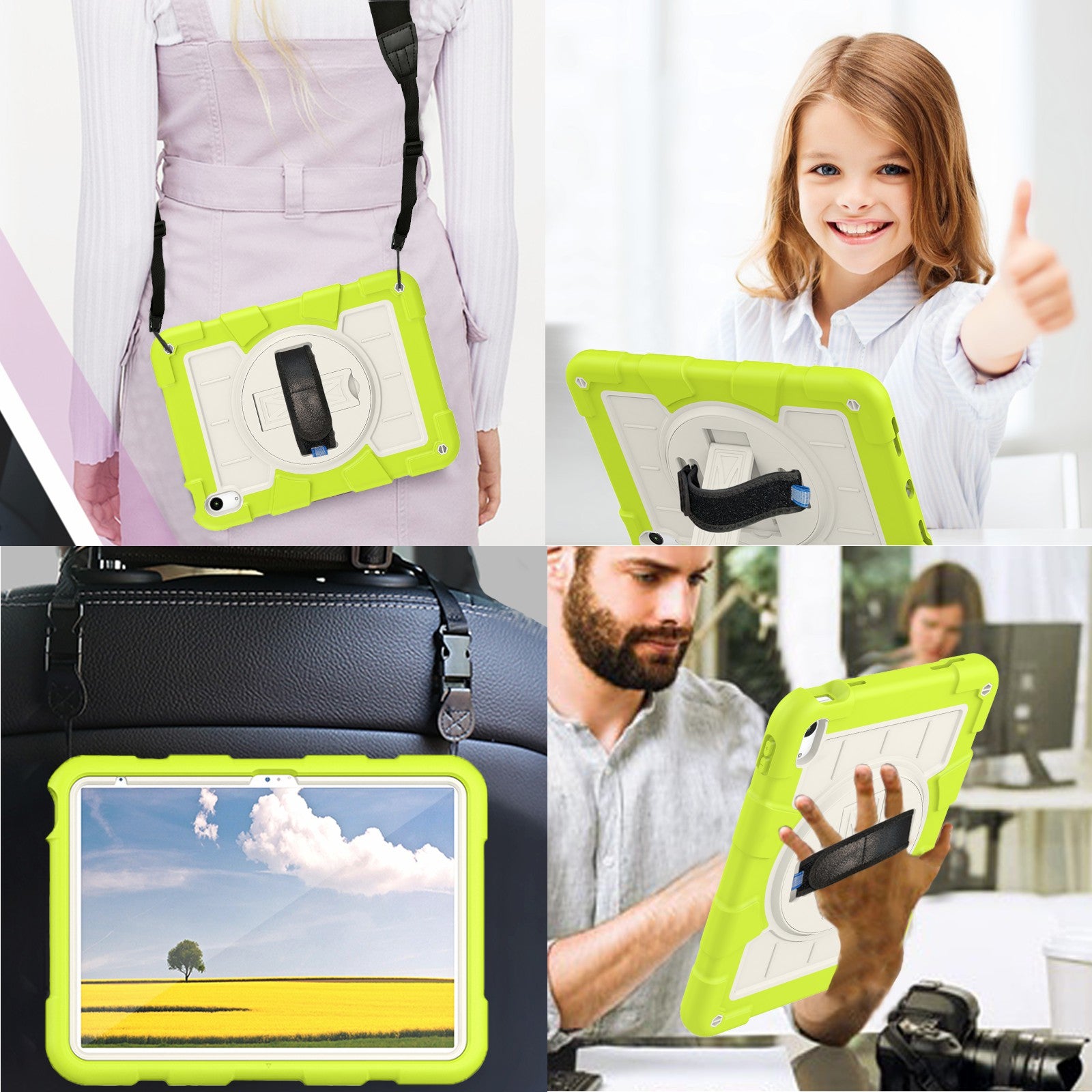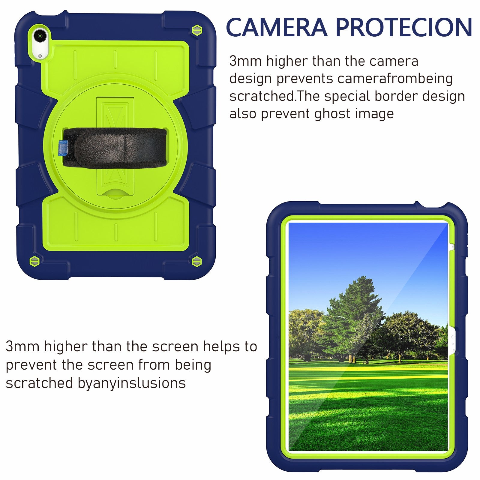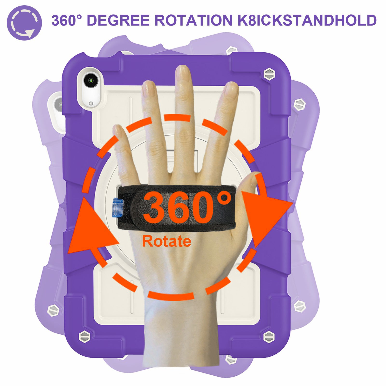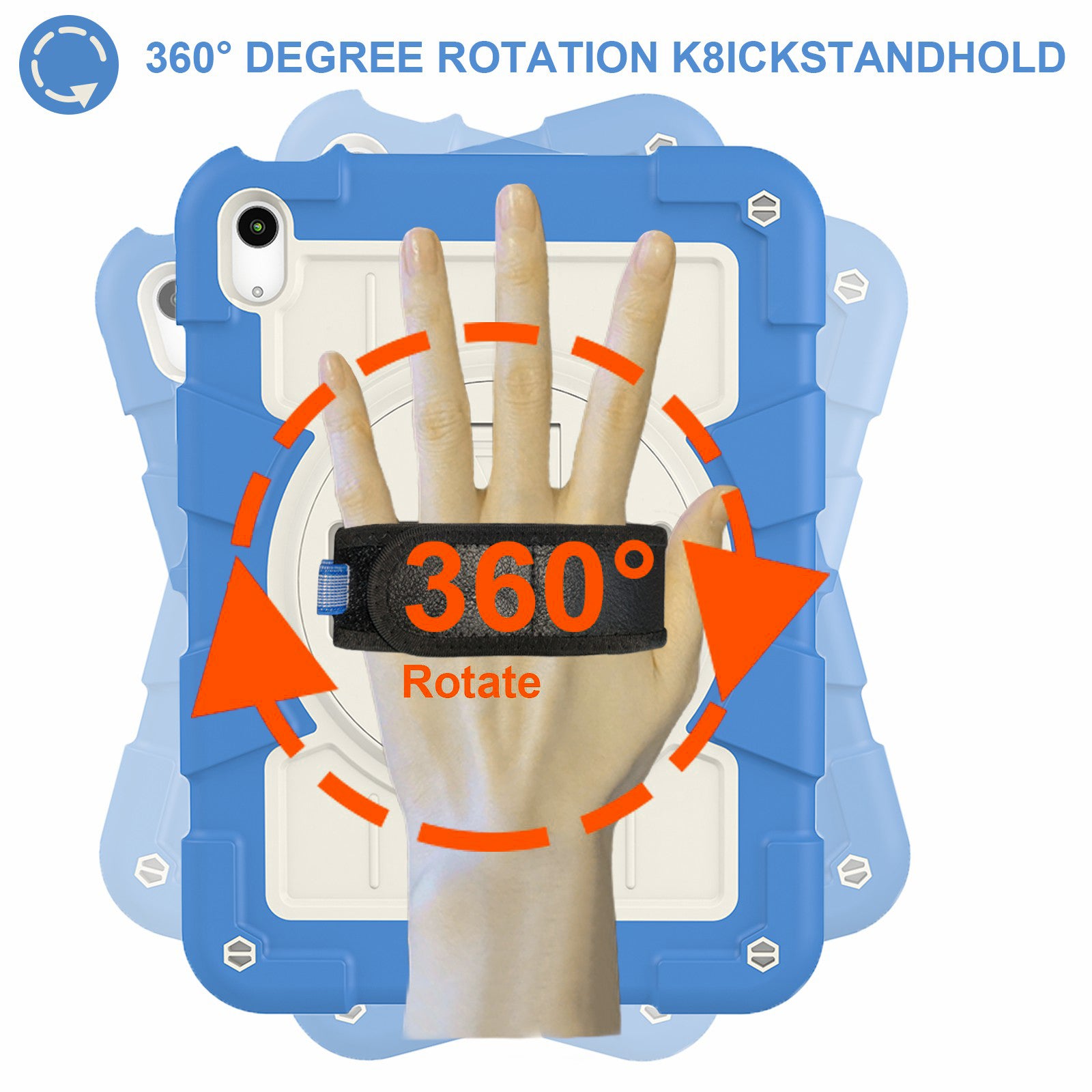 For iPad 10.9 (2022) TPU+PC Tablet Case Rotating Hand Strap Kickstand Cover with Shoulder Strap
