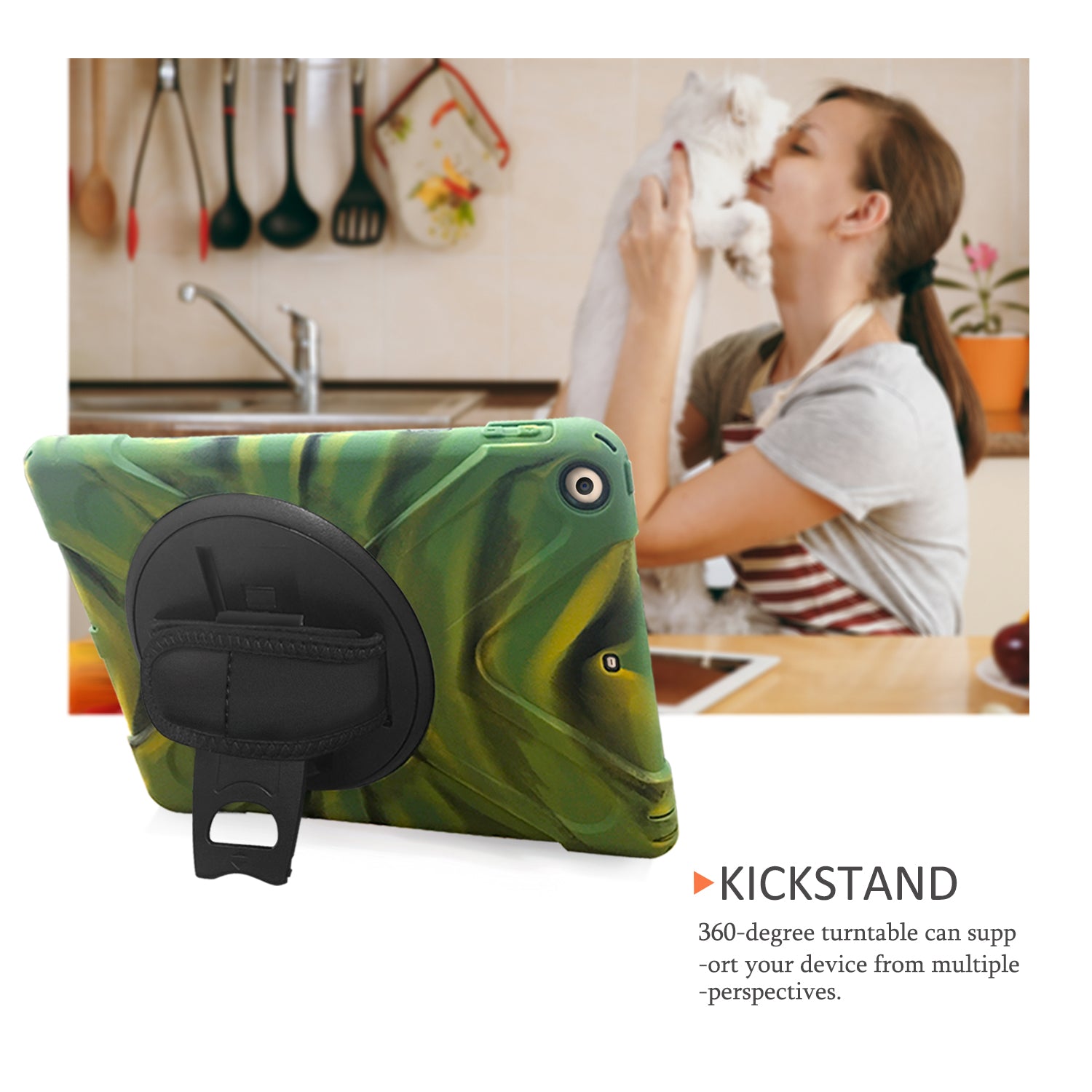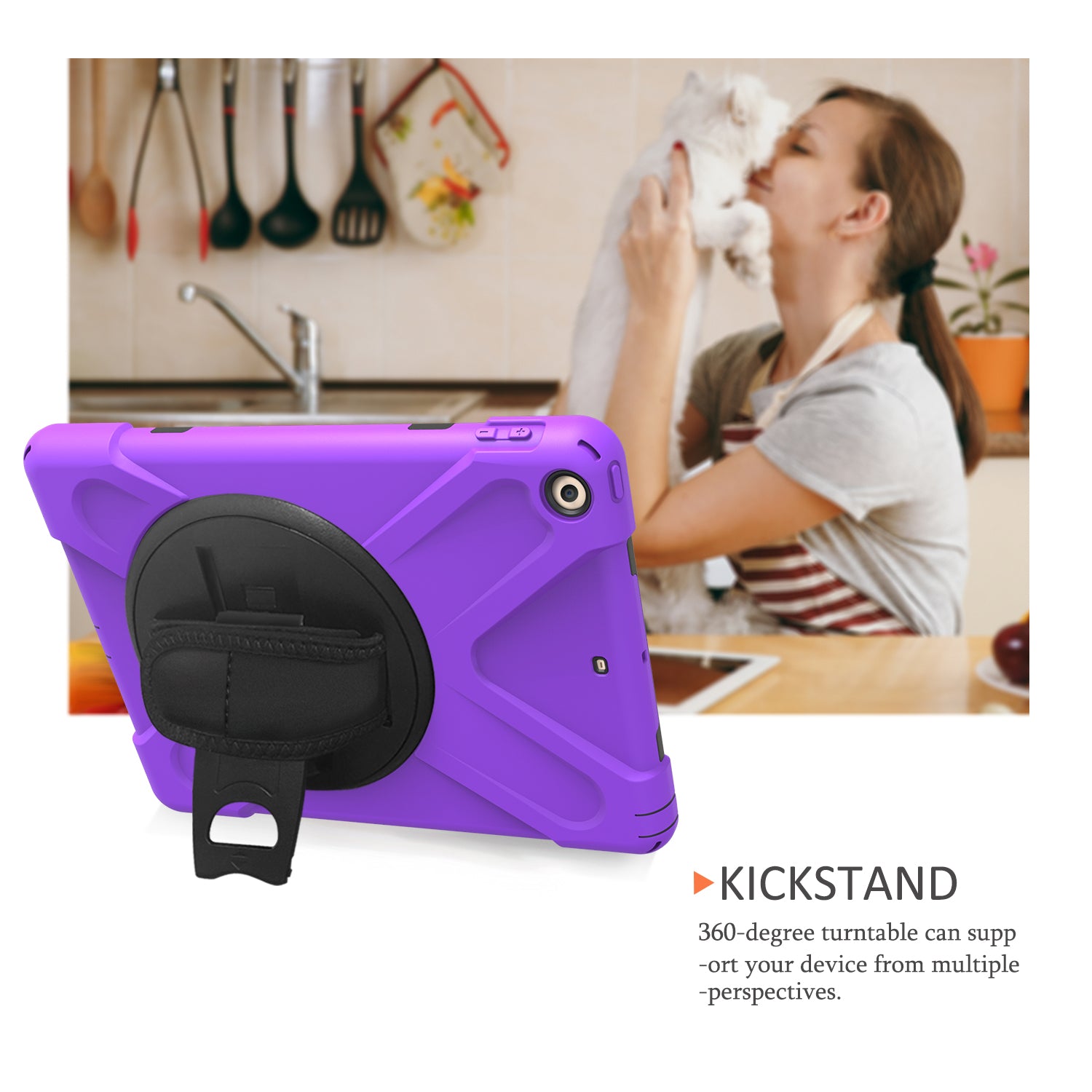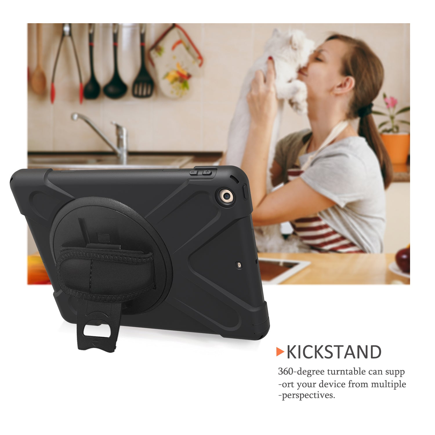 - Integrated 360 degree rotary kickstand frees your hands for landscape or portrait viewing