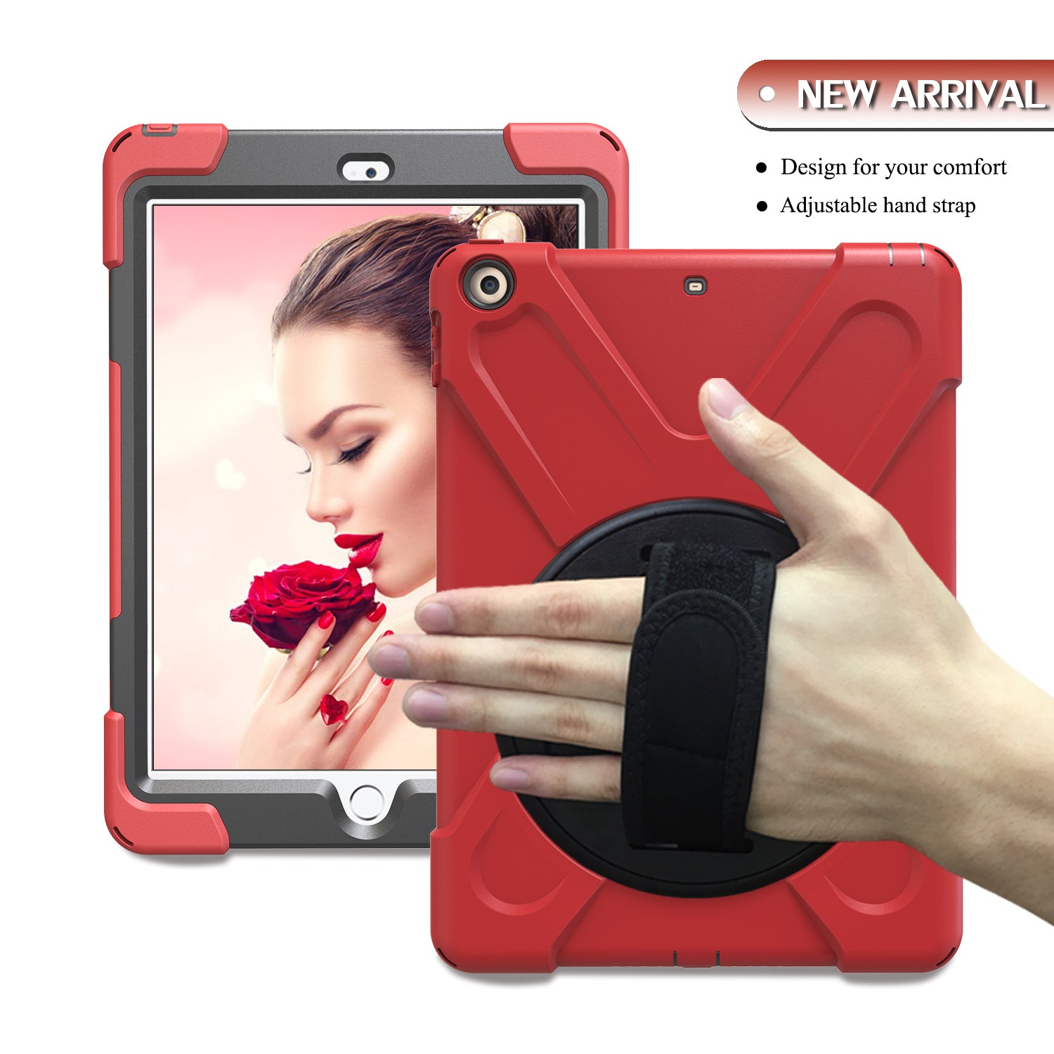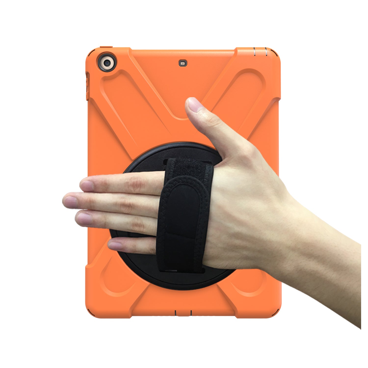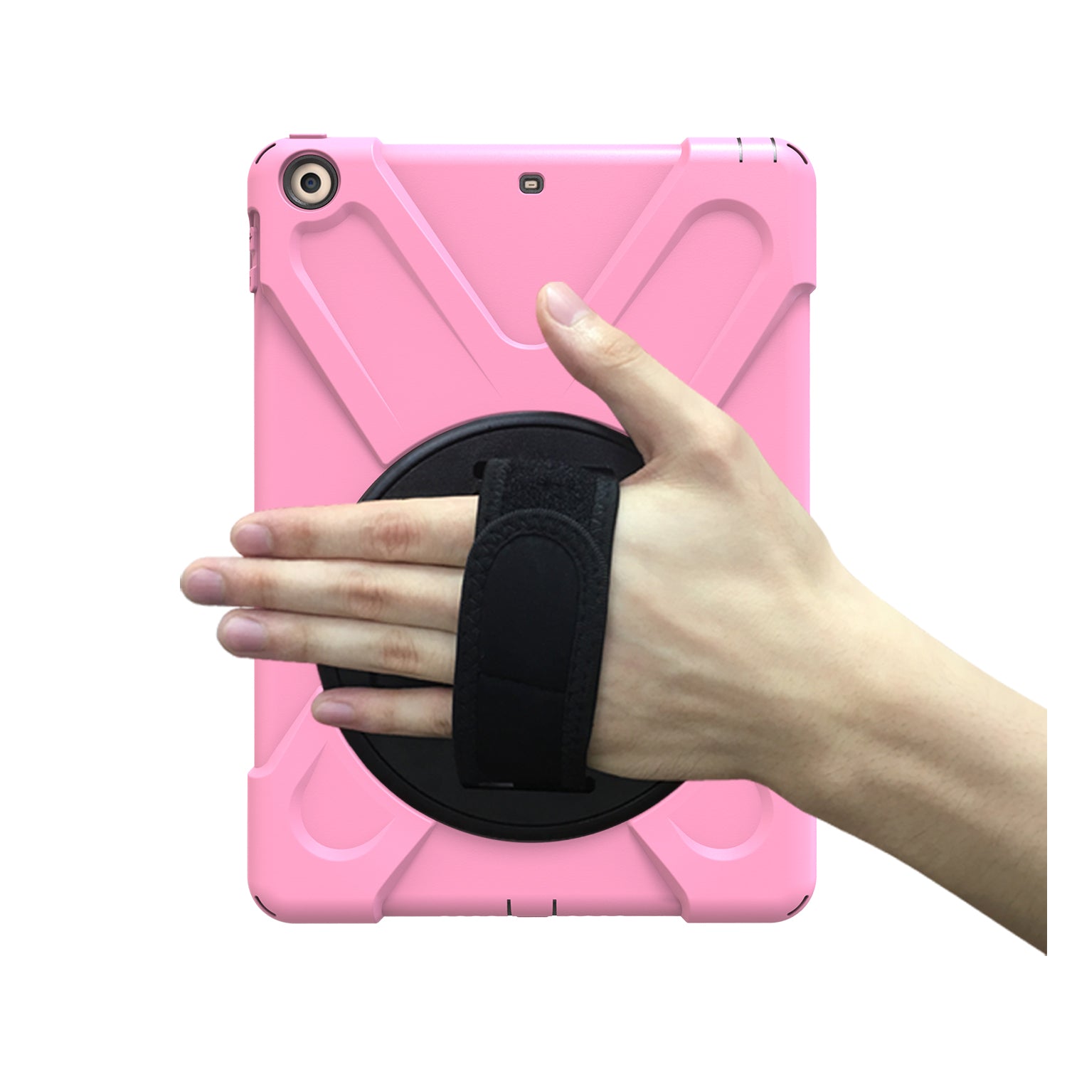 For iPad 9.7 (2018)/9.7 (2017) X-Shape 360 Degree Swivel PC + TPU Combo Kickstand Case with Hand Holder Strap