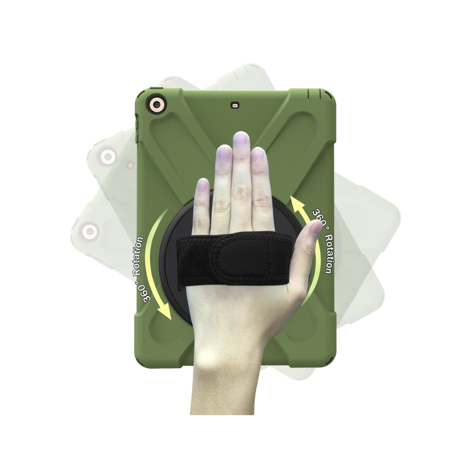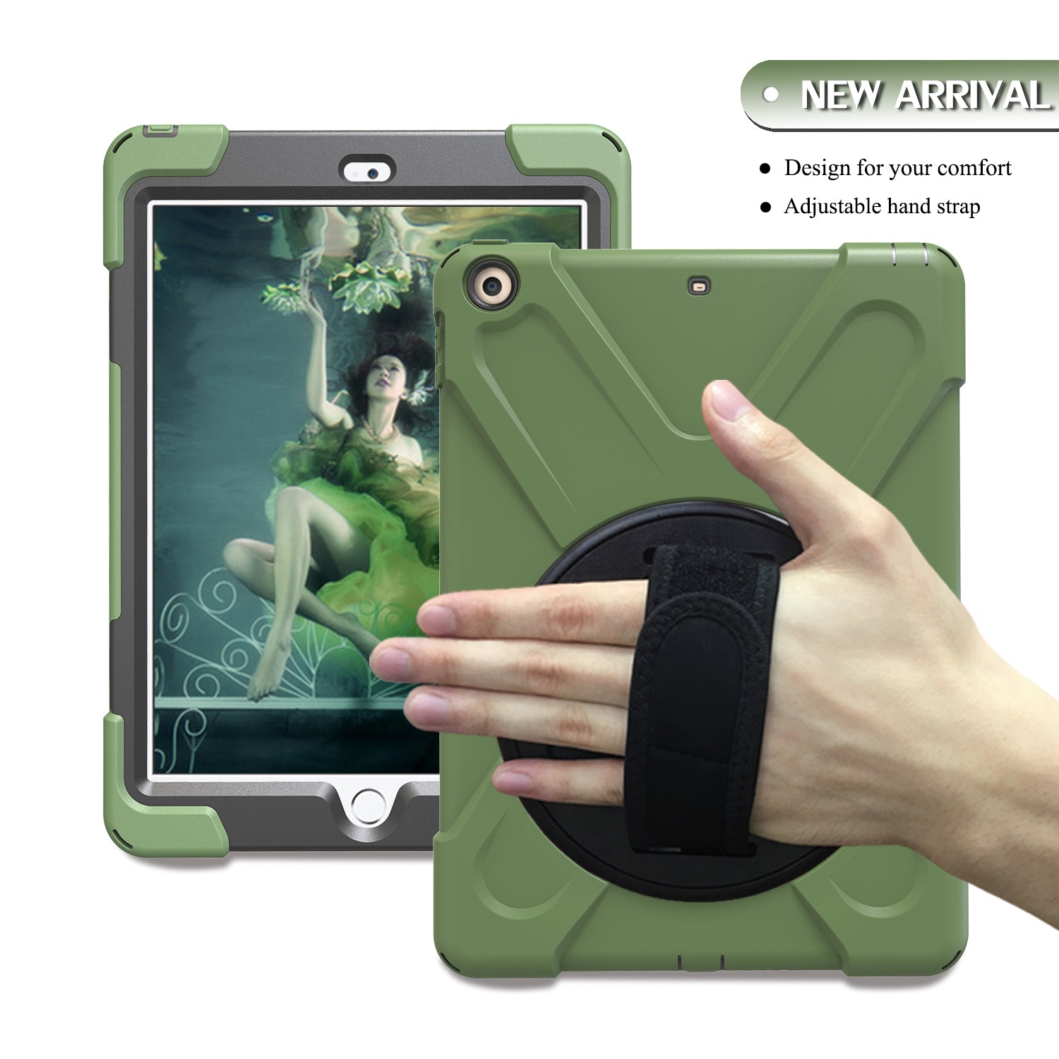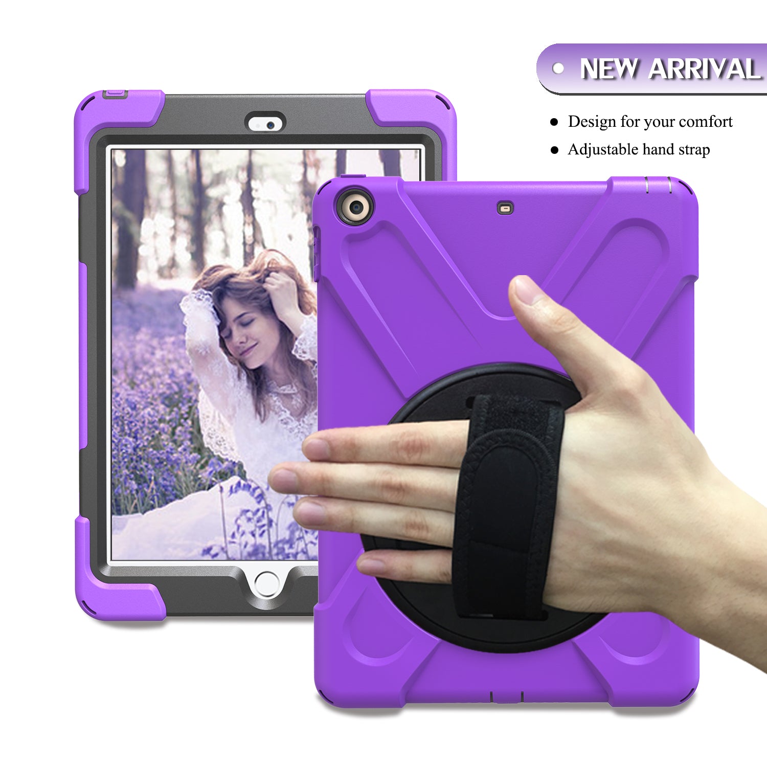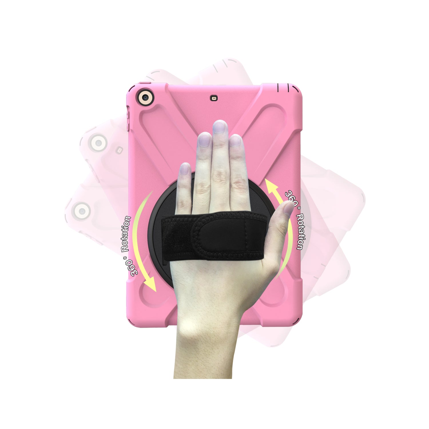 For iPad 9.7 (2018)/9.7 (2017) X-Shape 360 Degree Swivel PC + TPU Combo Kickstand Case with Hand Holder Strap