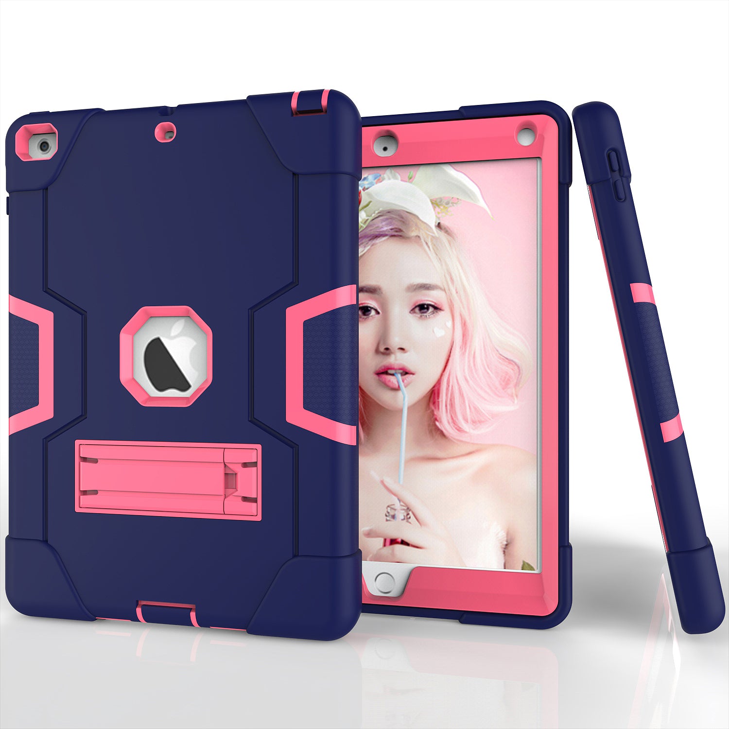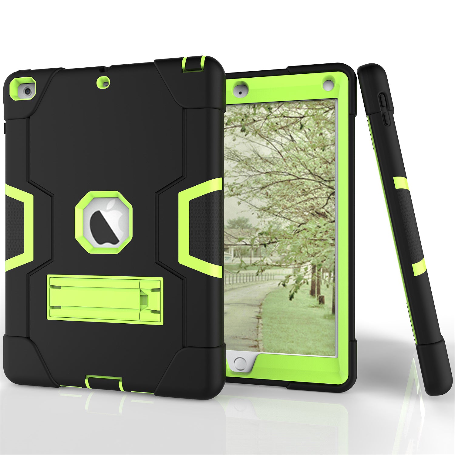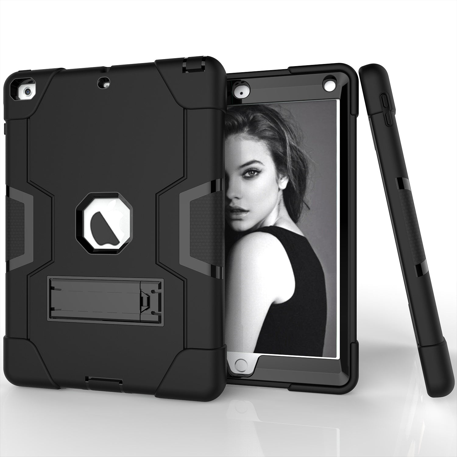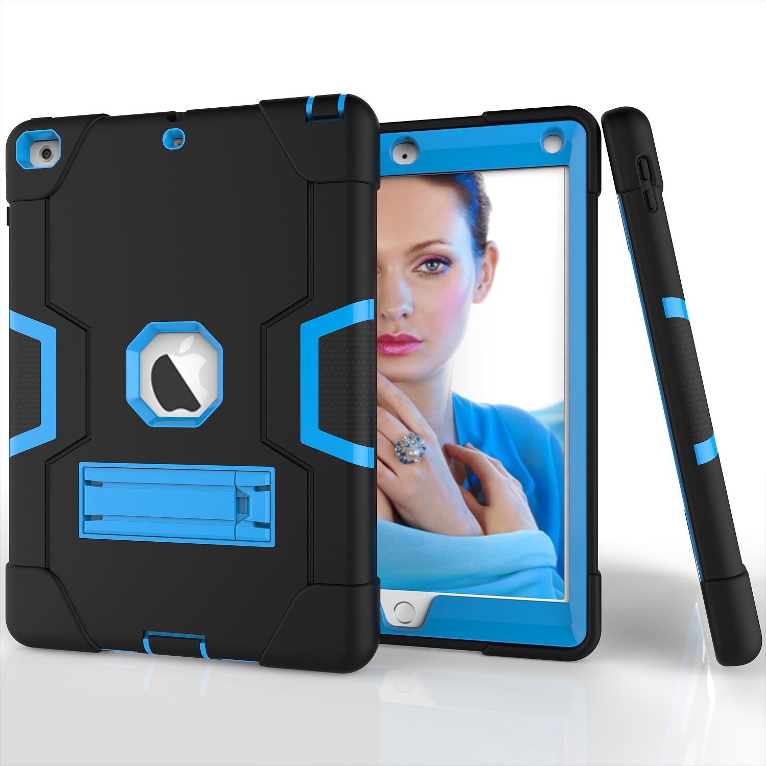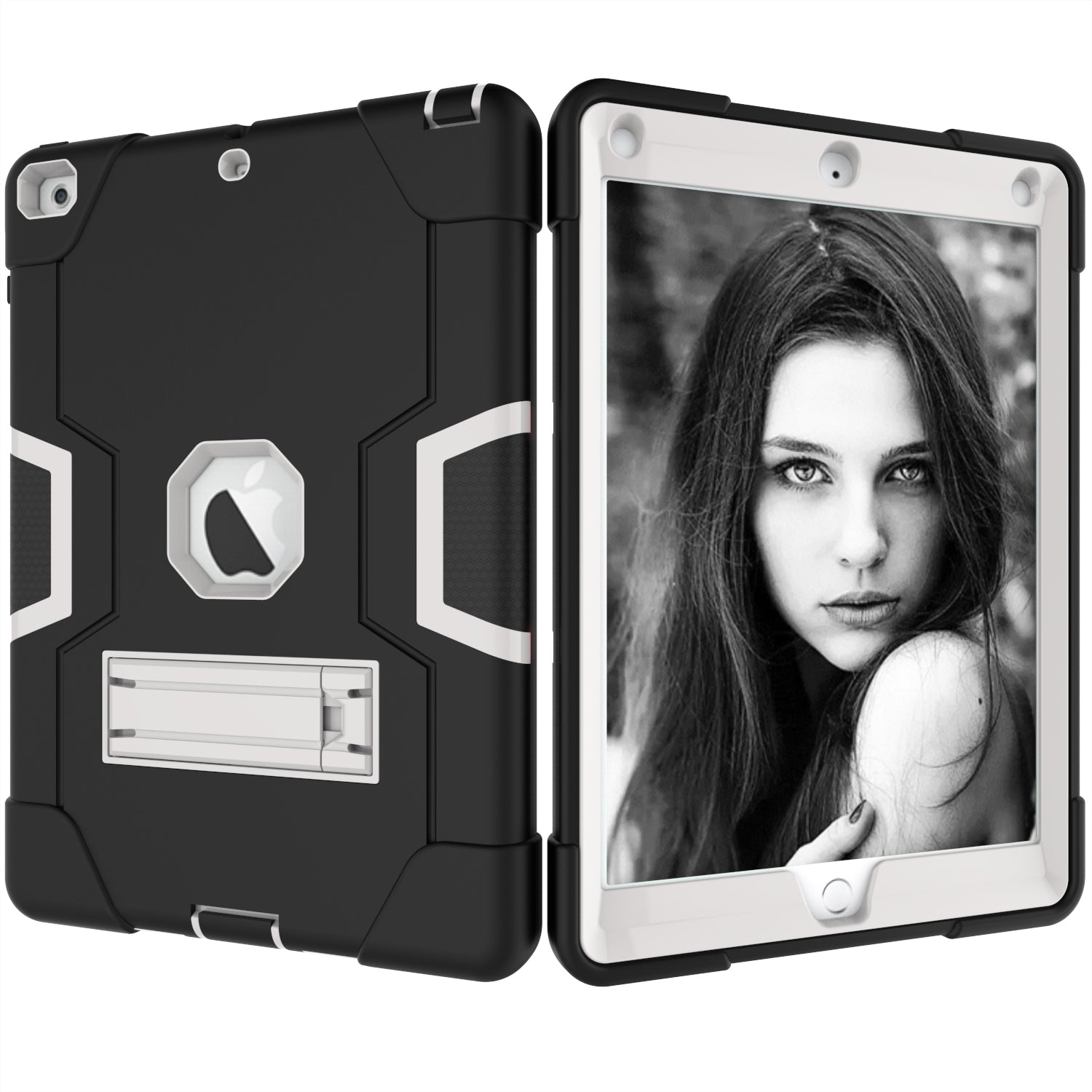For iPad 9.7-inch (2018)/iPad 9.7-inch (2017) Bi-color PC Silicone Tablet Case Kickstand Anti-drop Hybrid Cover