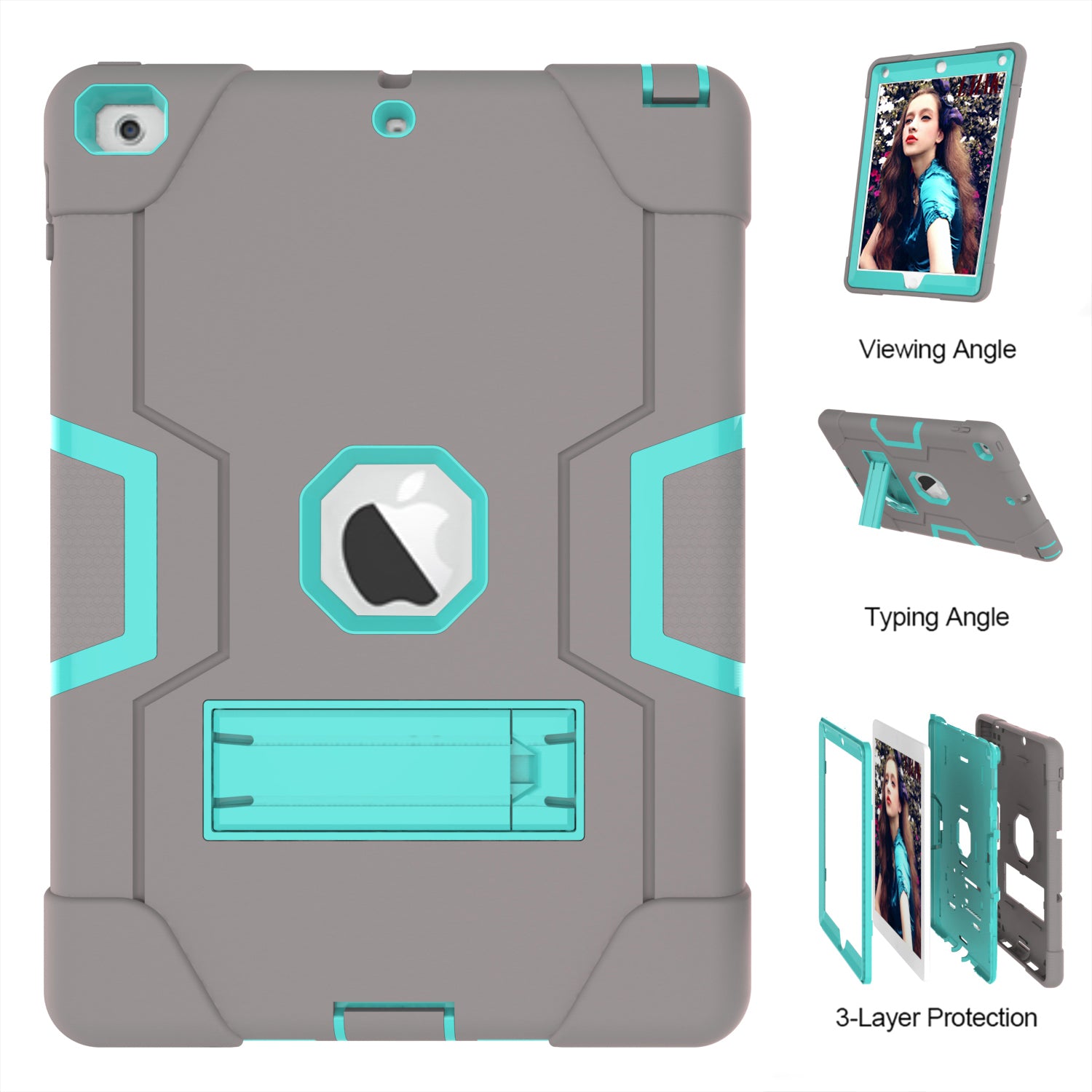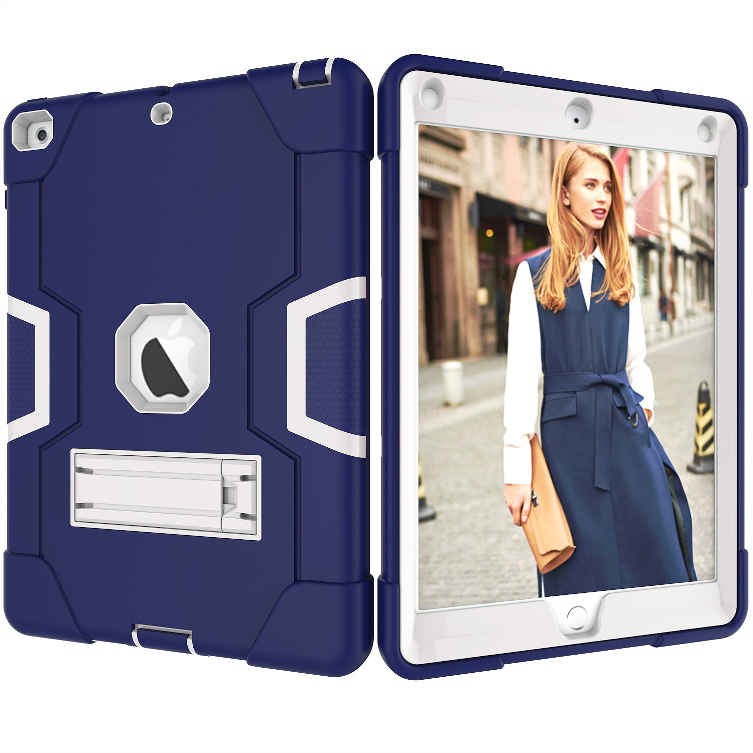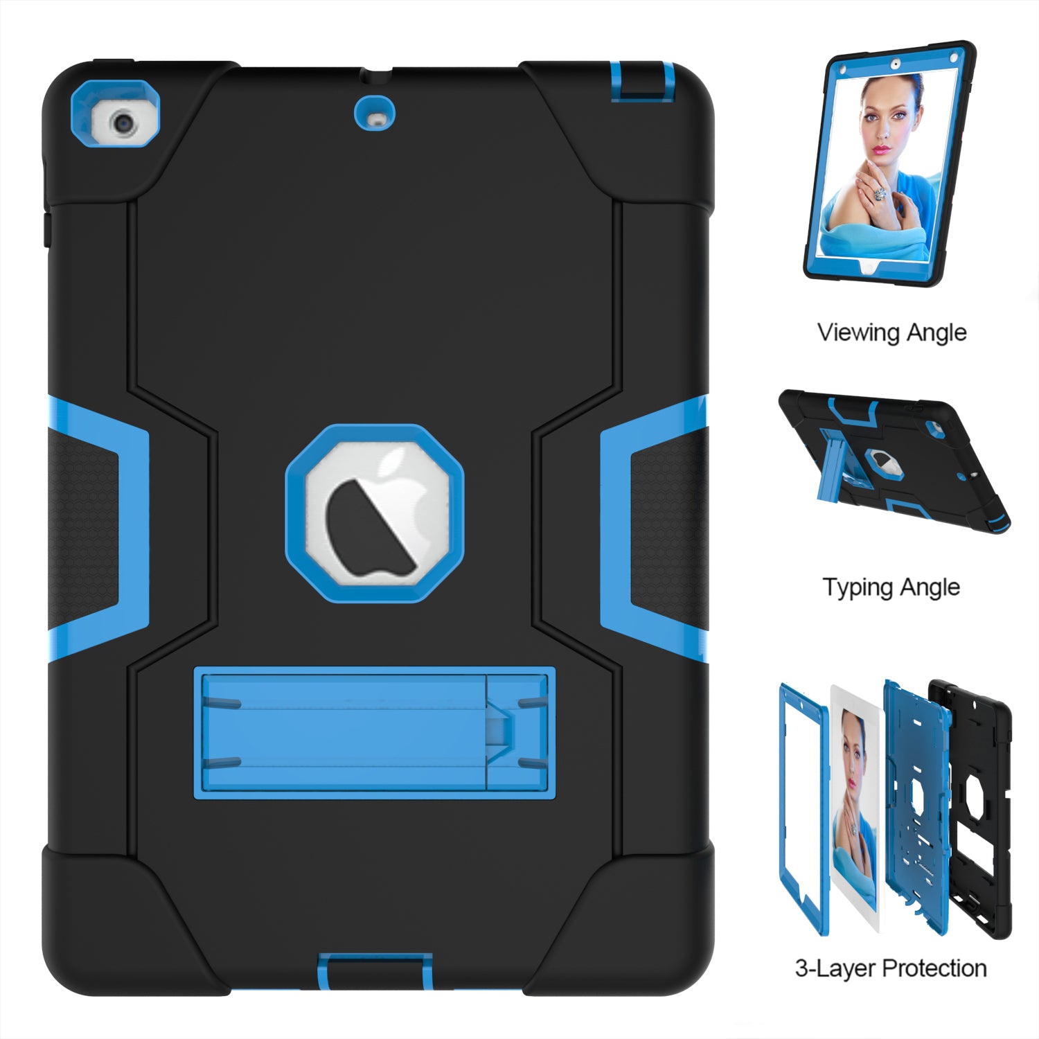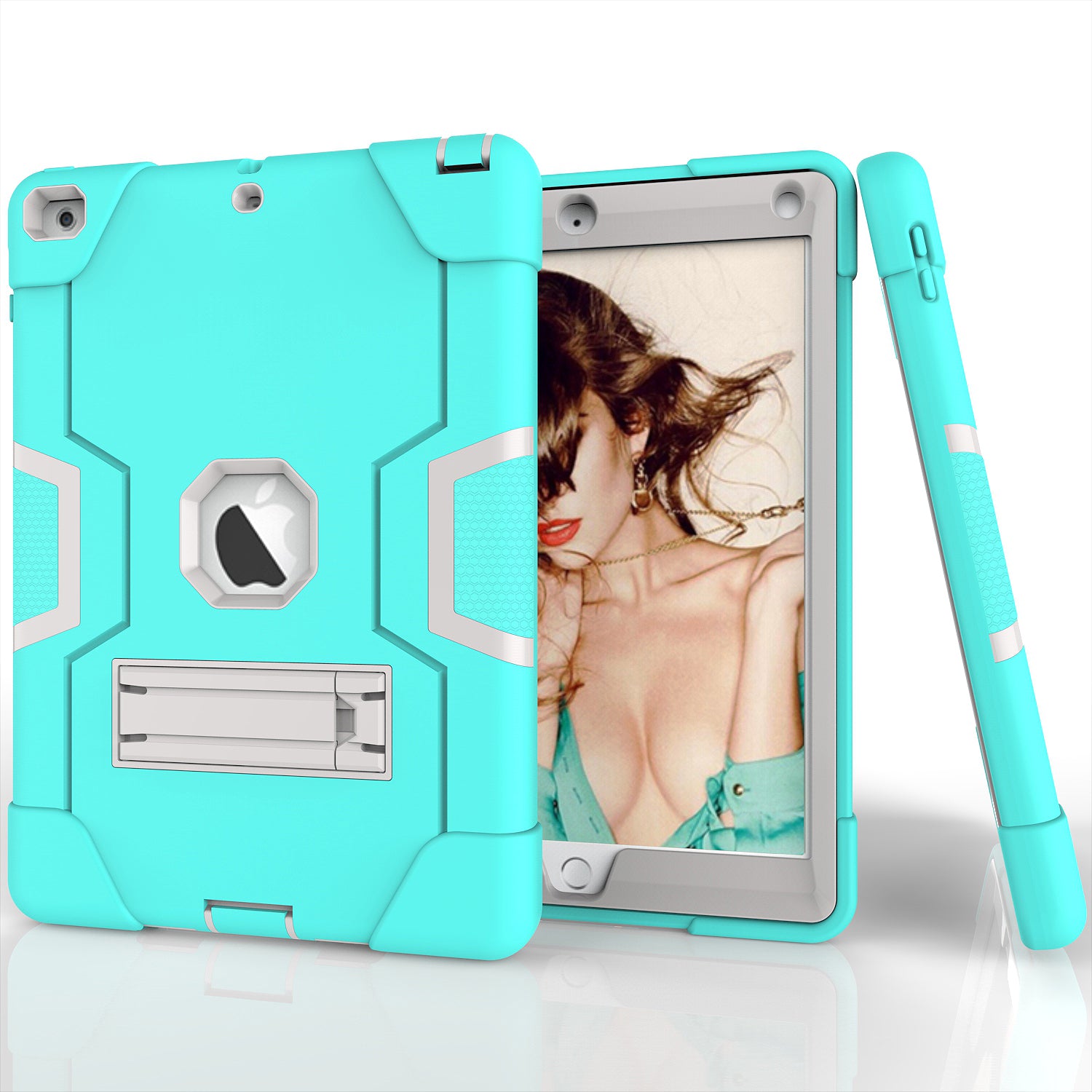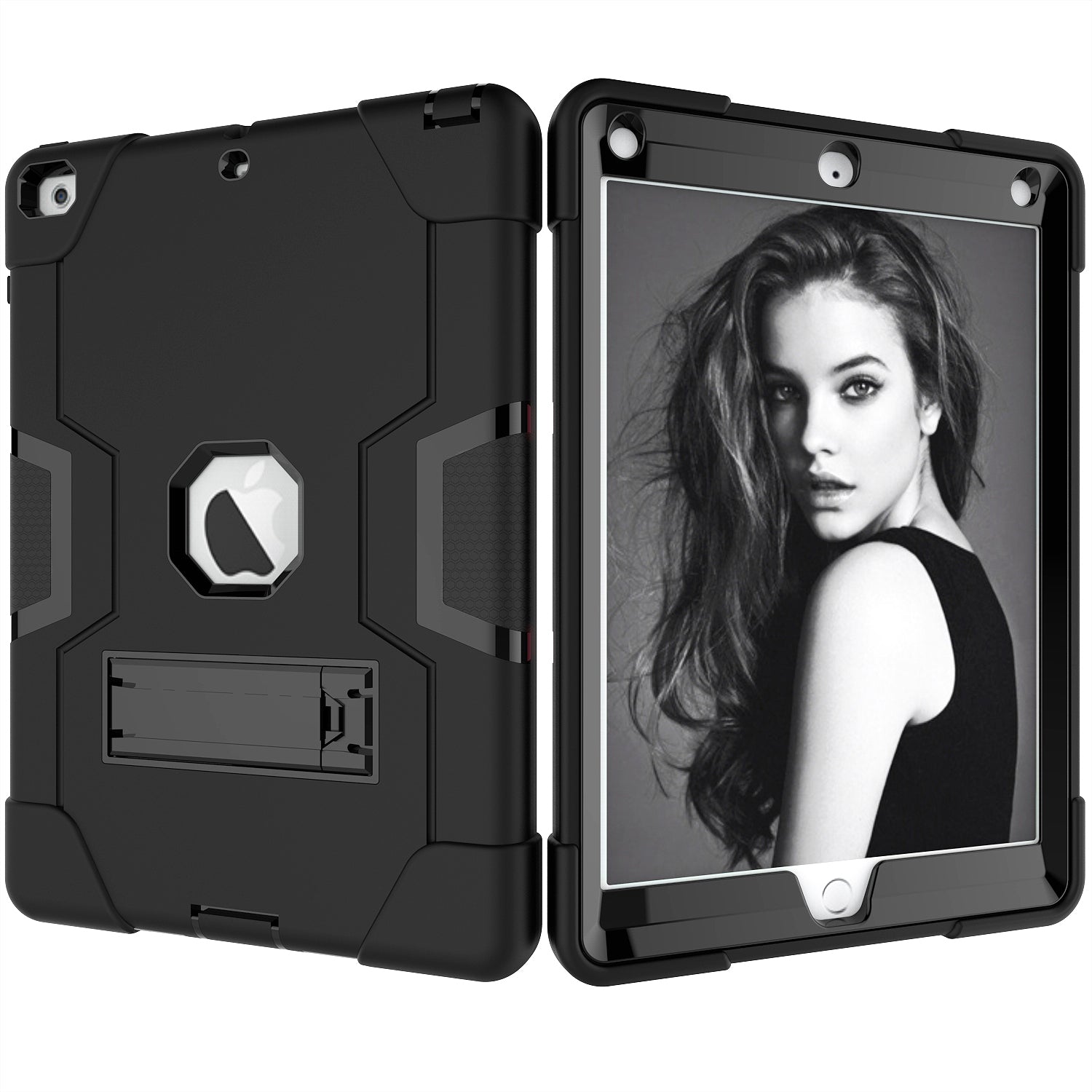 For iPad 9.7-inch (2018)/iPad 9.7-inch (2017) Bi-color PC Silicone Tablet Case Kickstand Anti-drop Hybrid Cover