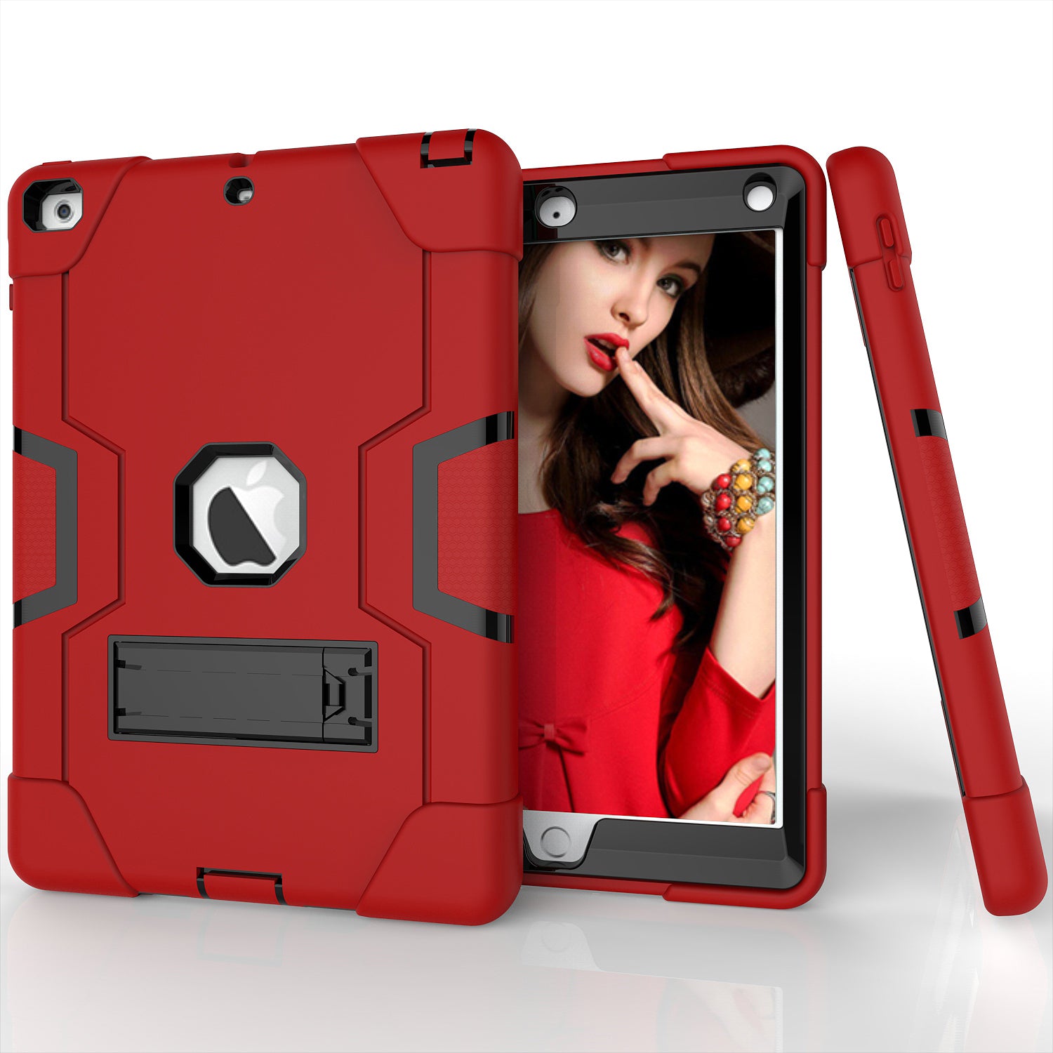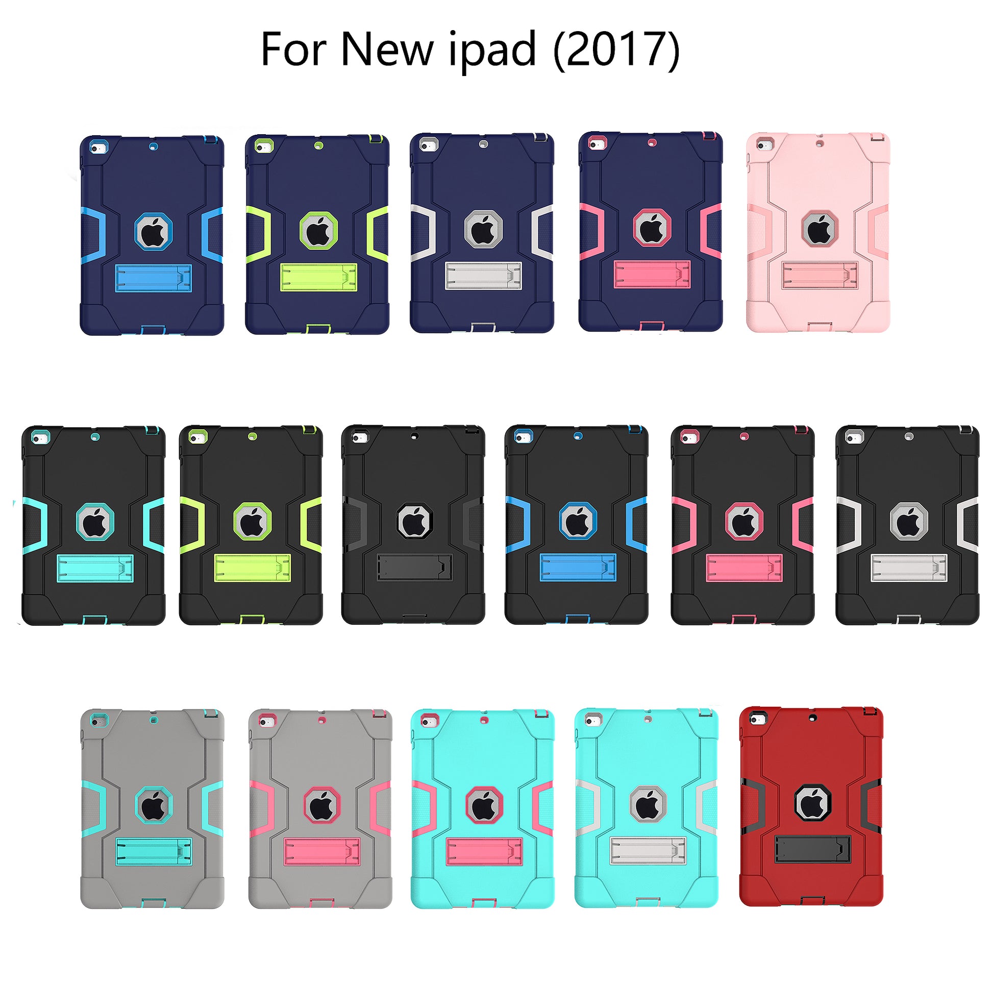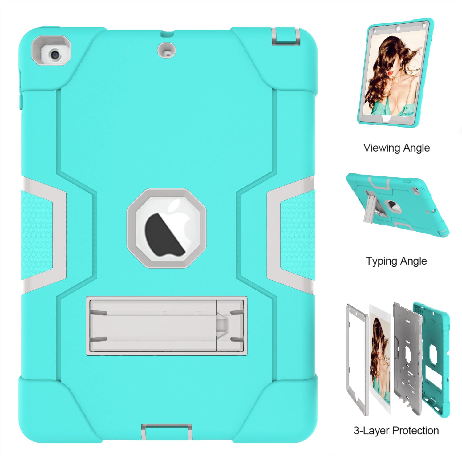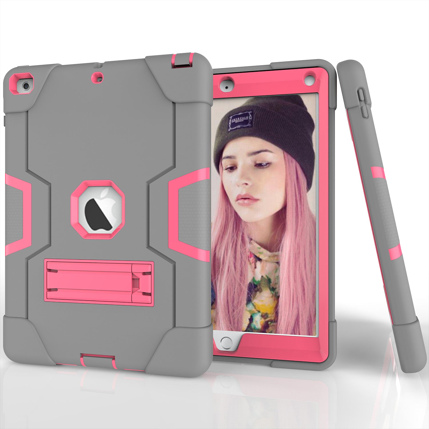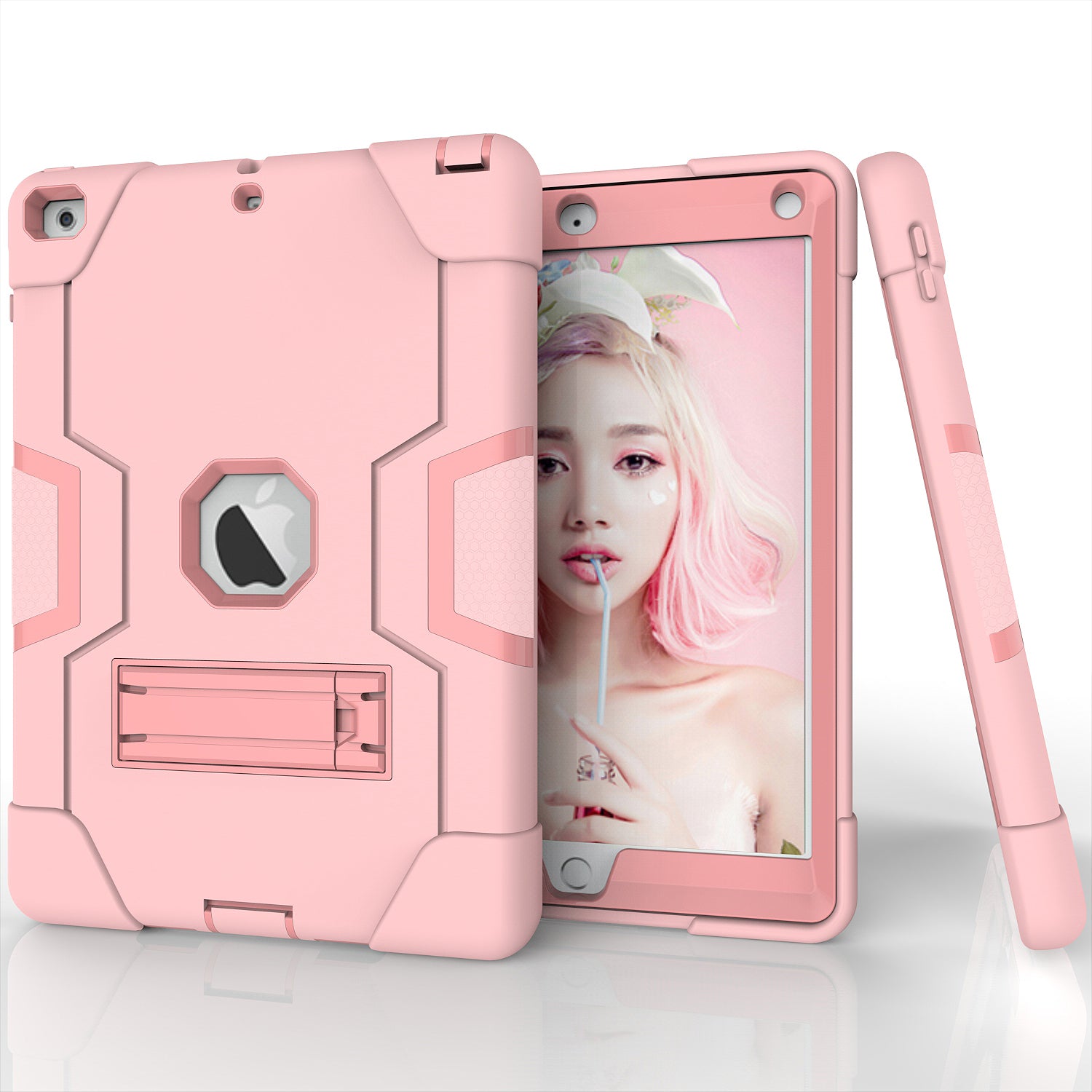 For iPad 9.7-inch (2018)/iPad 9.7-inch (2017) Bi-color PC Silicone Tablet Case Kickstand Anti-drop Hybrid Cover
