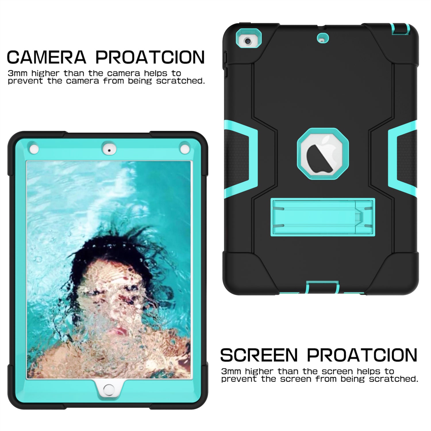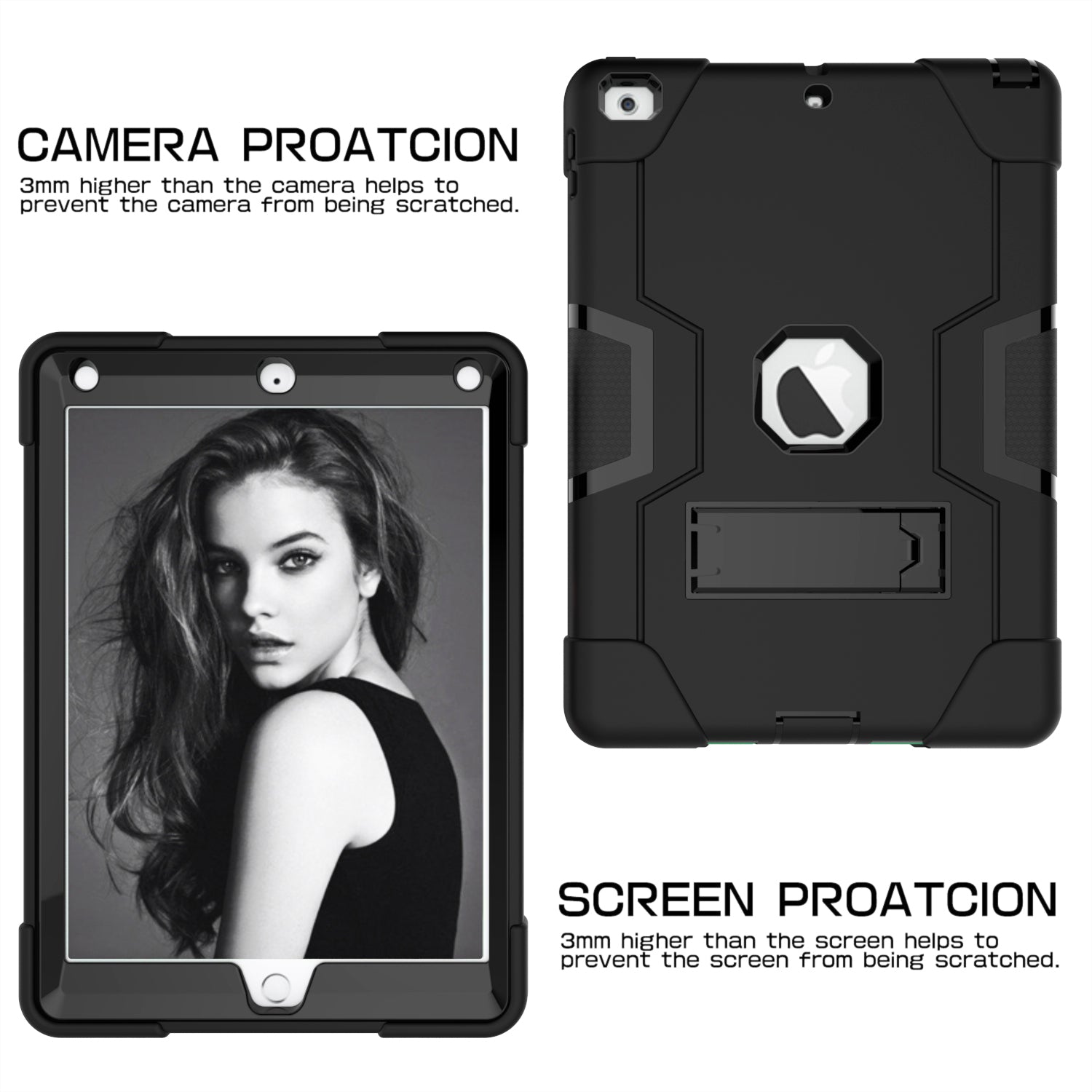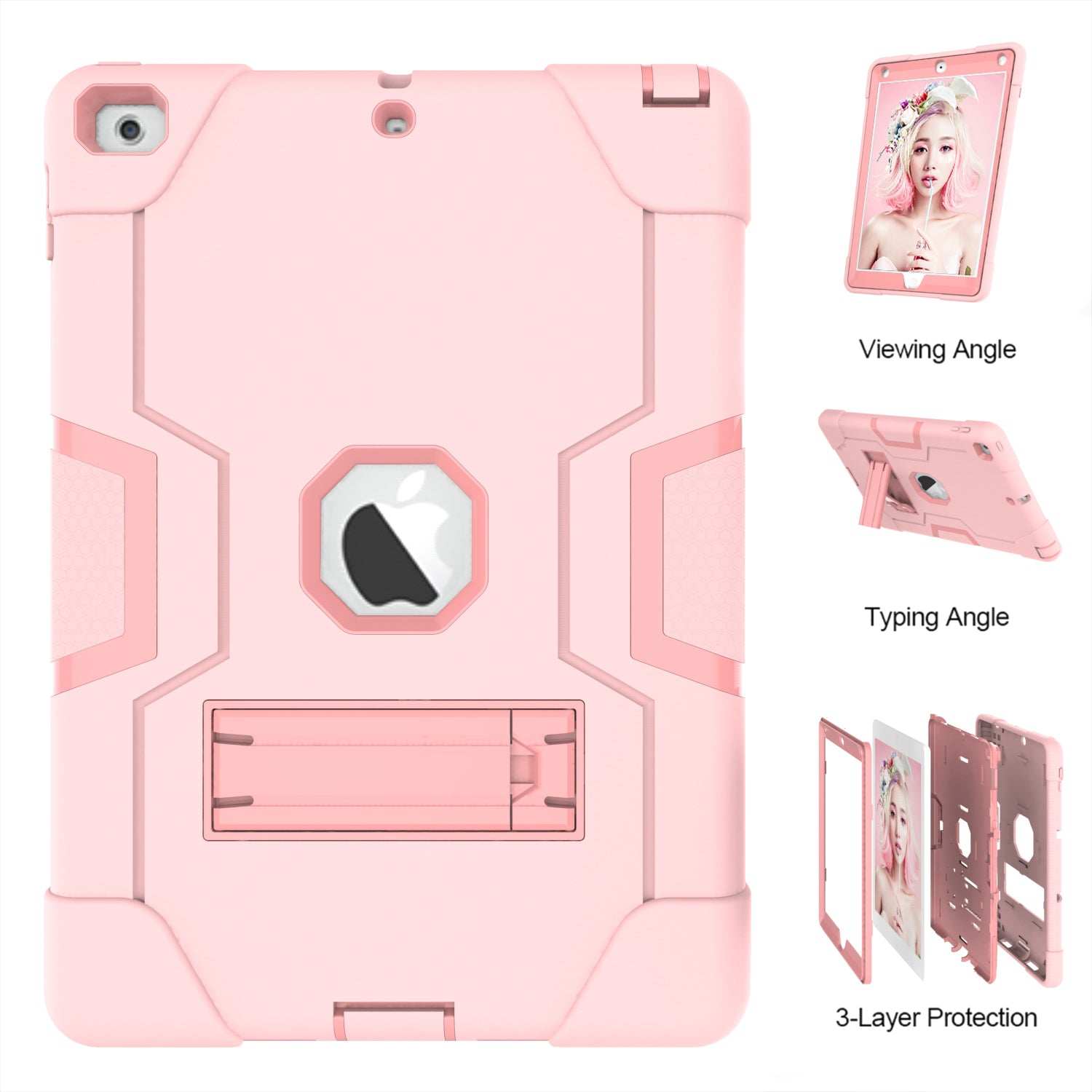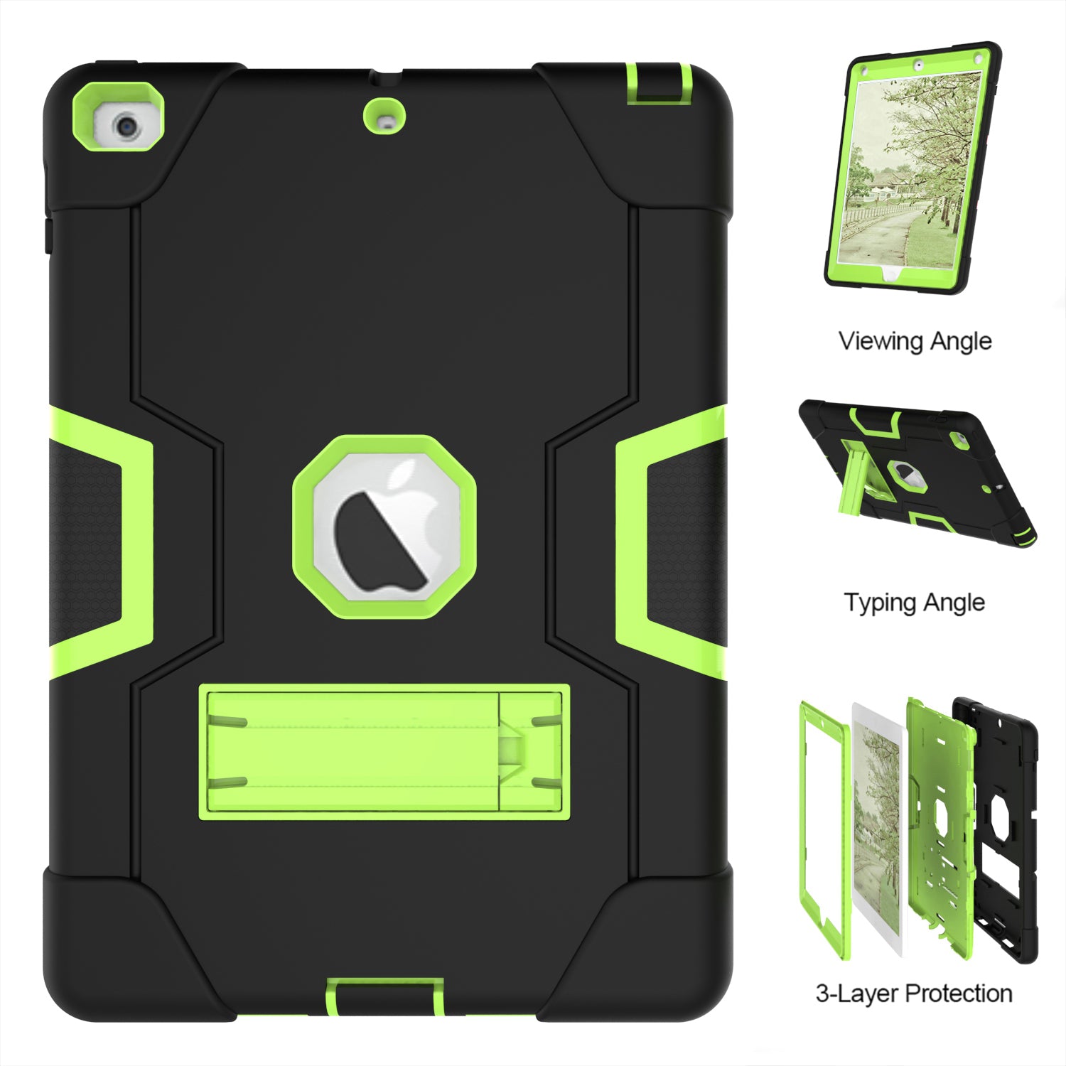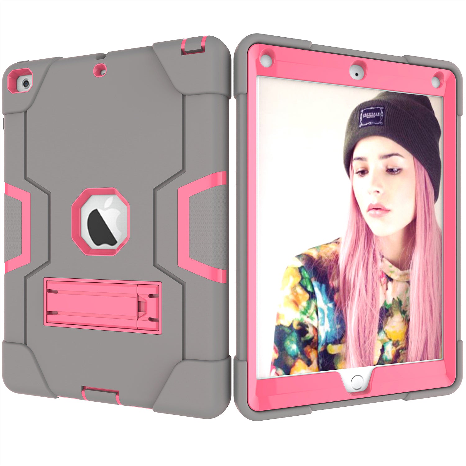 For iPad 9.7-inch (2018)/iPad 9.7-inch (2017) Bi-color PC Silicone Tablet Case Kickstand Anti-drop Hybrid Cover