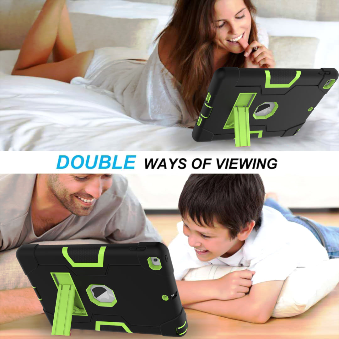 Impact resistant design and shock absorbing silicone + plastic materials fully cover back and edges, protecting against accidental drops and falls. Convenient adjustable but sturdy kickstand fully free your hands when you're reading, watching and surfing the internet in your free time