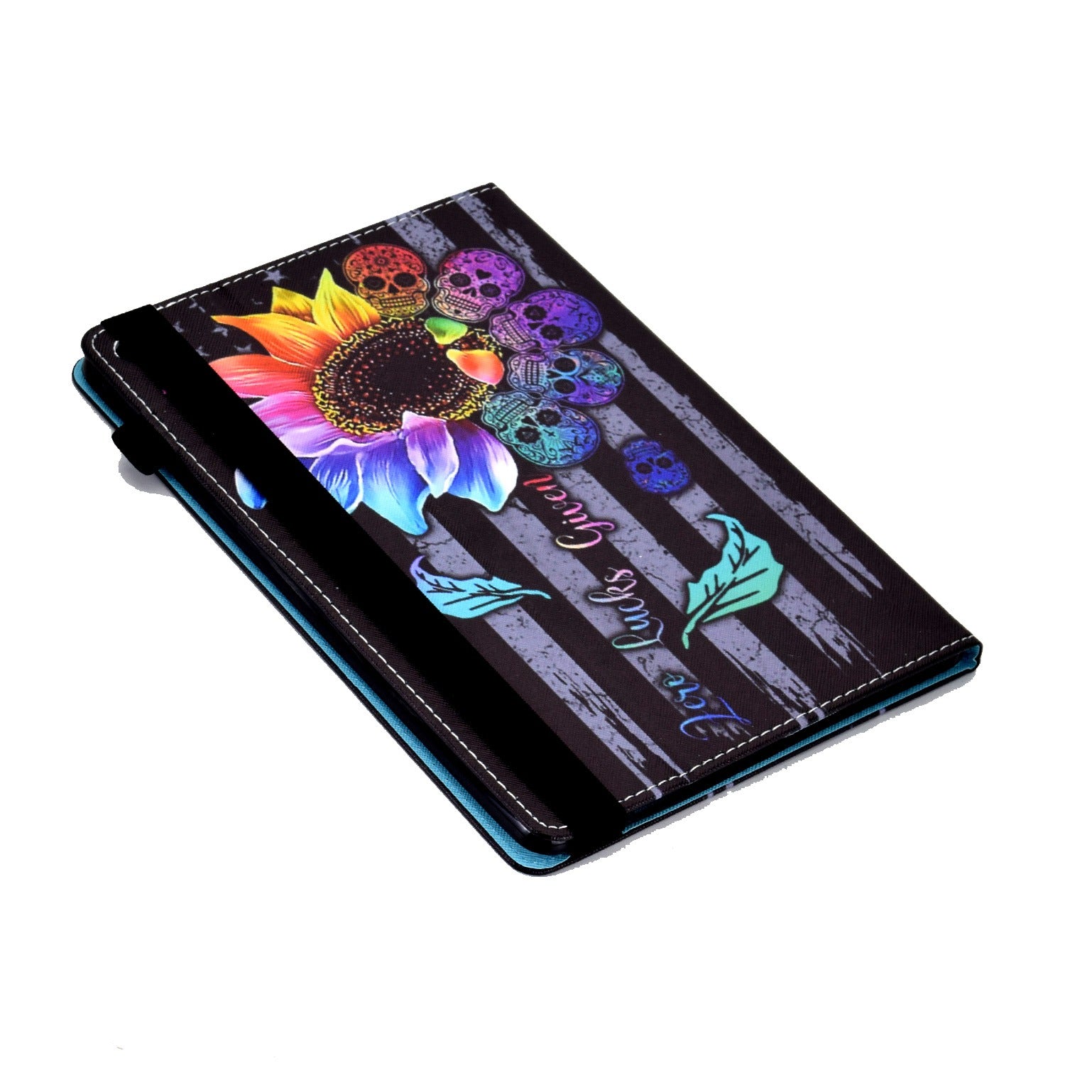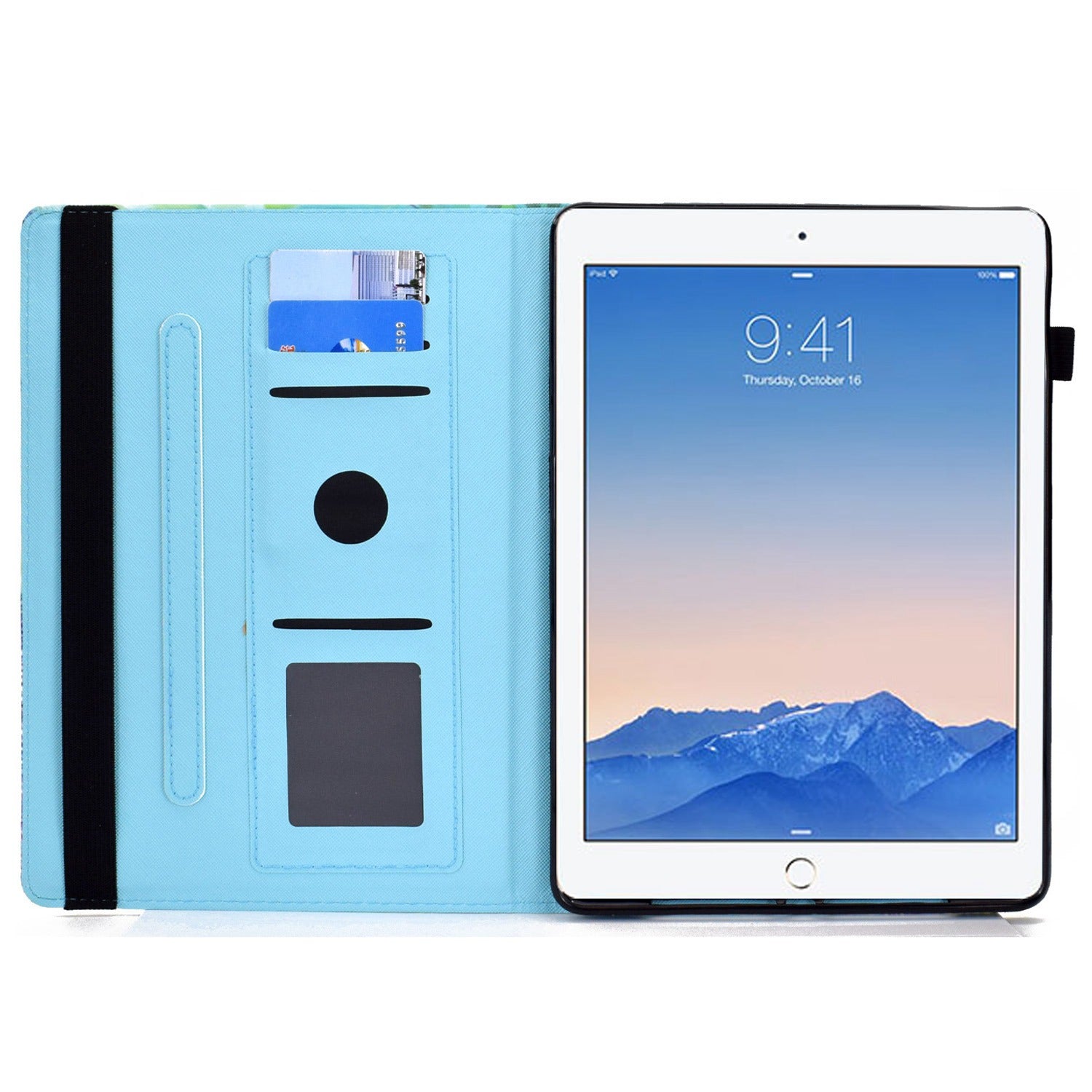 For iPad Air (2013) / Air 2 / iPad 9.7-inch (2017) / (2018) Stitching PU Leather Tablet Cover Pattern Printing Stand Card Holder Case with Elastic Band Closure