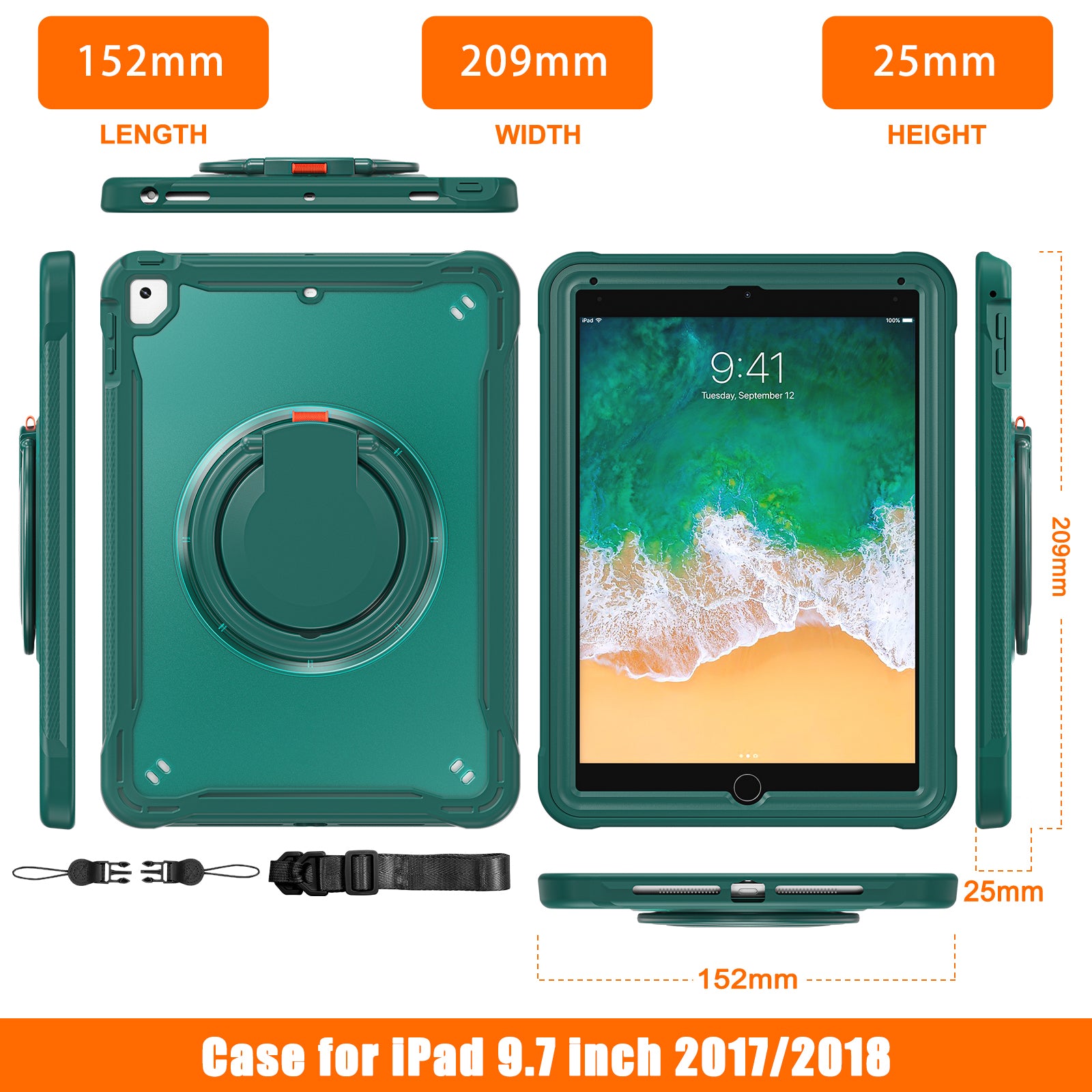 For iPad Air (2013) / Air 2 / iPad Pro 9.7 inch (2016) / iPad 9.7-inch (2017) / (2018) Kickstand Cover PC+TPU Handle Grip Tablet Case