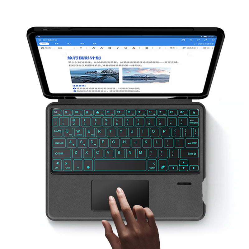 For iPad Air (2020) / (2022) Tablet Case Genuine Cow Leather Folio Stand Cover with Integrated Backlight Wireless Keyboard