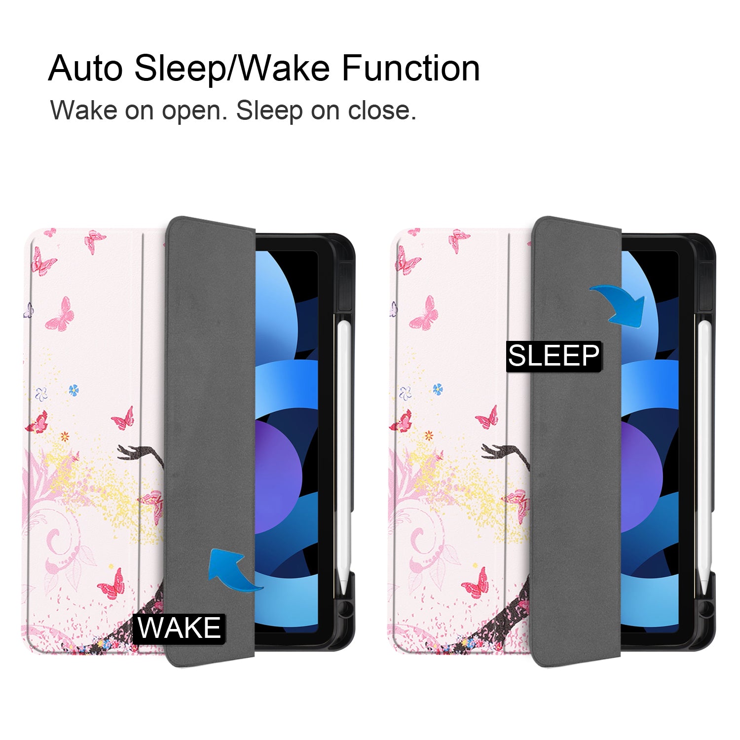 For iPad Air (2020)/Air (2022) Pattern Printing PU Leather Soft TPU Back Tablet Case Smart Tri-fold Stand Auto Wake/Sleep Shell with Pen Slot