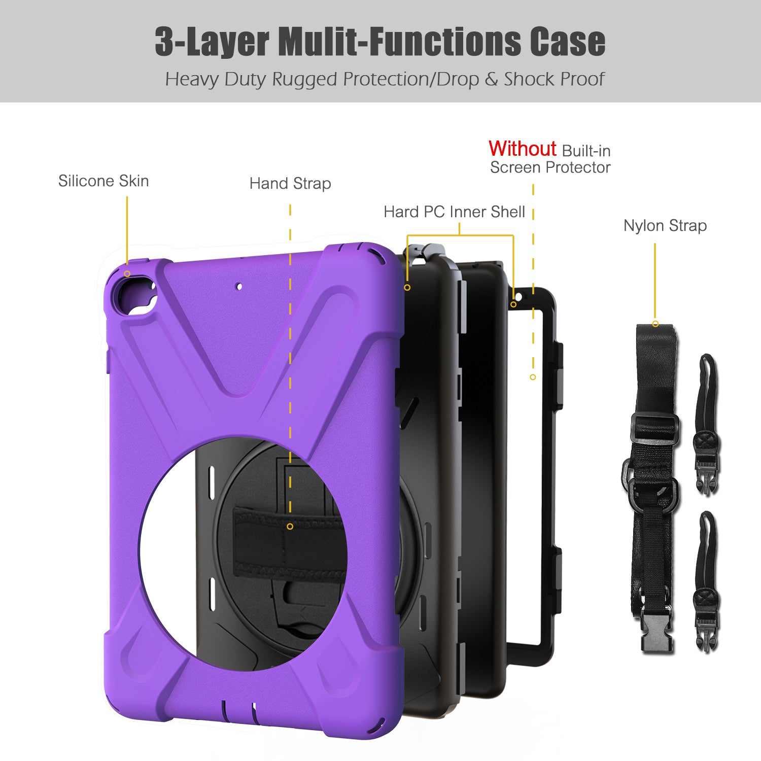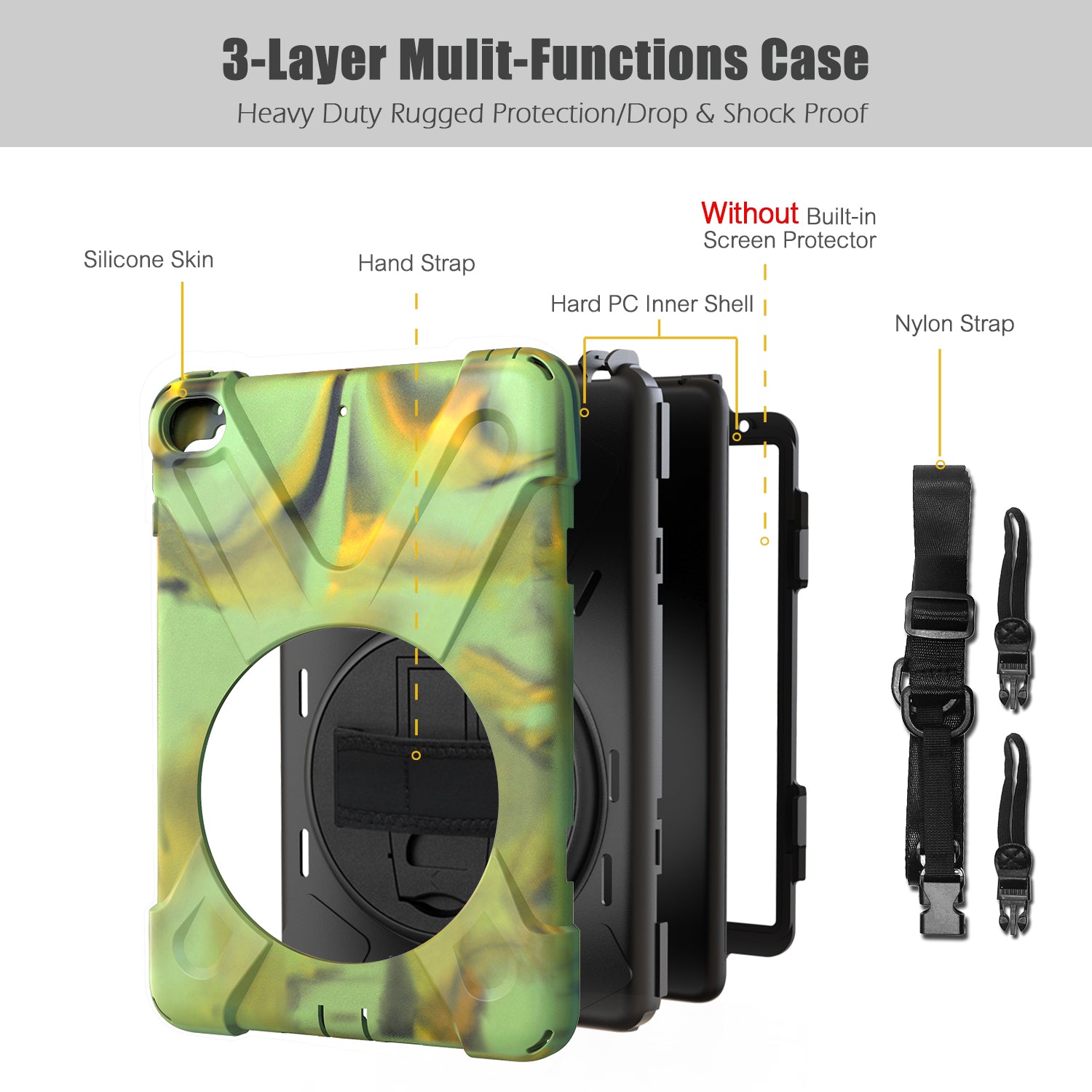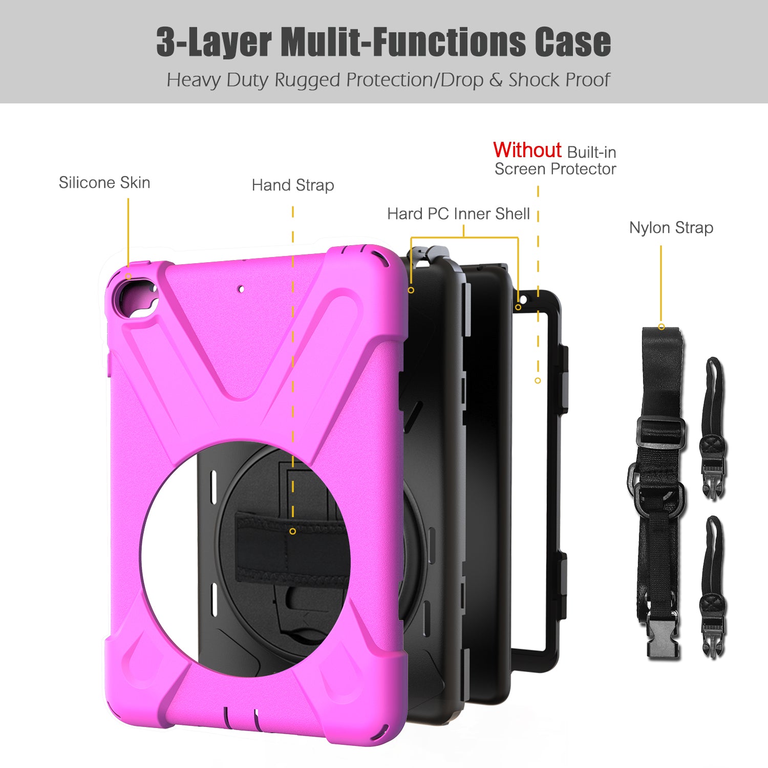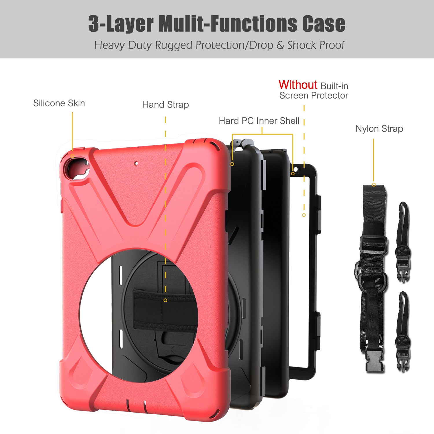 For iPad mini (2019) 7.9 inch / mini 4 X-Shape PC + TPU Rotary Kickstand Cover with Handstrap + Shoulder Strap
