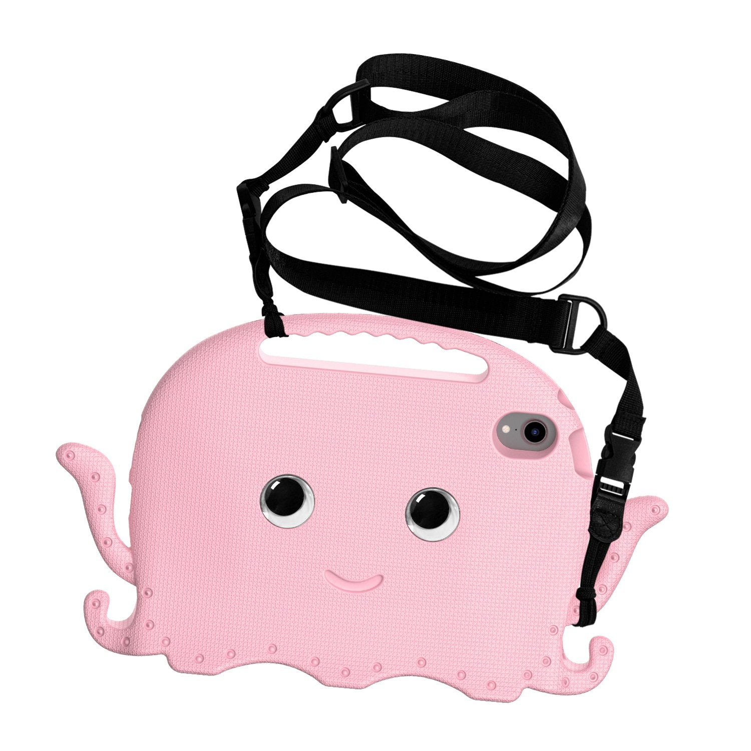 For iPad mini (2021) Cute Octopus Shape EVA Case Pen Slot Design Shockproof Tablet Cover with Handle and Shoulder Strap