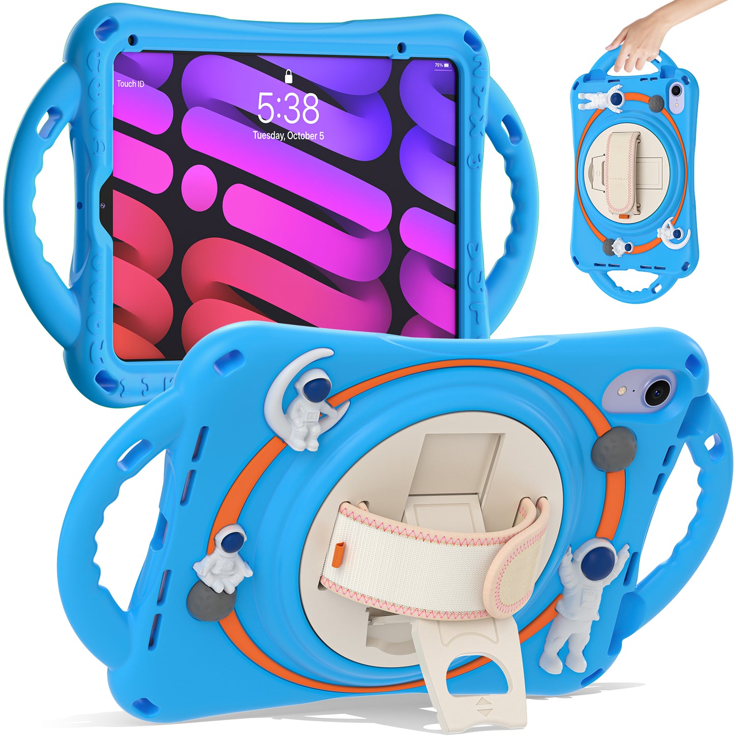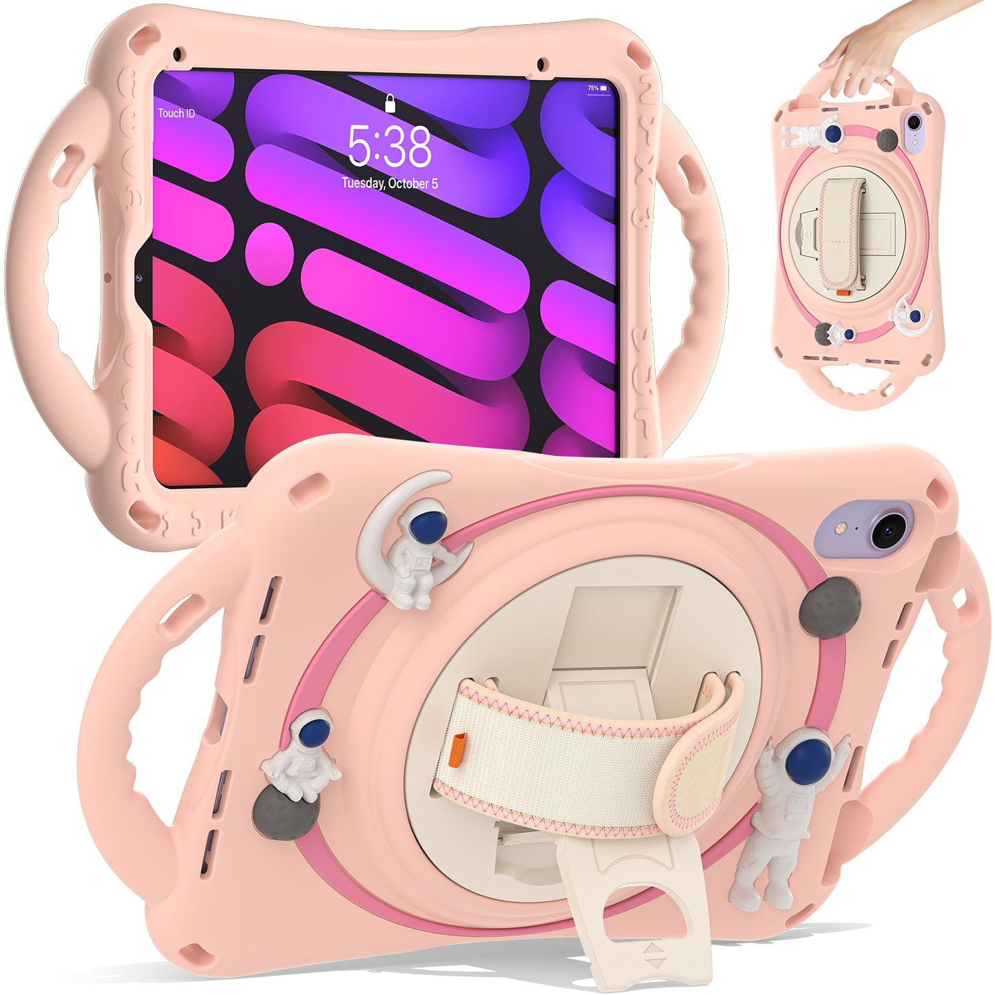 For iPad mini (2021) Hand Strap Rotary Kickstand Tablet Case Astronaut Decor PC+Silicone Tablet Cover