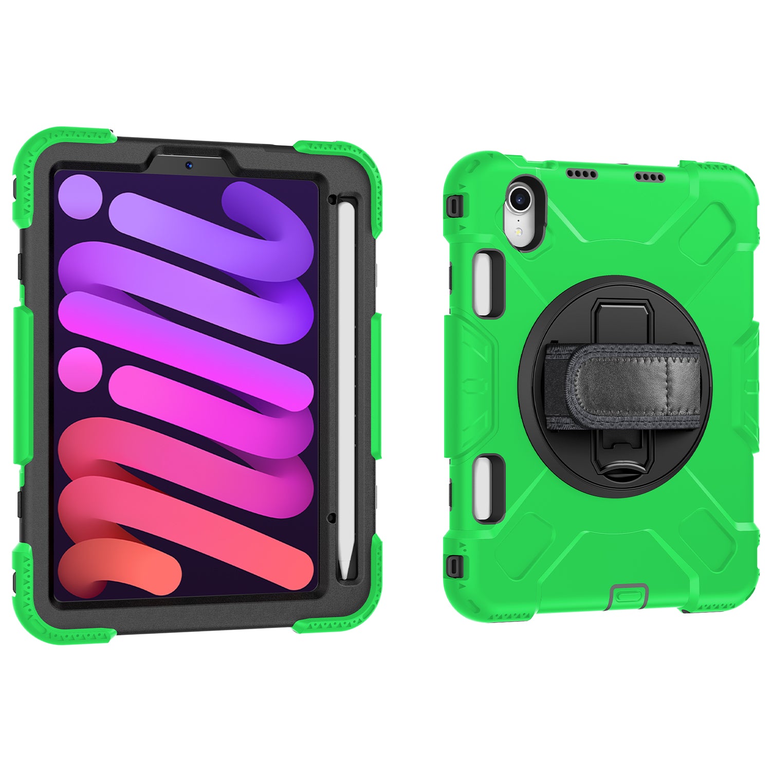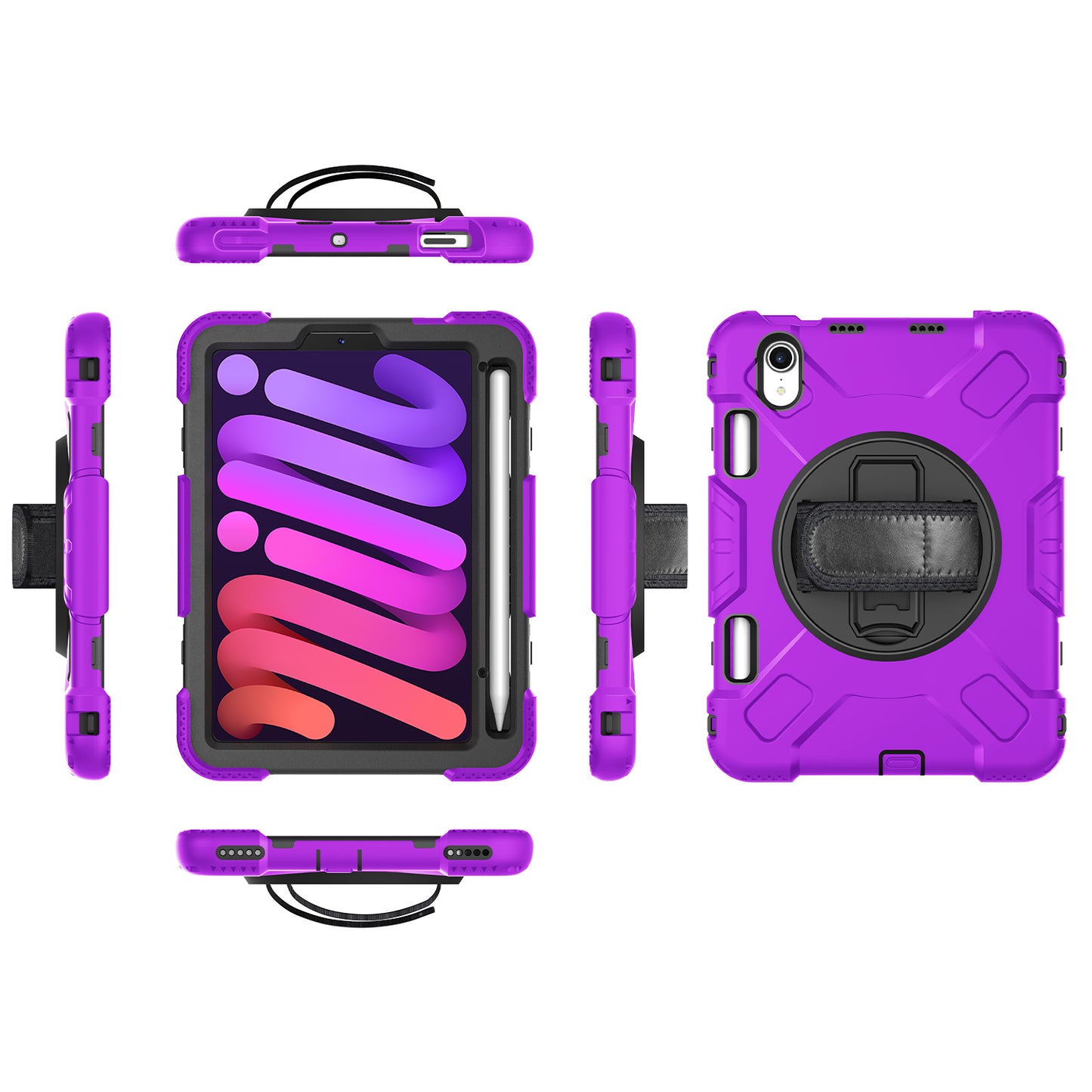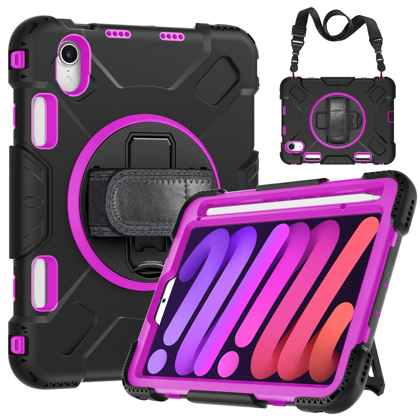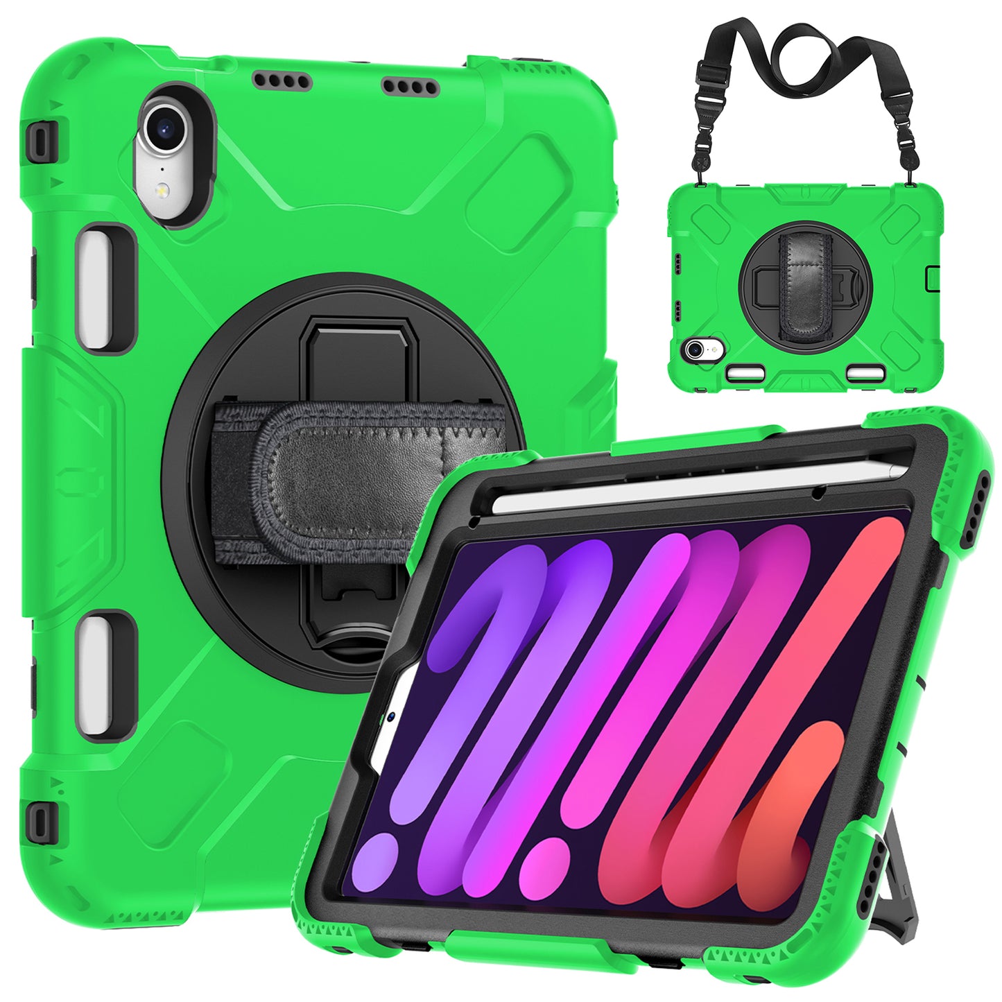 For iPad mini (2021) PC+Silicone Tablet Case Protective Kickstand Cover with Pen Slot / Shoulder Strap
