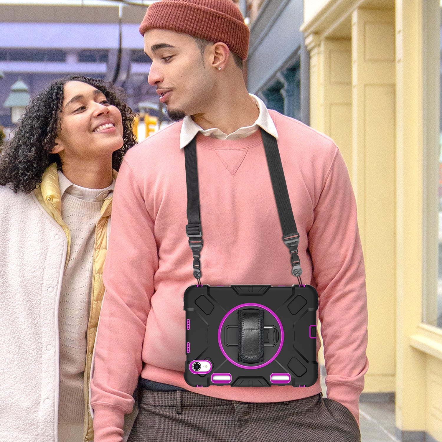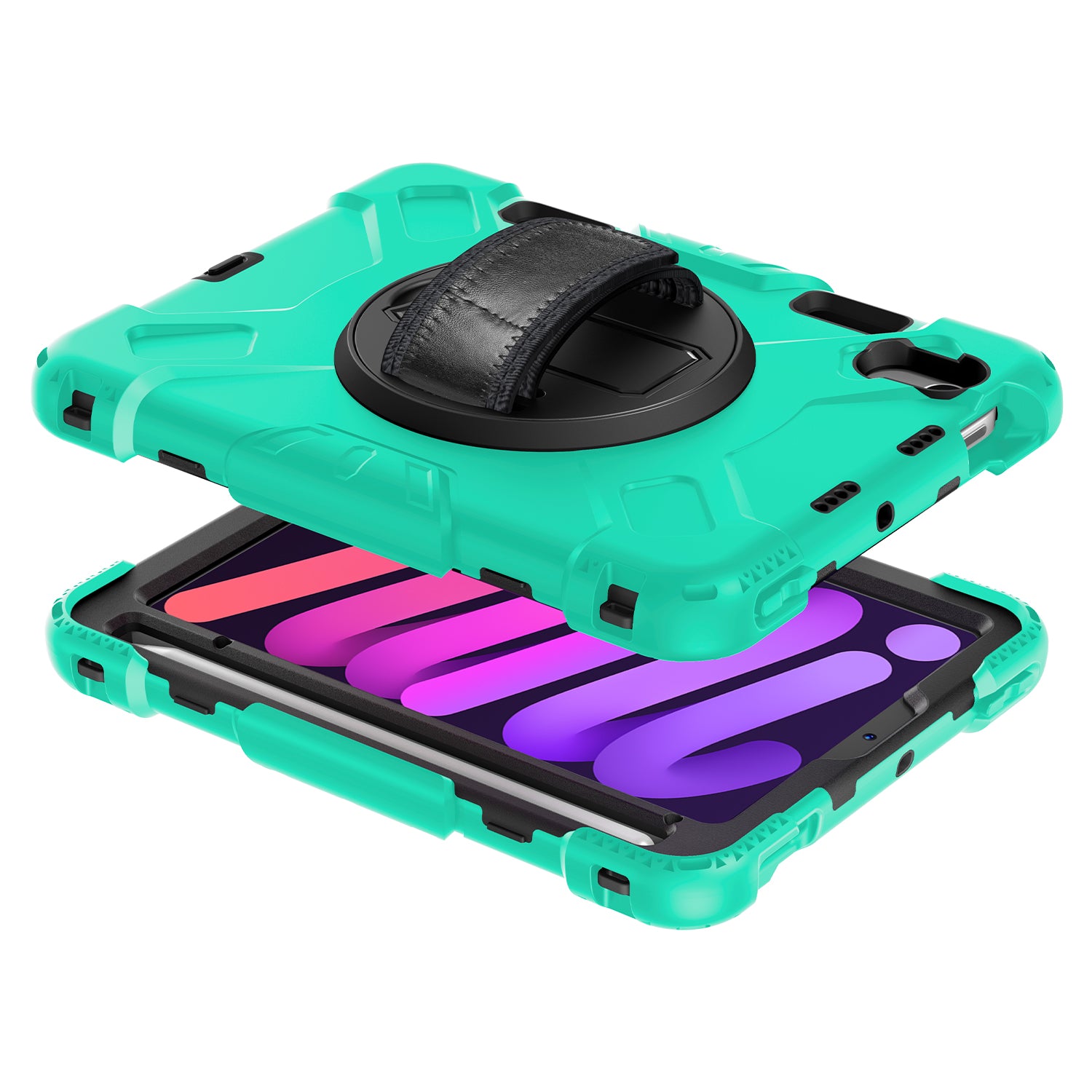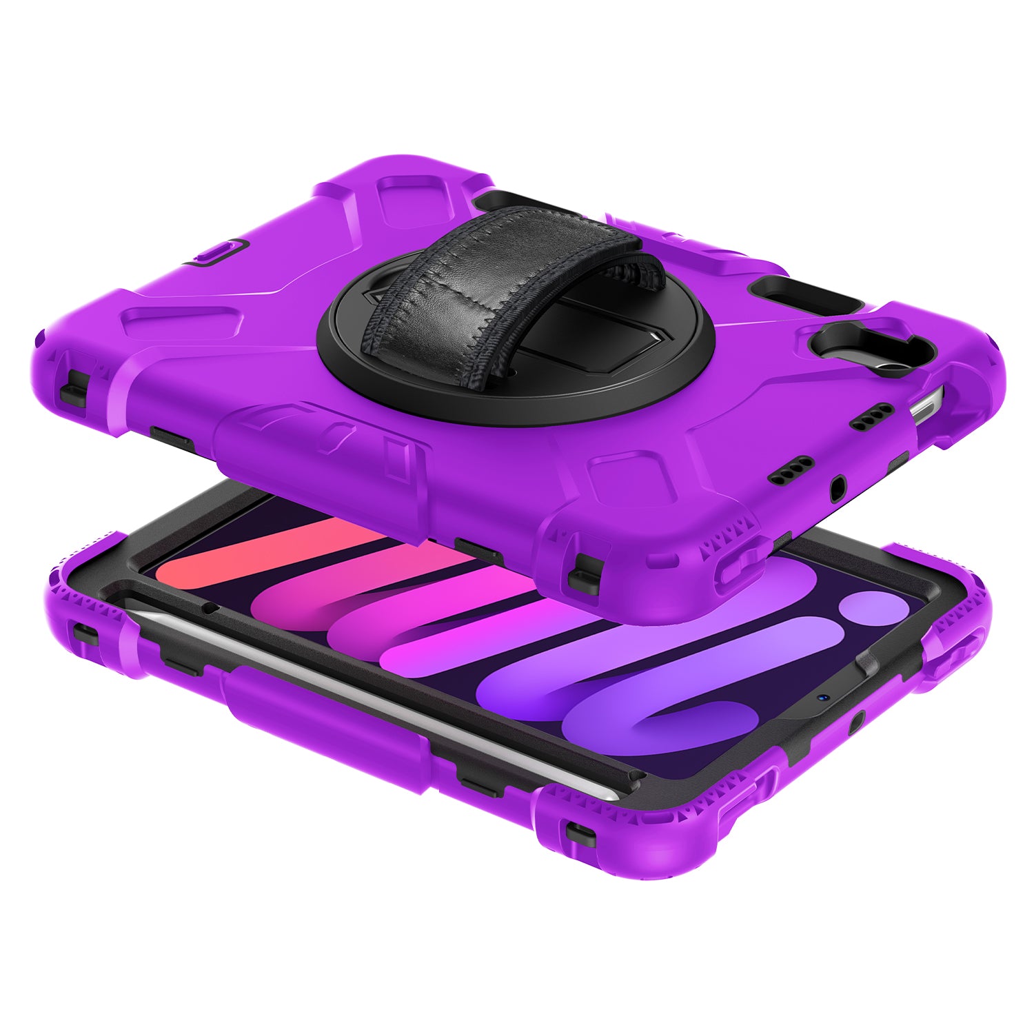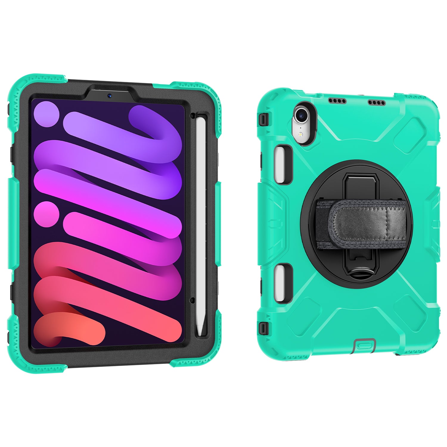 For iPad mini (2021) PC+Silicone Tablet Case Protective Kickstand Cover with Pen Slot / Shoulder Strap
