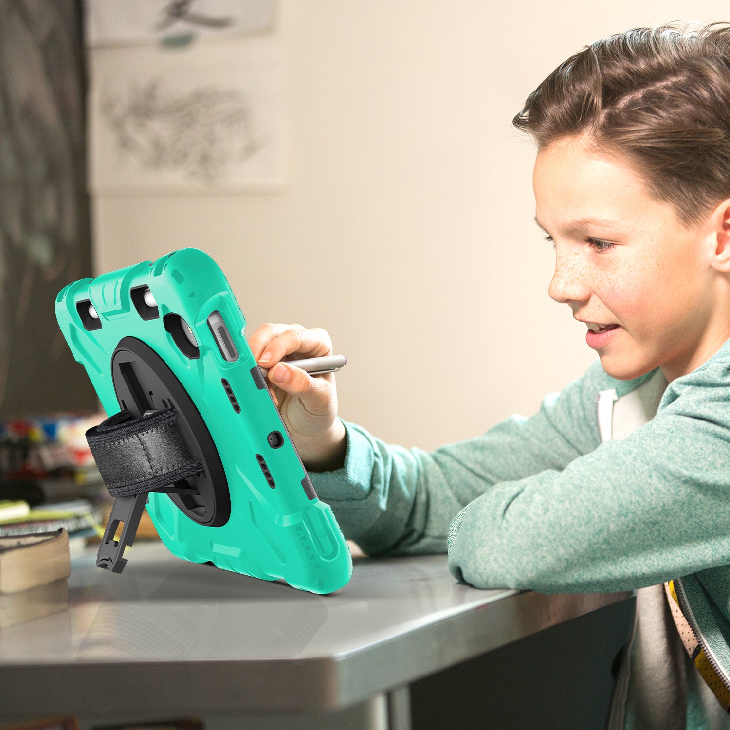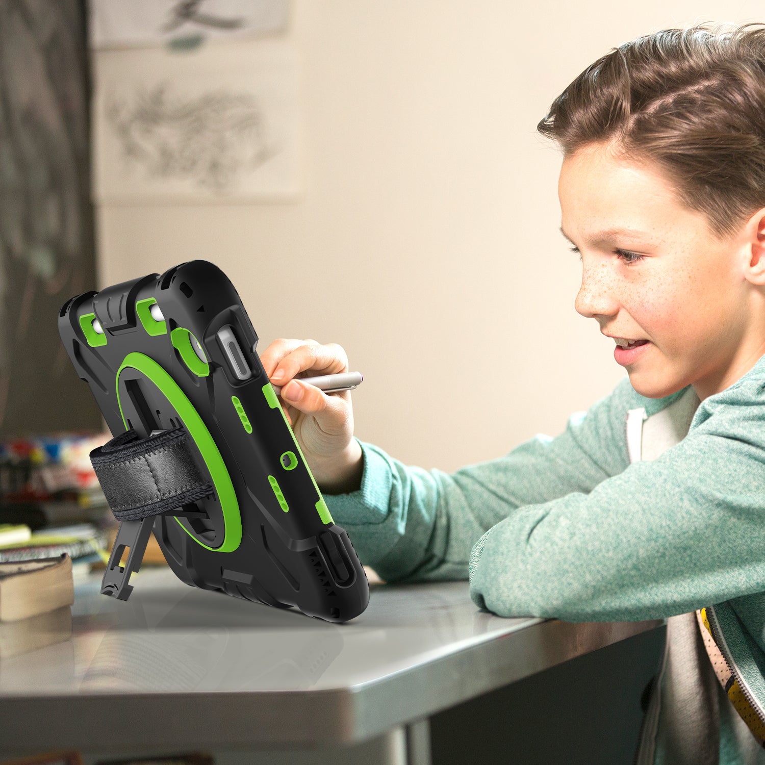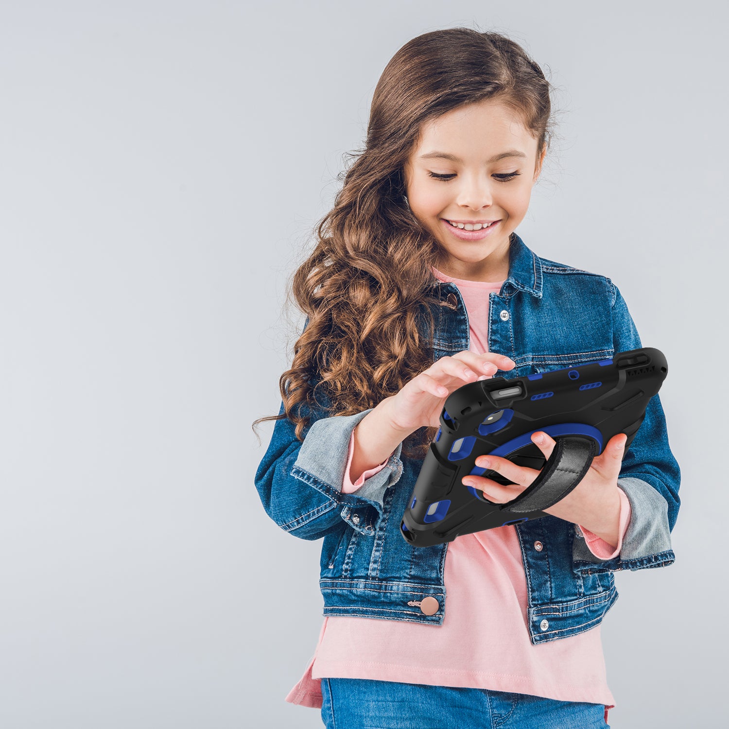 - There is a hand band strap on the back of the tablet case, which allows you to hold your device safely with one hand