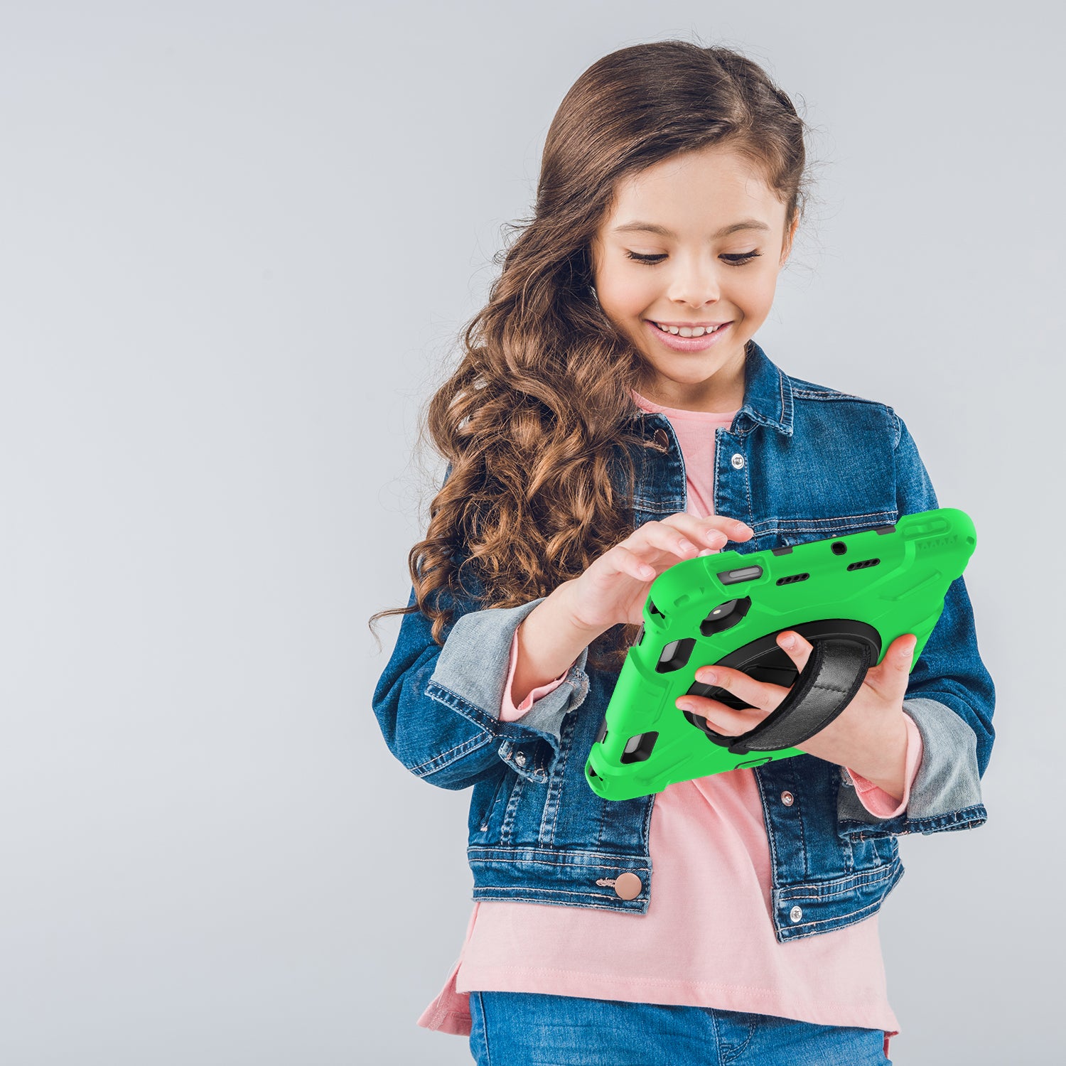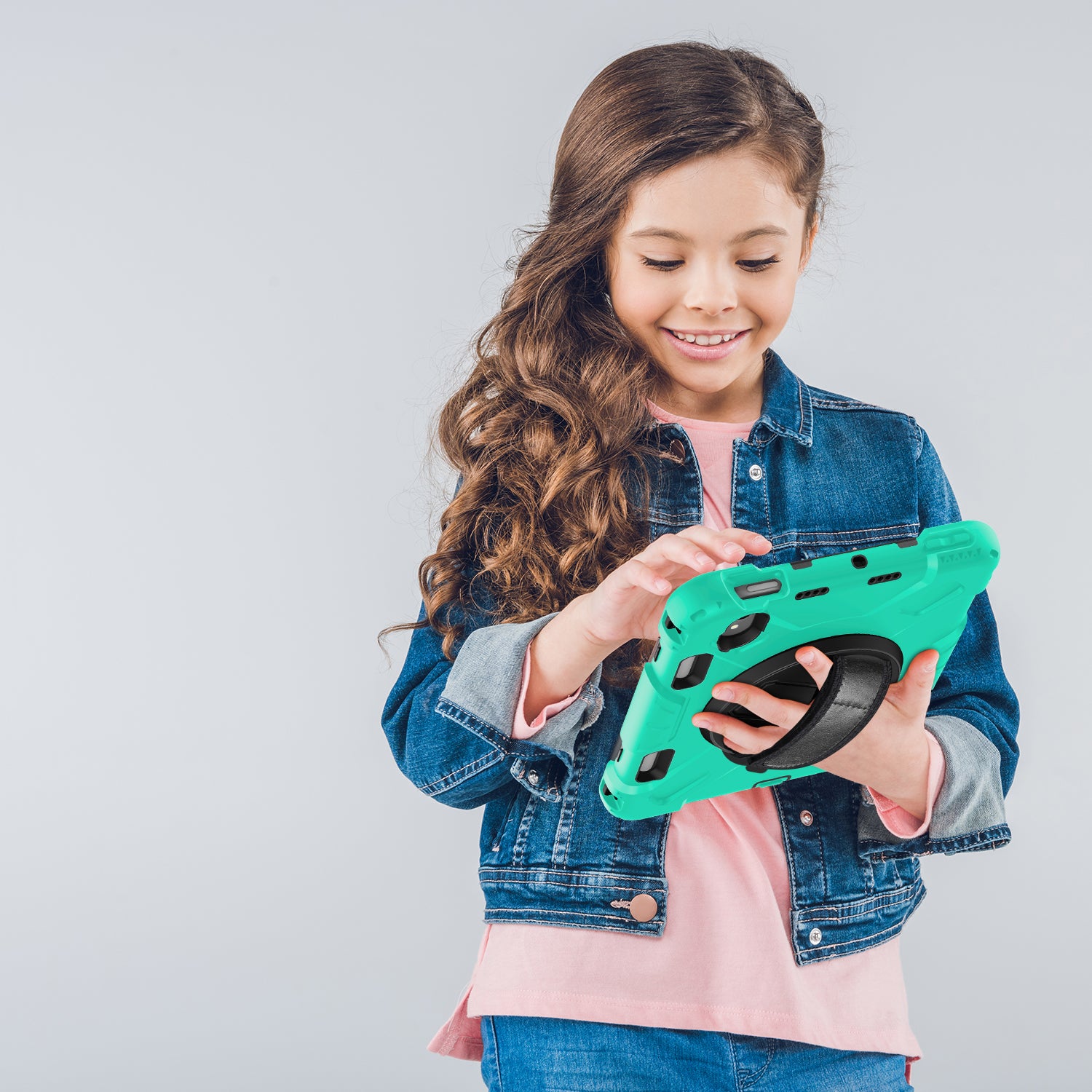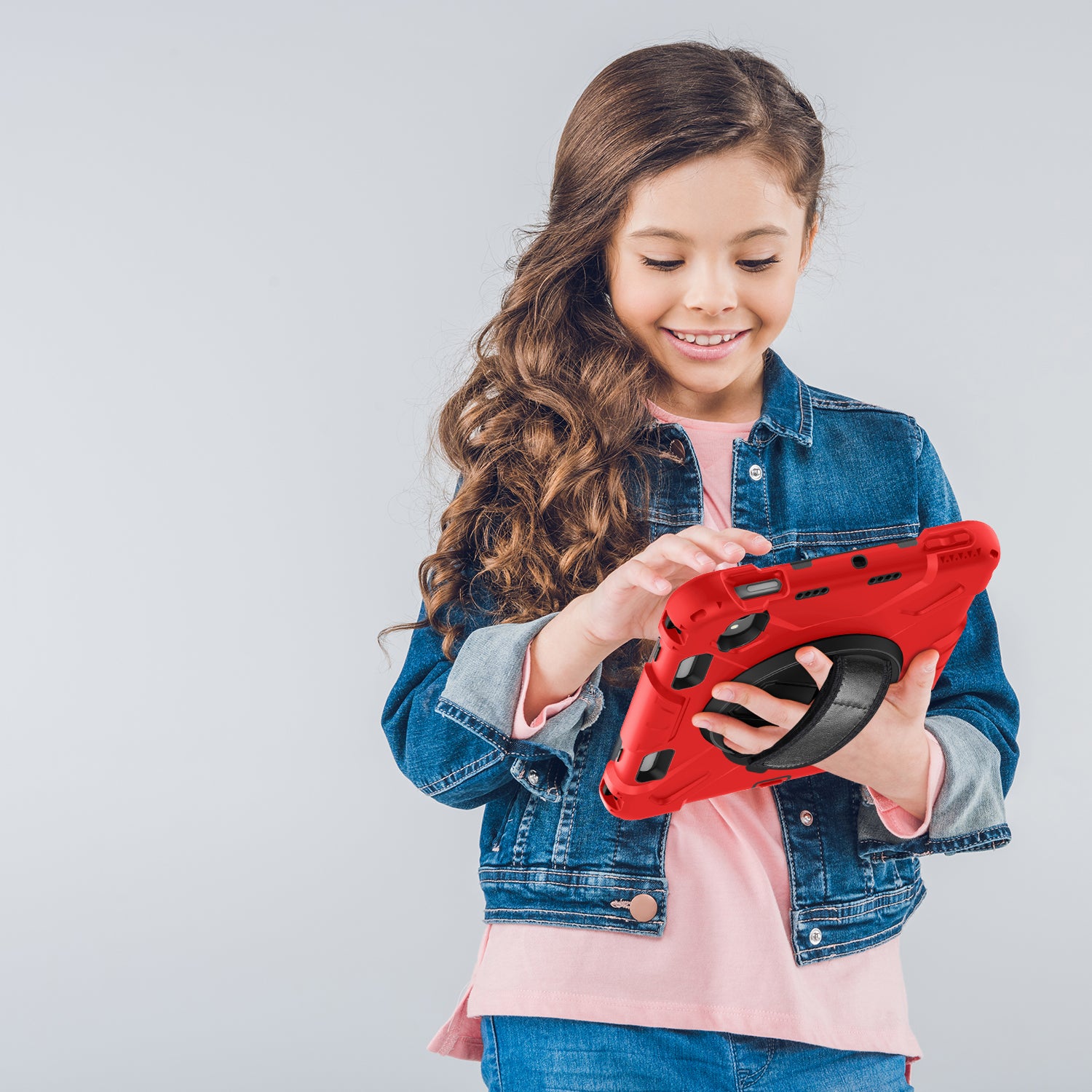 - There is a hand band strap on the back of the tablet case, which allows you to hold your device safely with one hand
