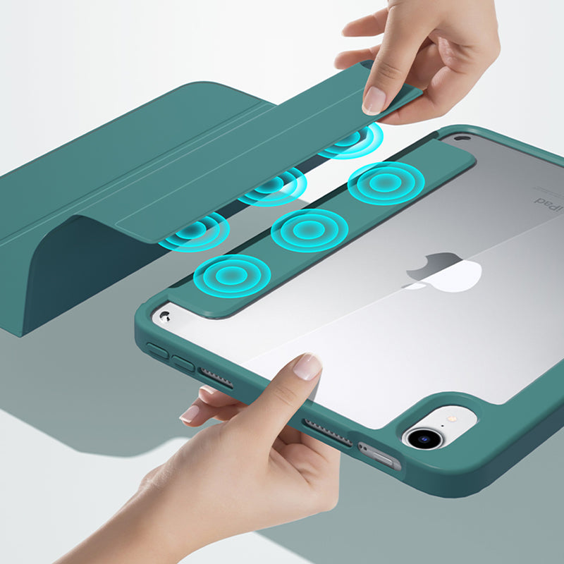 For iPad mini (2021) Shockproof Case PU Leather Magnetic Tablet Cover Transparent Back Tablet Protector with Pencil Holder Support Auto Wake/Sleep