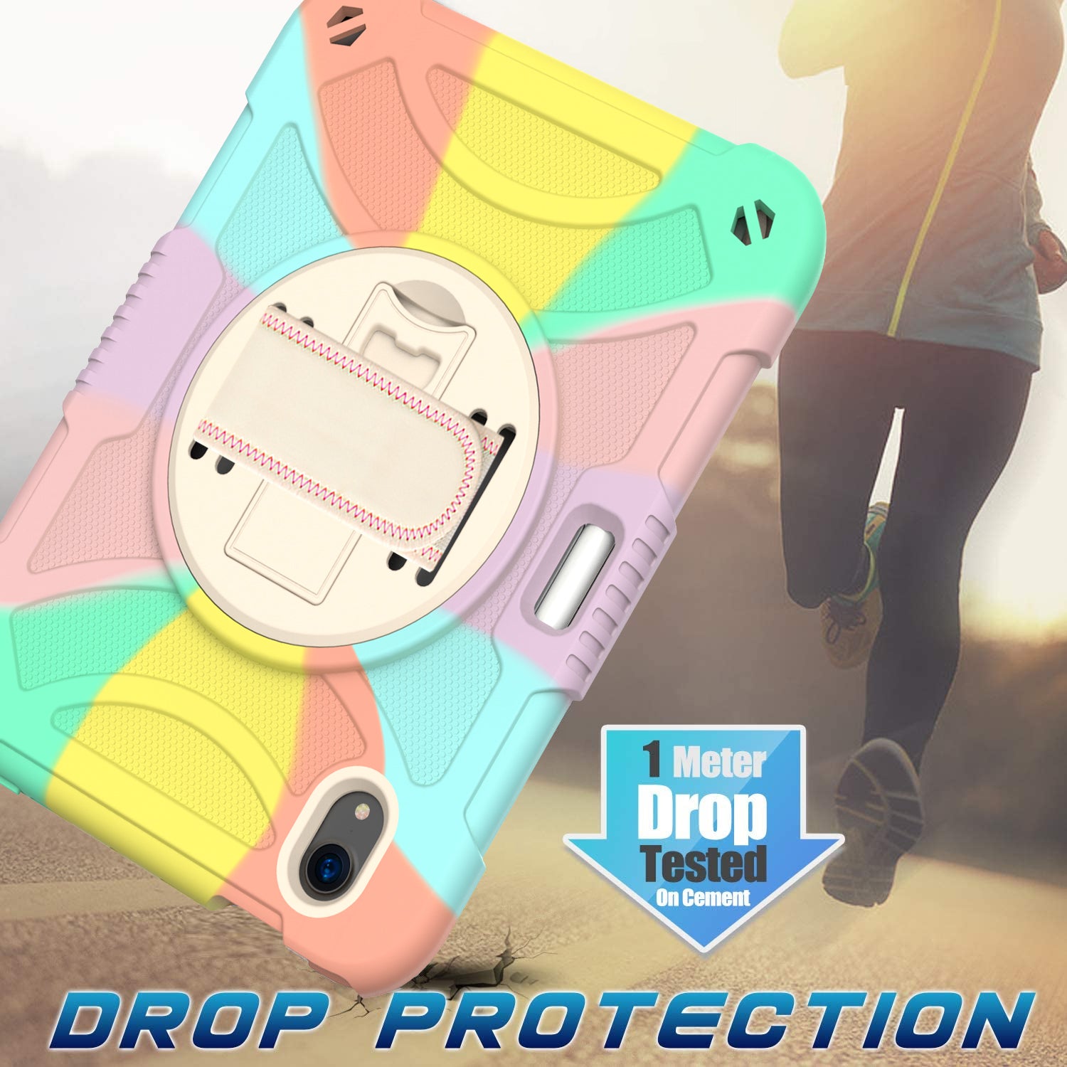 For iPad mini (2021) Tablet Case Silicone+PC Rotating Kickstand Cover with Pencil Holder / Shoulder Strap