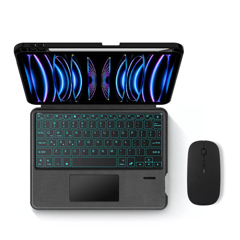For iPad Pro 11 (2020) / (2021) / (2022) Cool Backlight Typing Keyboard with Genuine Cow Leather Tablet Stand Cover