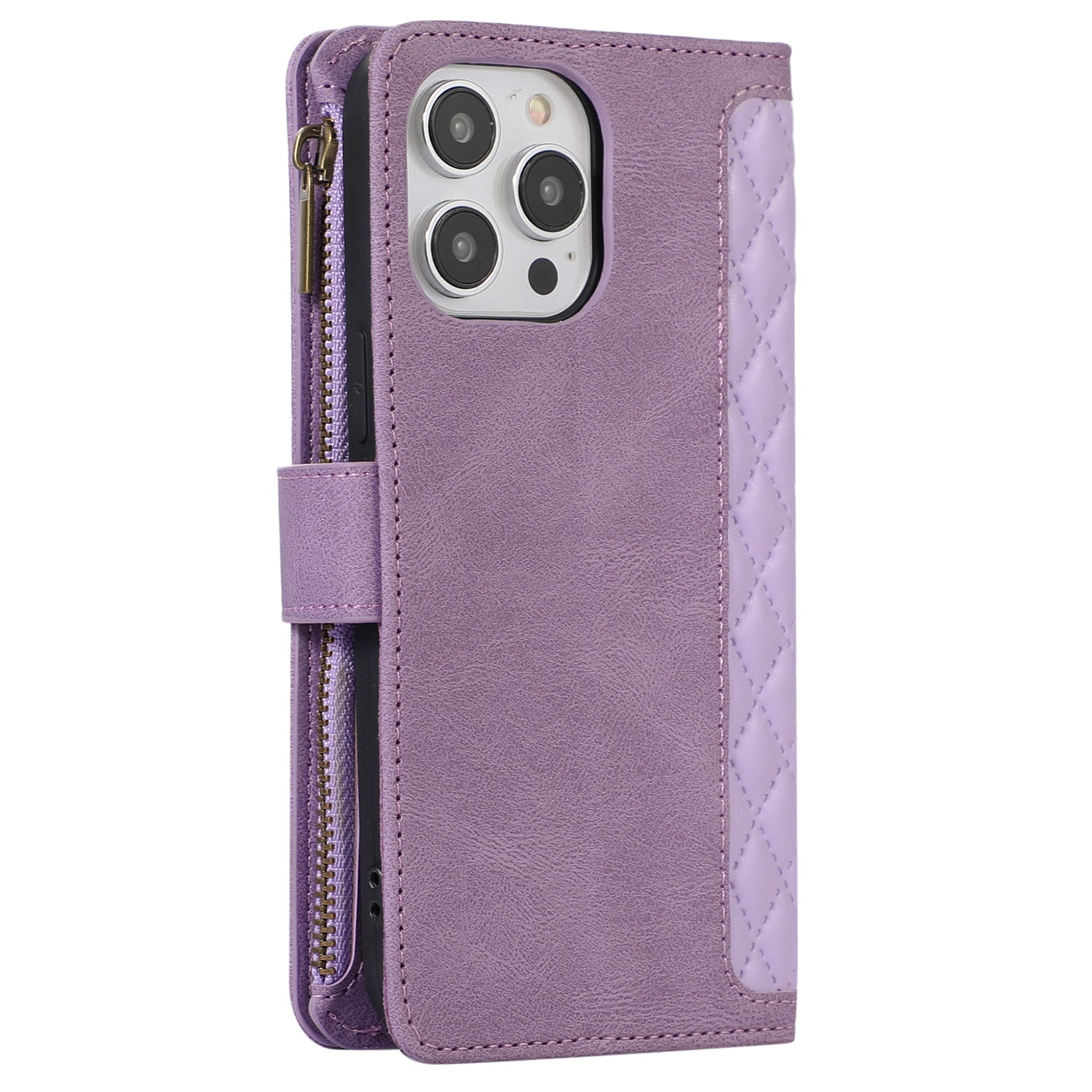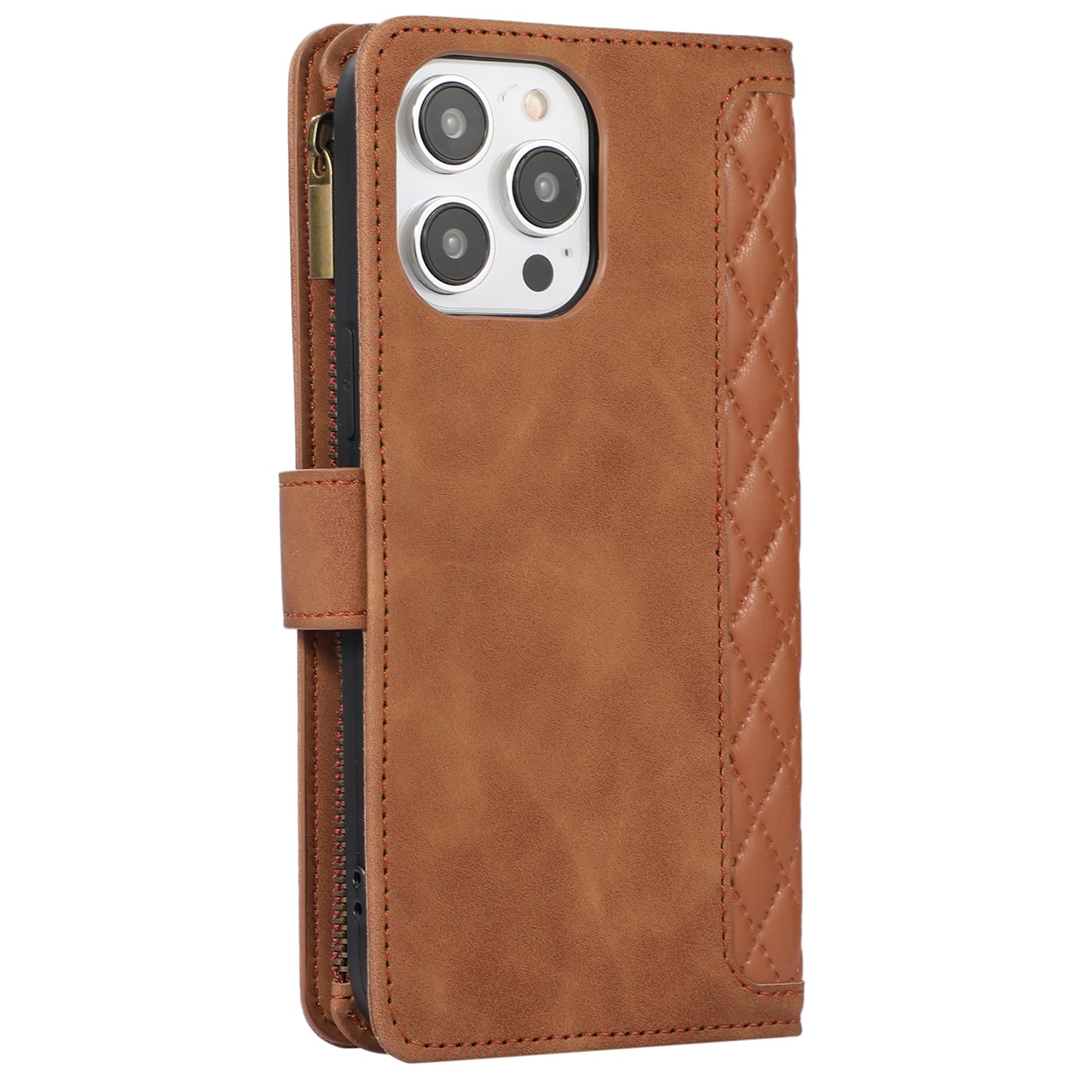 For iPhone 12 / 12 Pro 6.1 inch Zipper Pocket Leather Protective Shell Wallet Stand Phone Case with 9 Card Slots