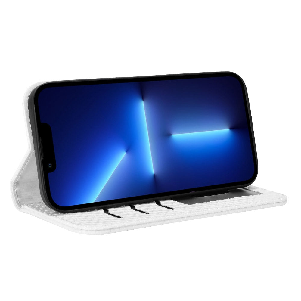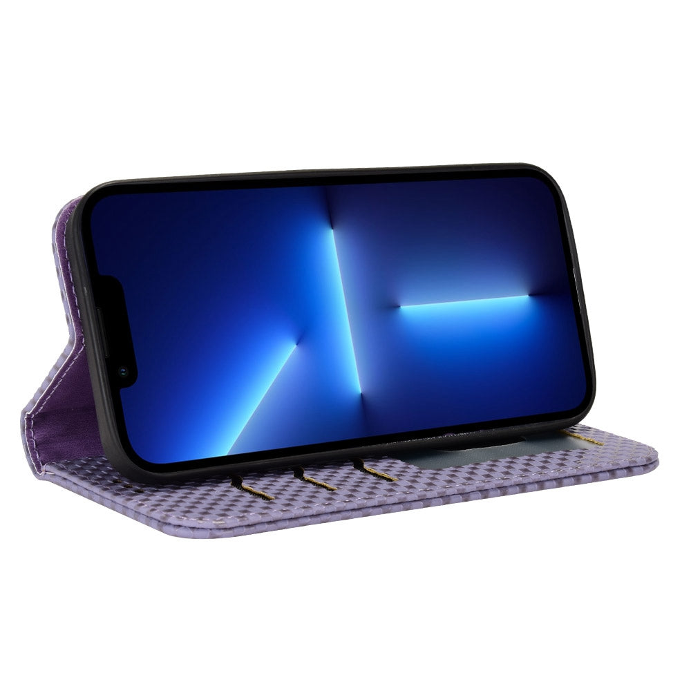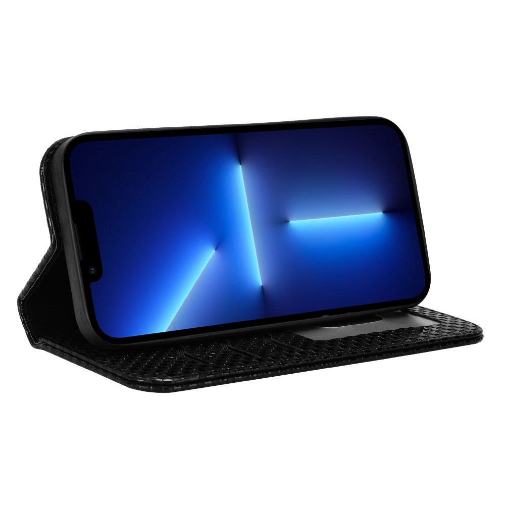 For iPhone 13 Pro 6.1 inch Grid Texture PU Leather Stand Case Magnetic Auto-absorbed Cell Phone Wallet Cover