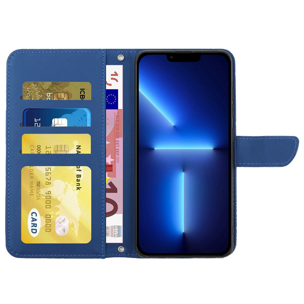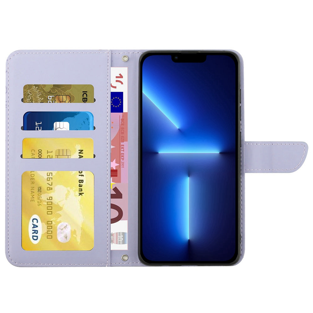 For iPhone 13 Pro 6.1 inch PU Leather Butterflies Flower Imprinted Stand Wallet Phone Cover with Shoulder Strap