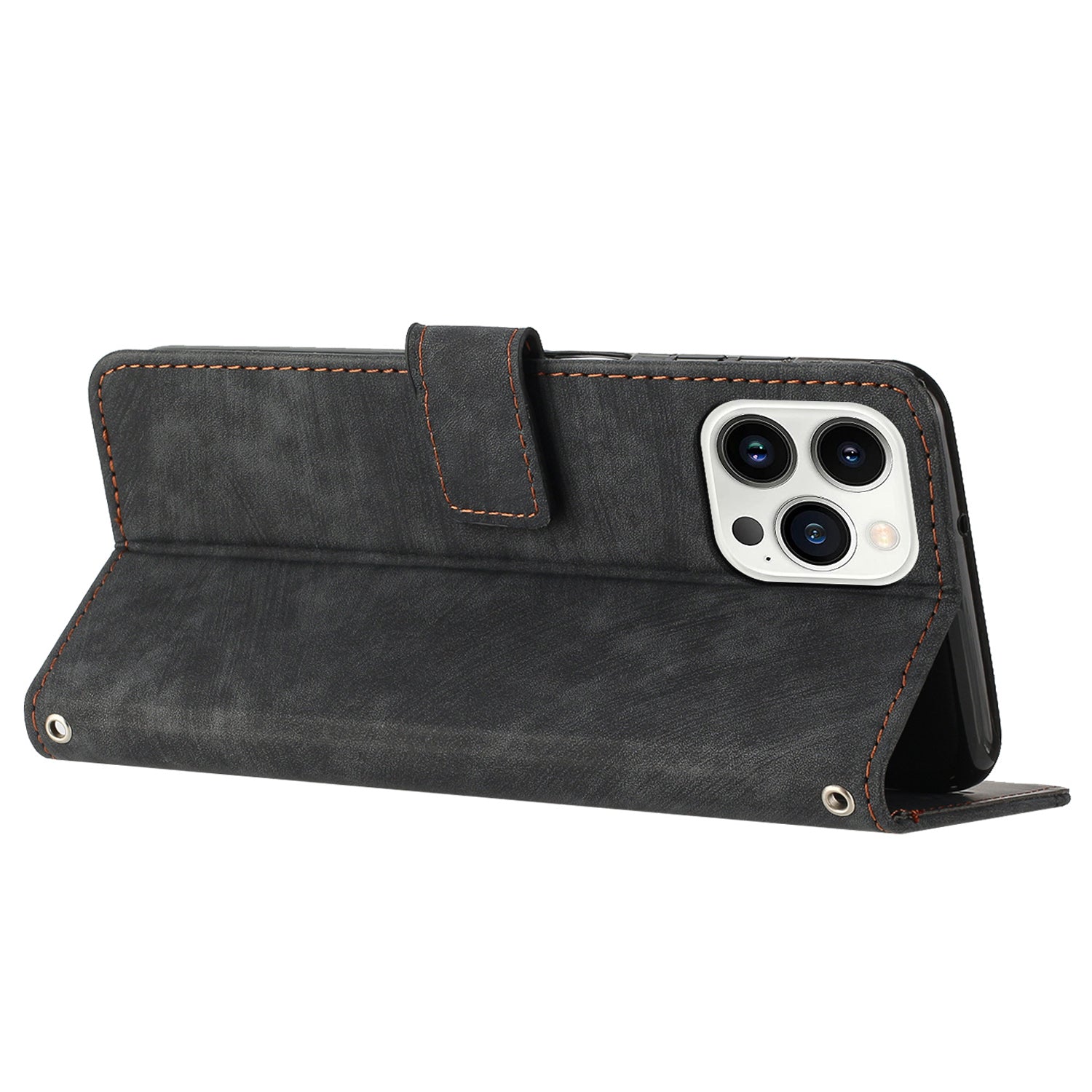 - The magnetic clasp closes easily and firmly to keep the phone, cash and cards in one place neatly and securely