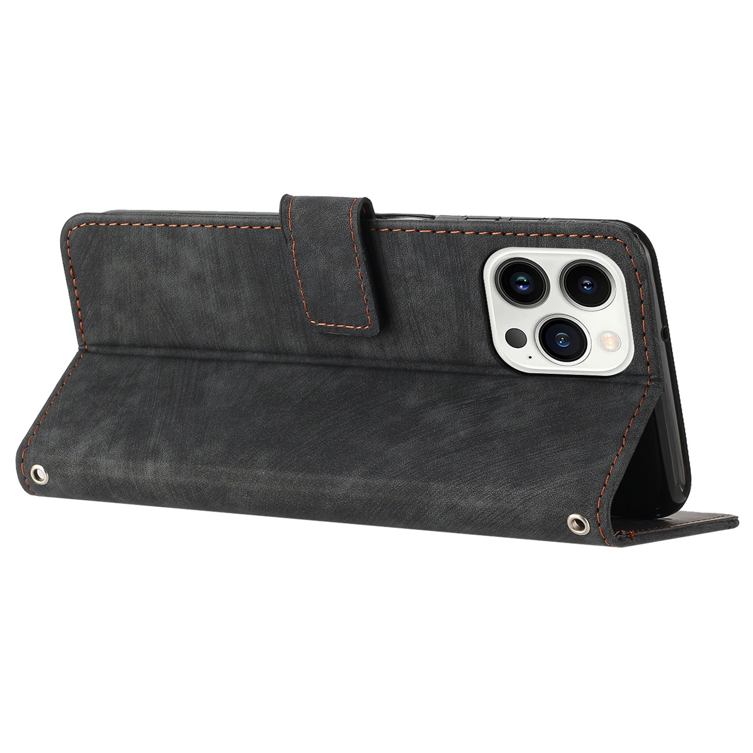 - The magnetic clasp closes easily and firmly to keep the phone, cash and cards in one place neatly and securely