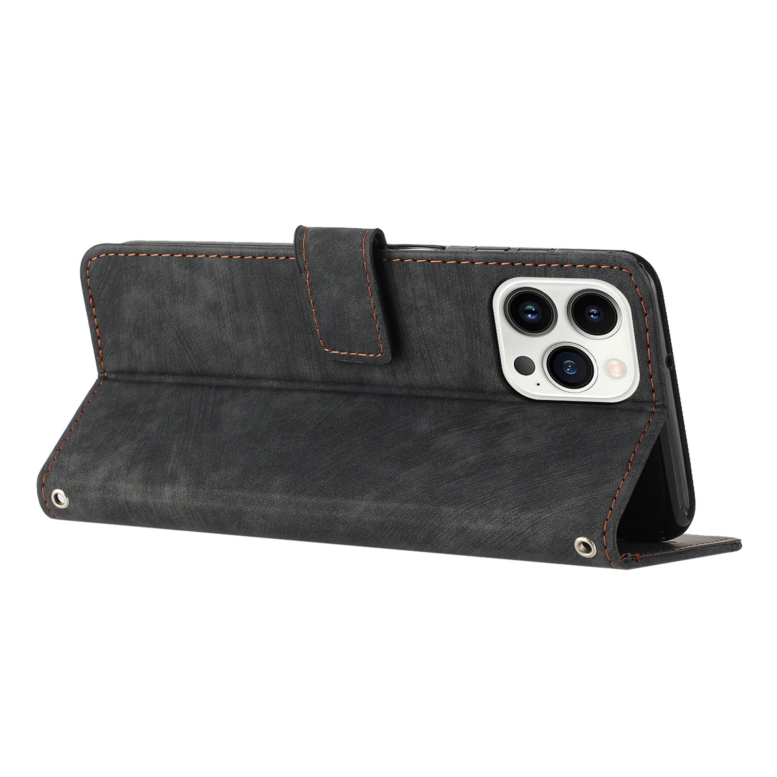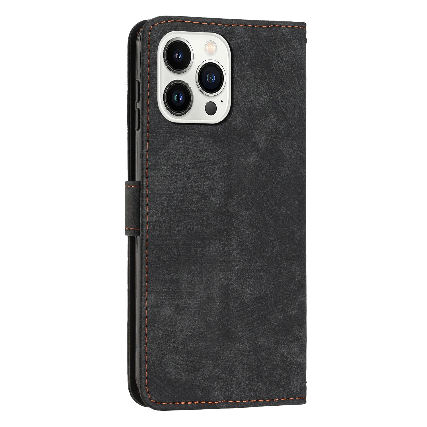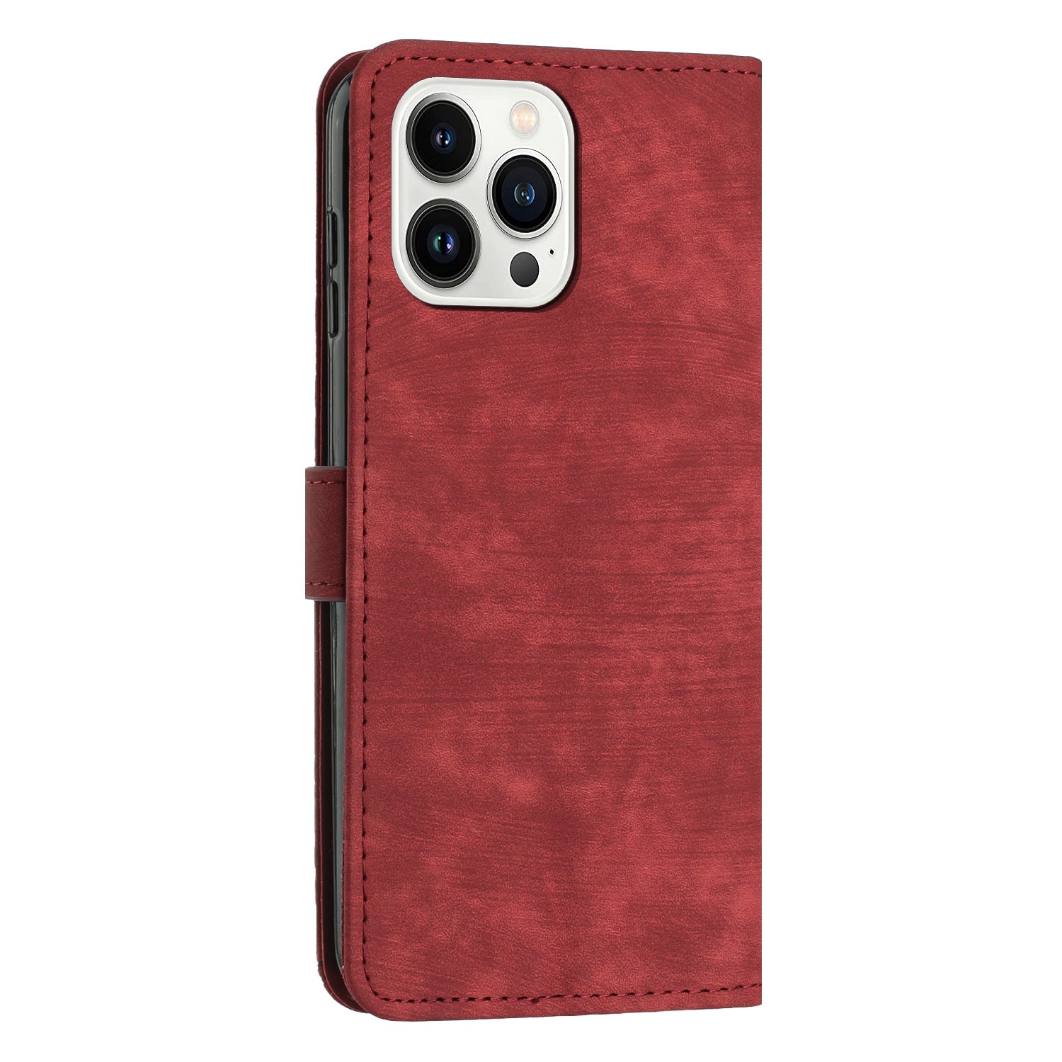 For iPhone 13 Pro Max Skin-touch Leather Case Stand Lines Imprinted Phone Wallet Cover