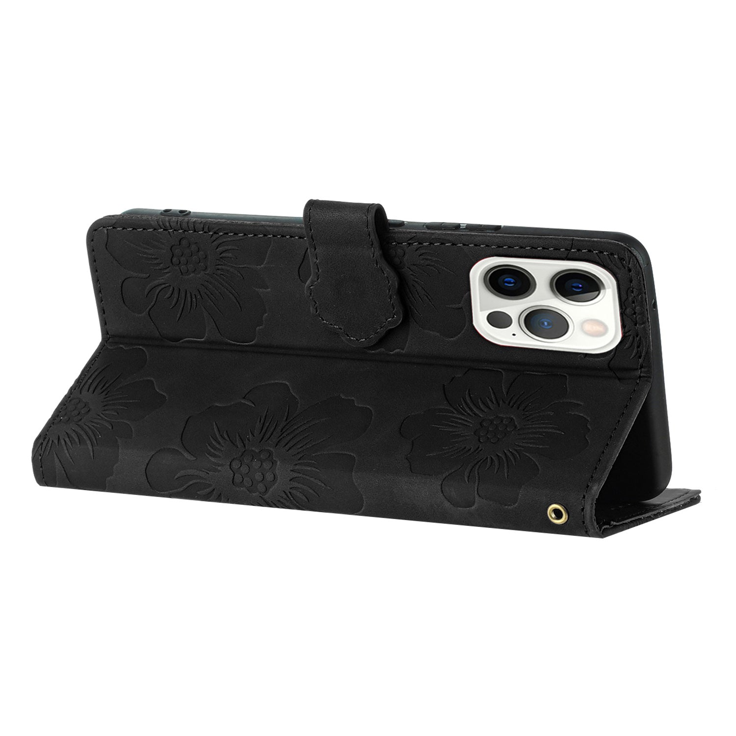 For iPhone 13 Pro Max Stand Phone Case Imprinted Flower Pattern Wallet Cover Flip Style PU Leather Shell