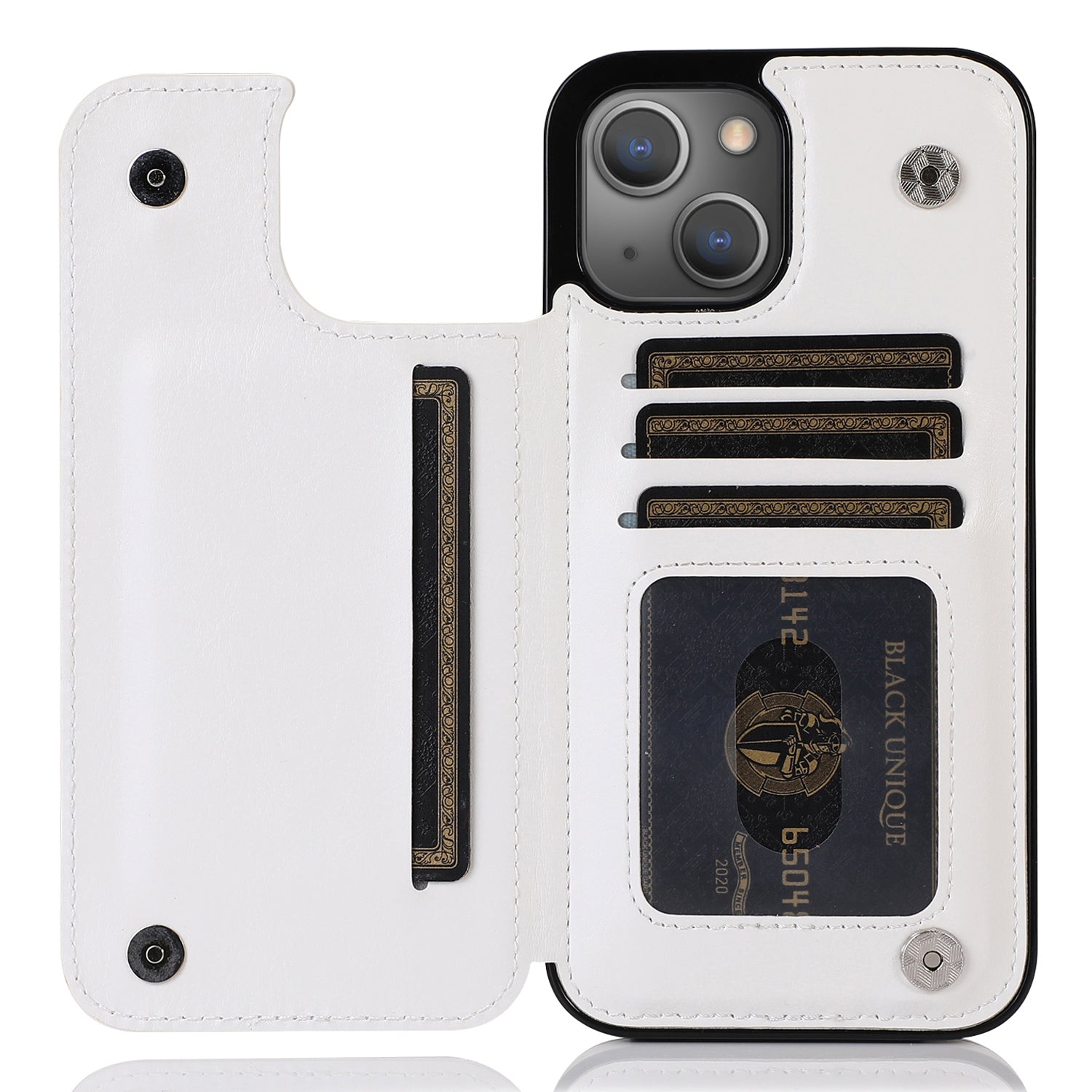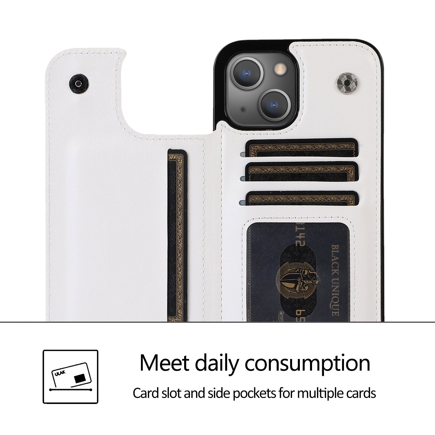 Two pairs of magnetic buttons to keep the card pocket closed firmly for security