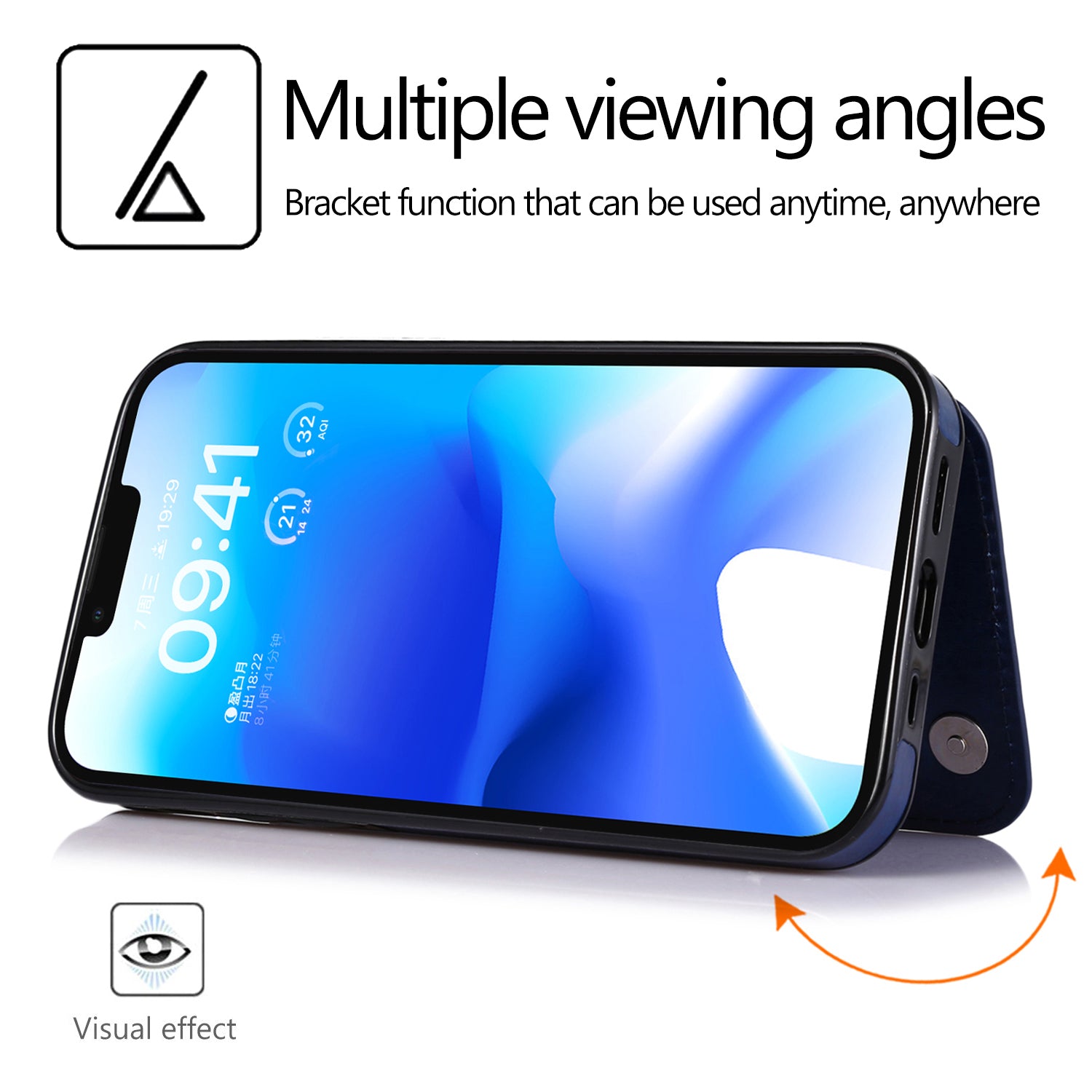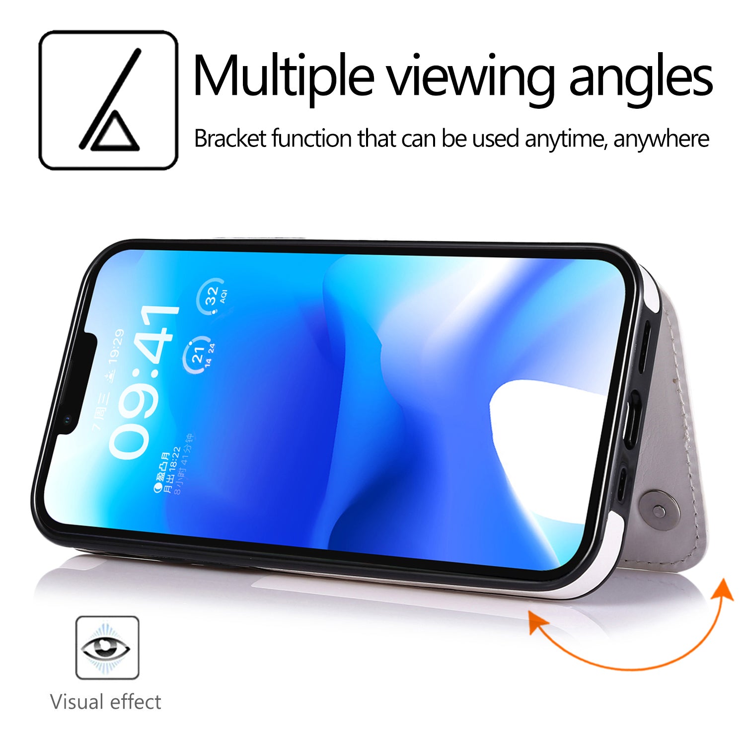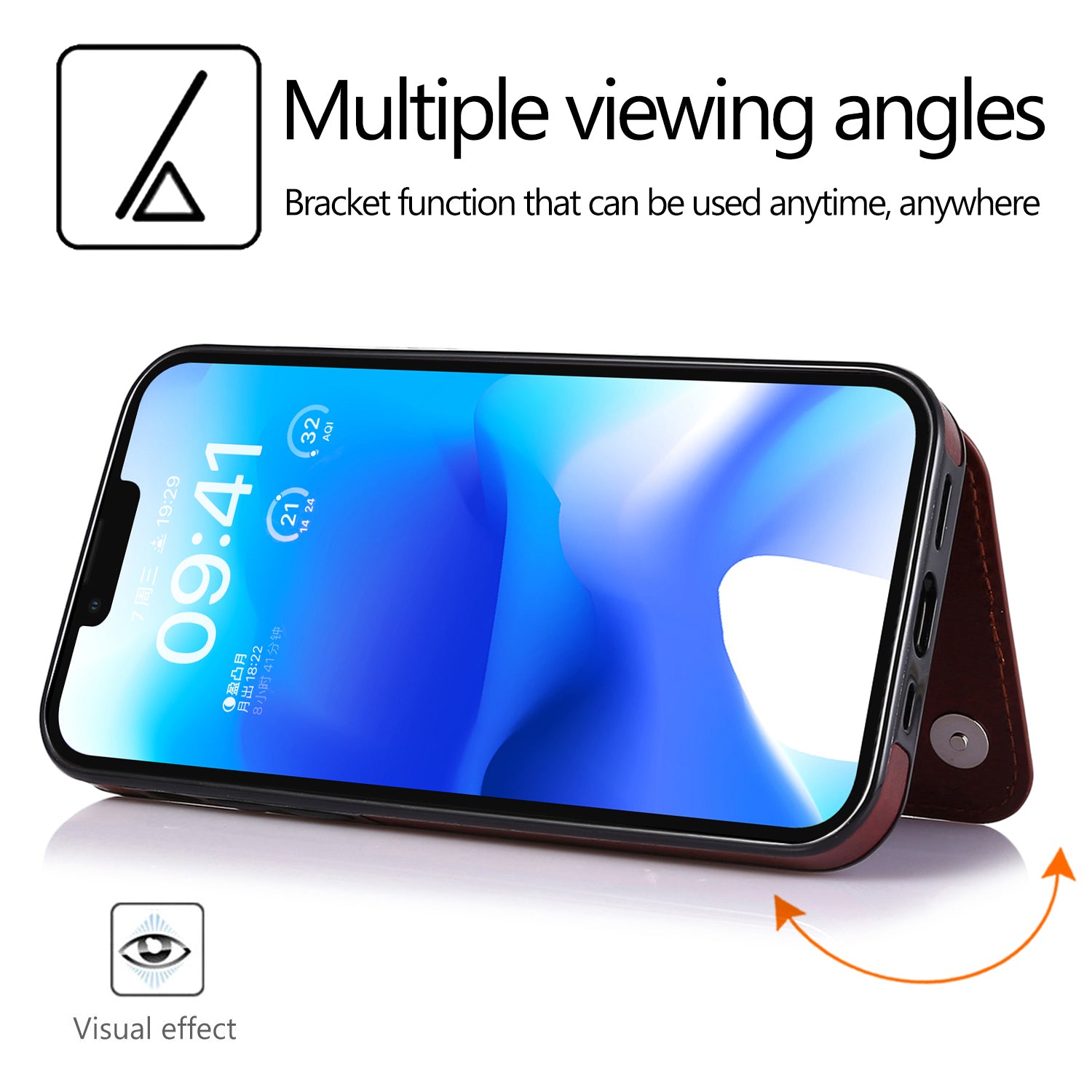 - The card pocket can act as a kickstand to support the phone for multiple adjusted angles