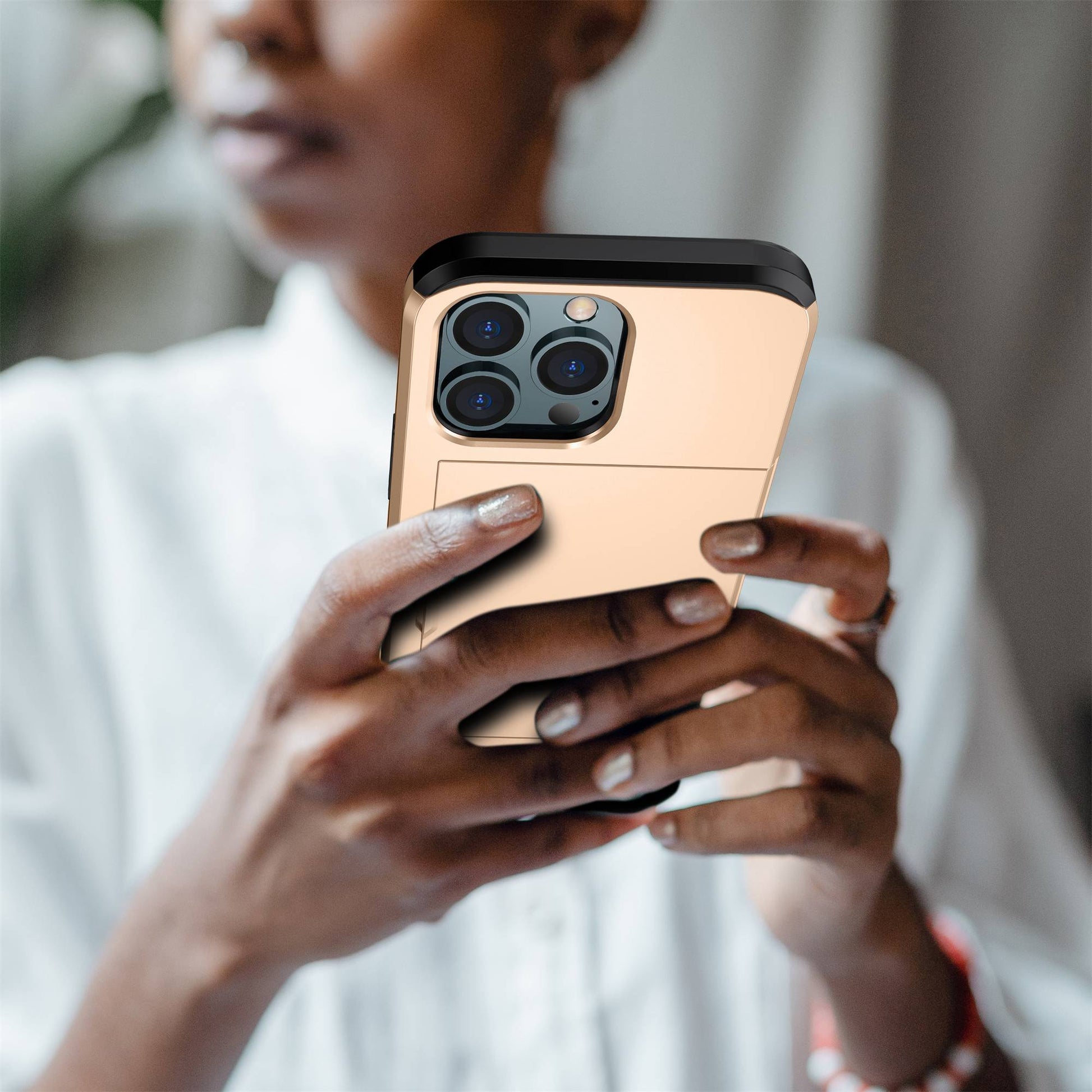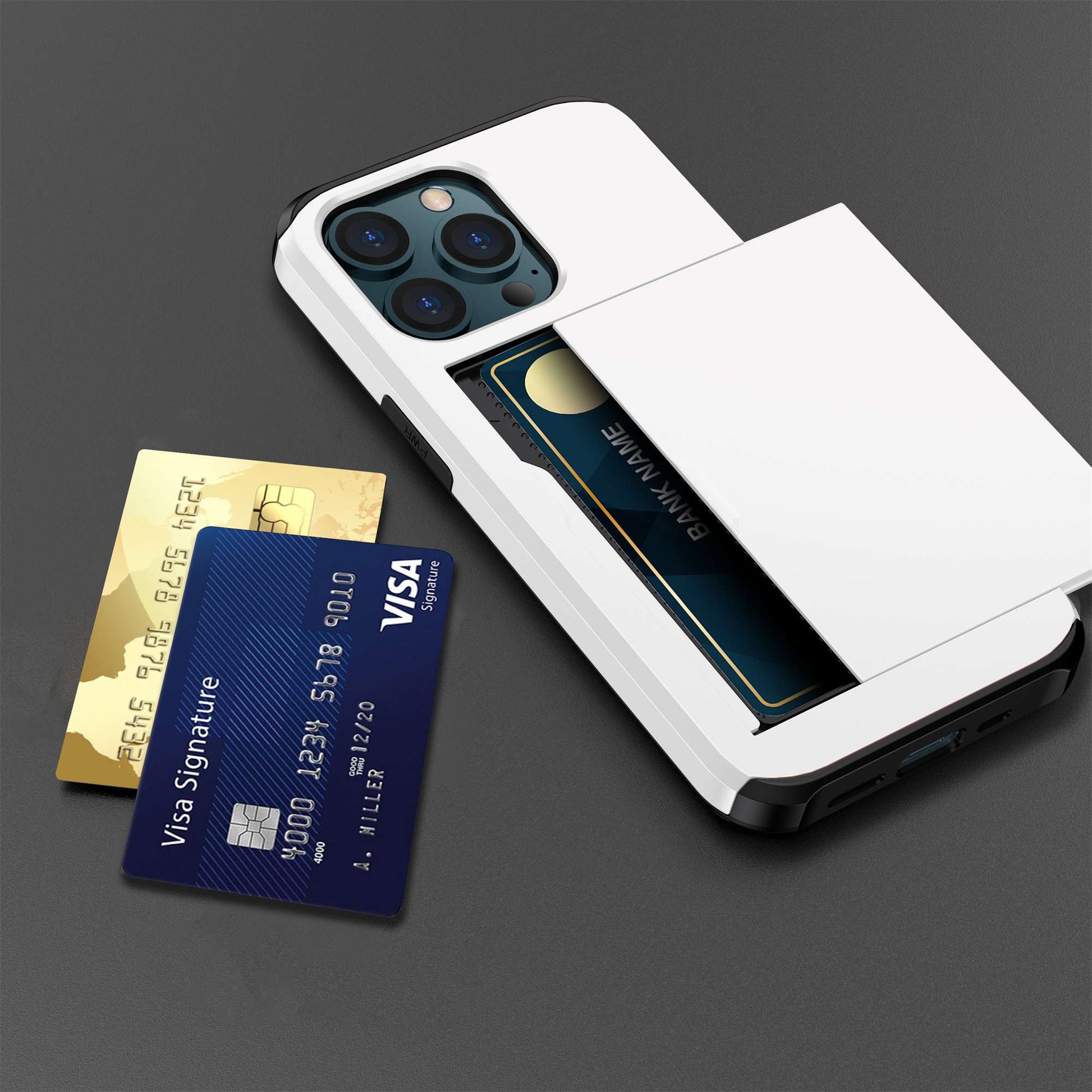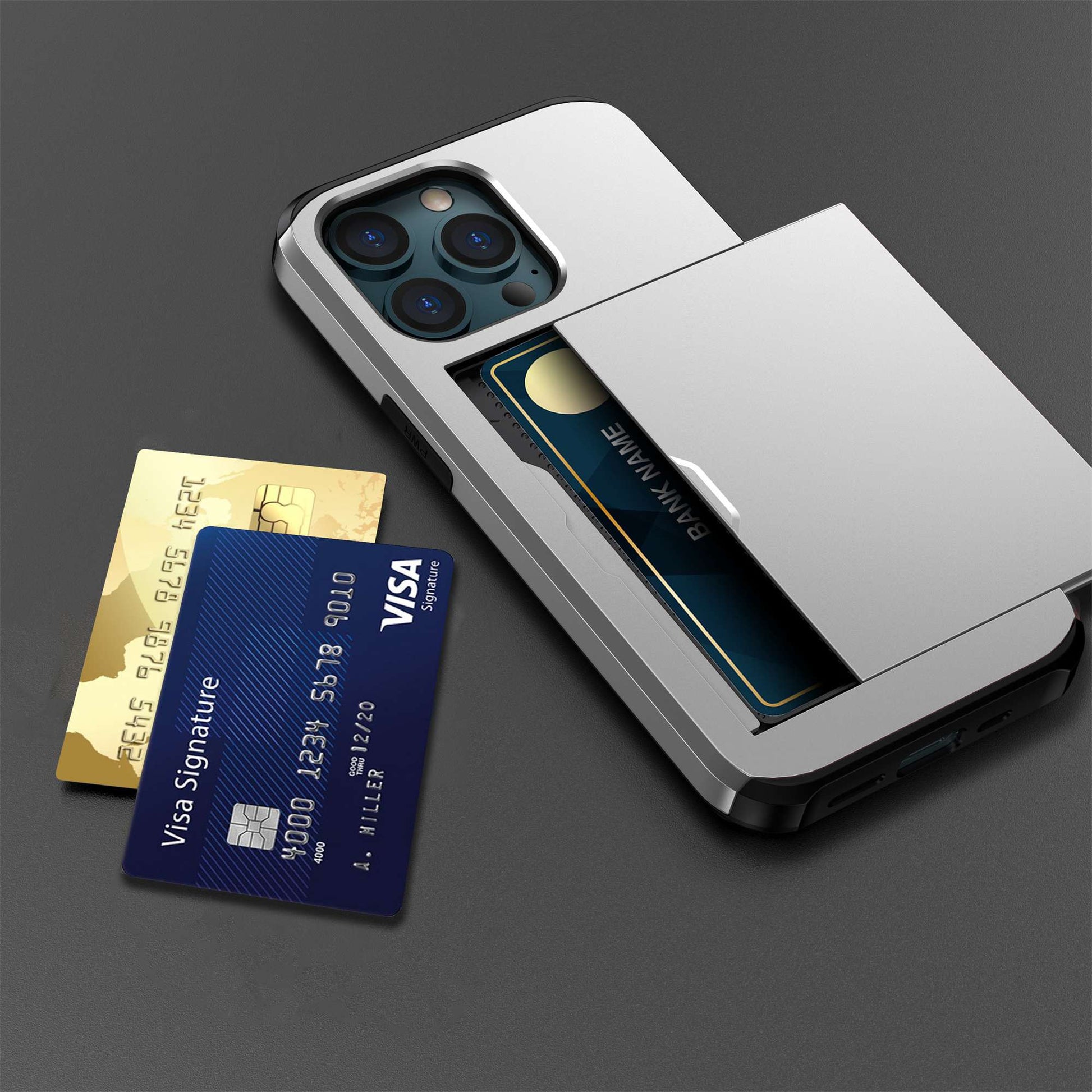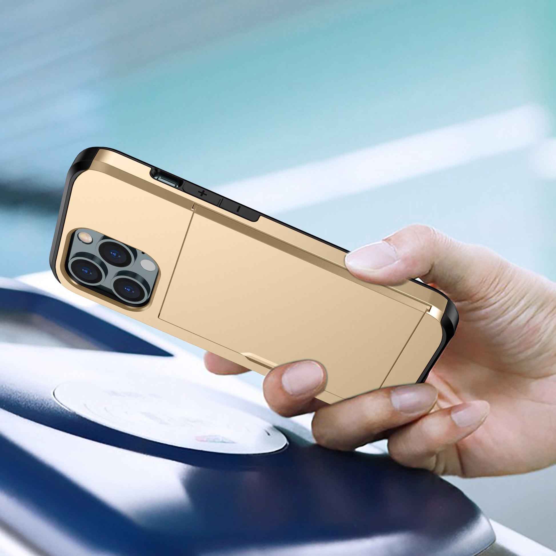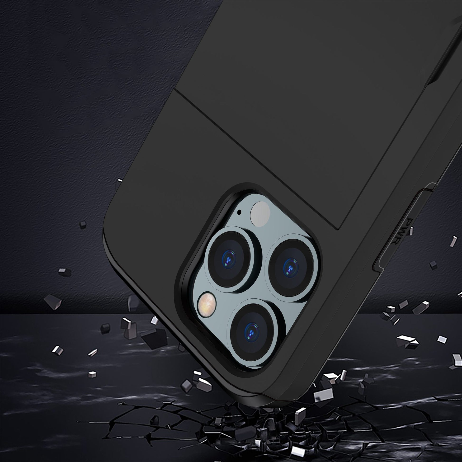 For iPhone 14 Pro 6.1 inch Anti-scratch Phone Case Card Holder Soft TPU + Hard PC Hybrid Cover