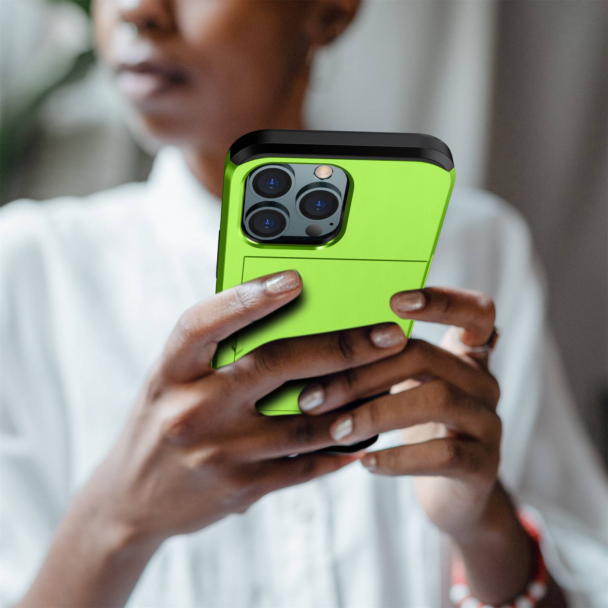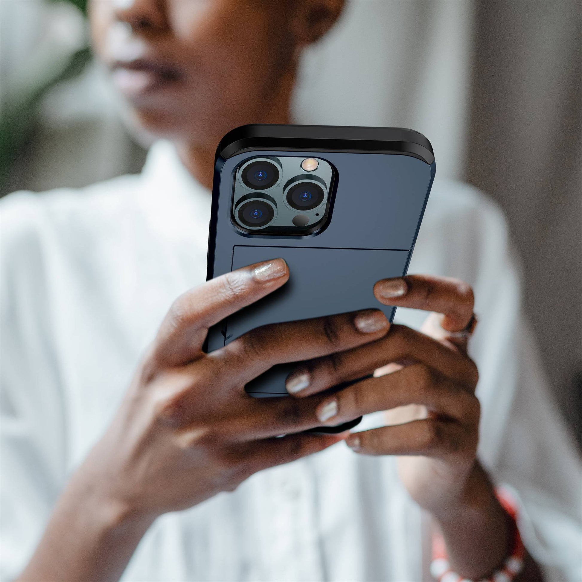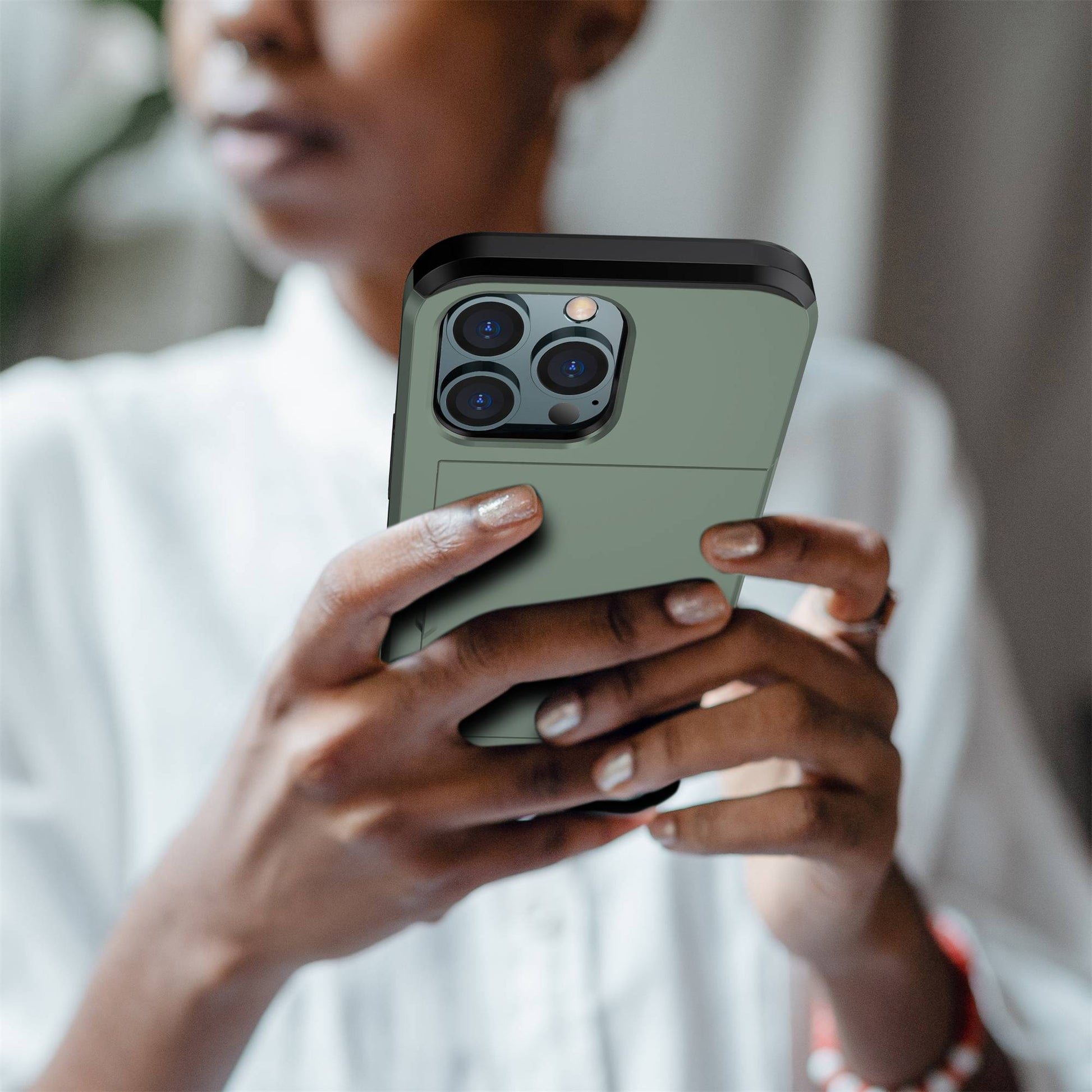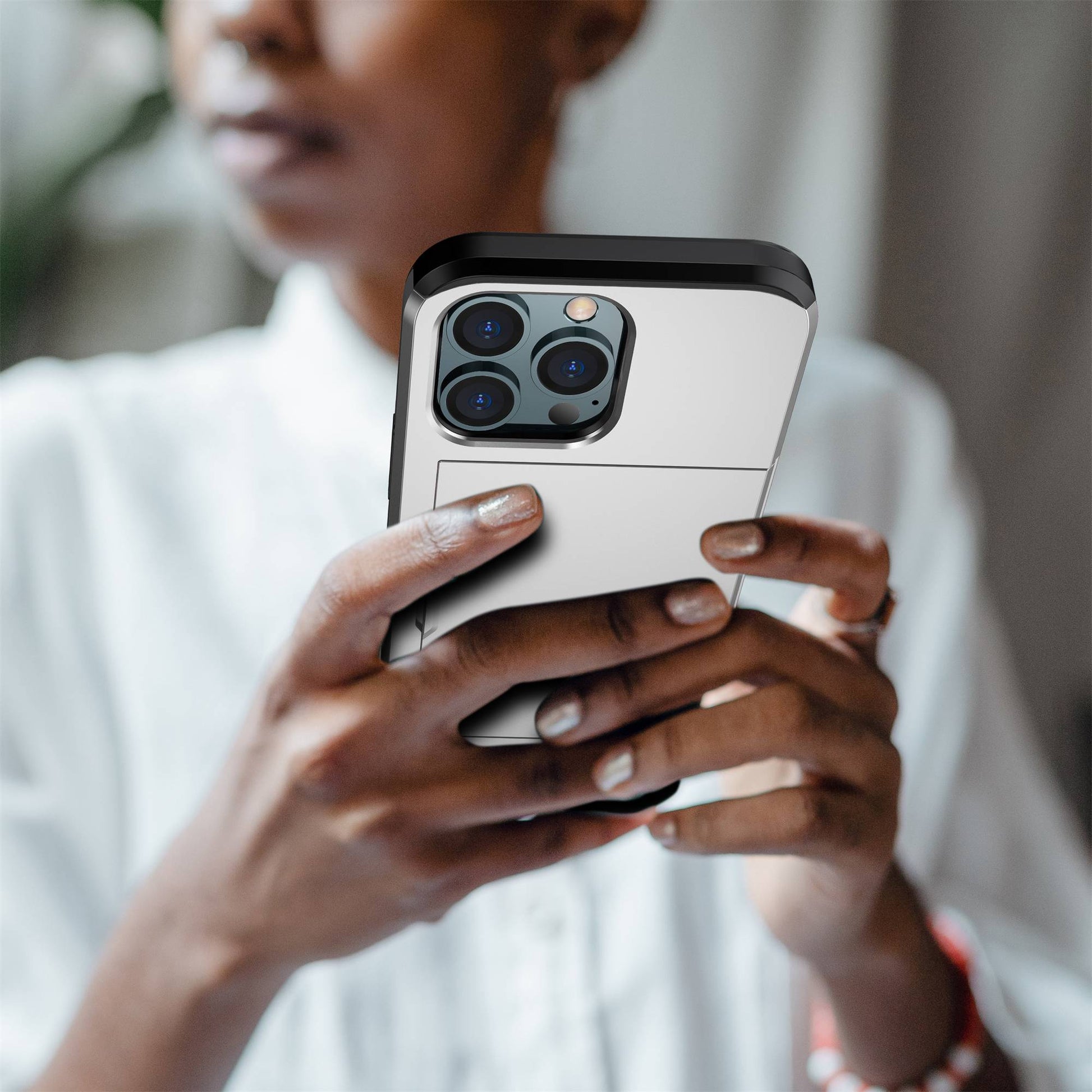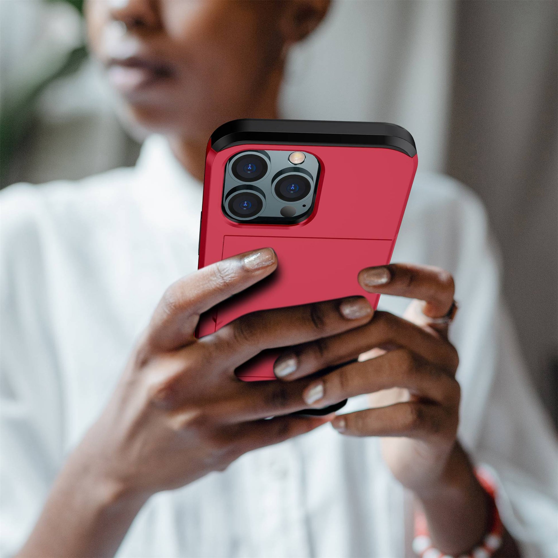 For iPhone 14 Pro 6.1 inch Anti-scratch Phone Case Card Holder Soft TPU + Hard PC Hybrid Cover
