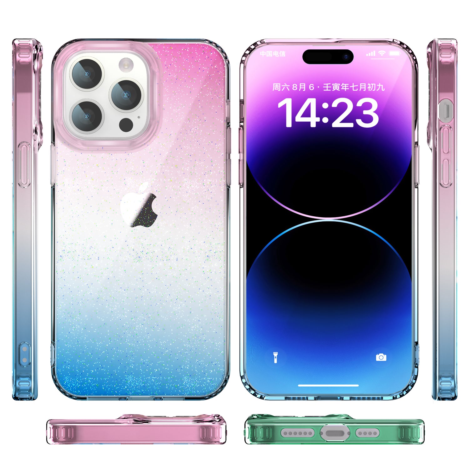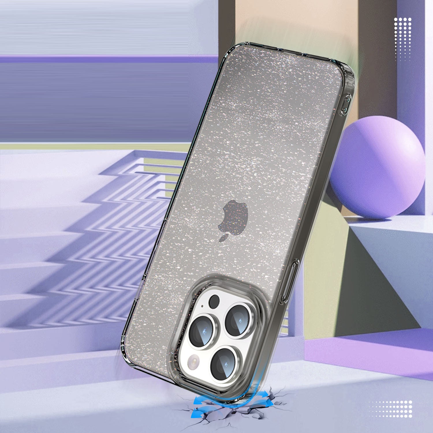 For iPhone 14 Pro Drop Resistant PC+TPU Case Glitter Powder Clear IMD Phone Cover