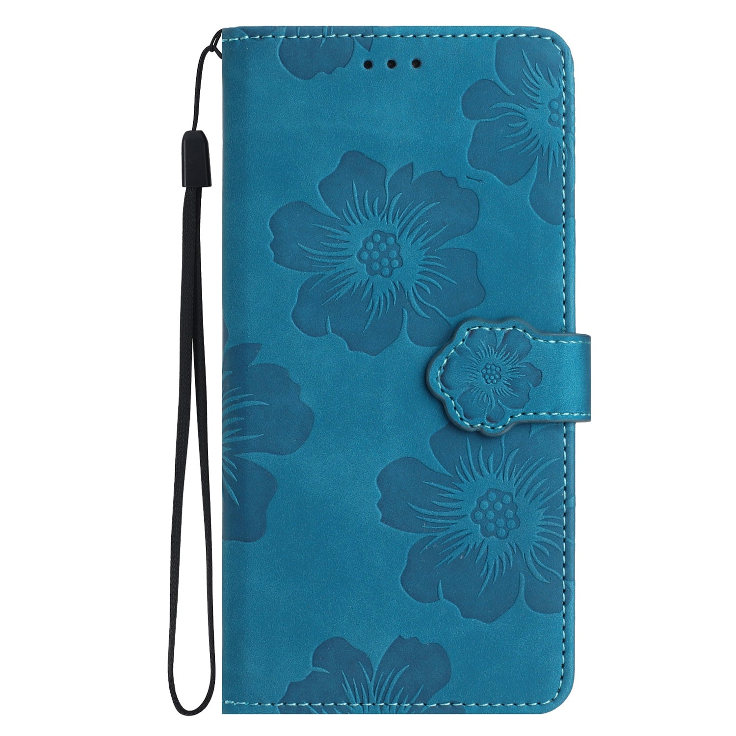 For iPhone 14 Pro Imprinted Flower Pattern Phone Case PU Leather Flip Stand Wallet Cover Shell with Strap