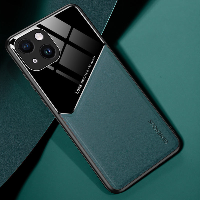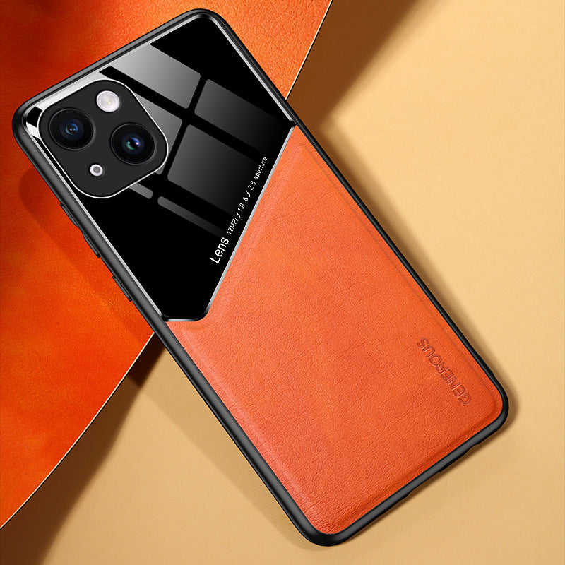 For iPhone 14 Protective Case TPU + PC + Textured PU Leather Coating Drop-proof Phone Cover Support Magnetic Car Mount