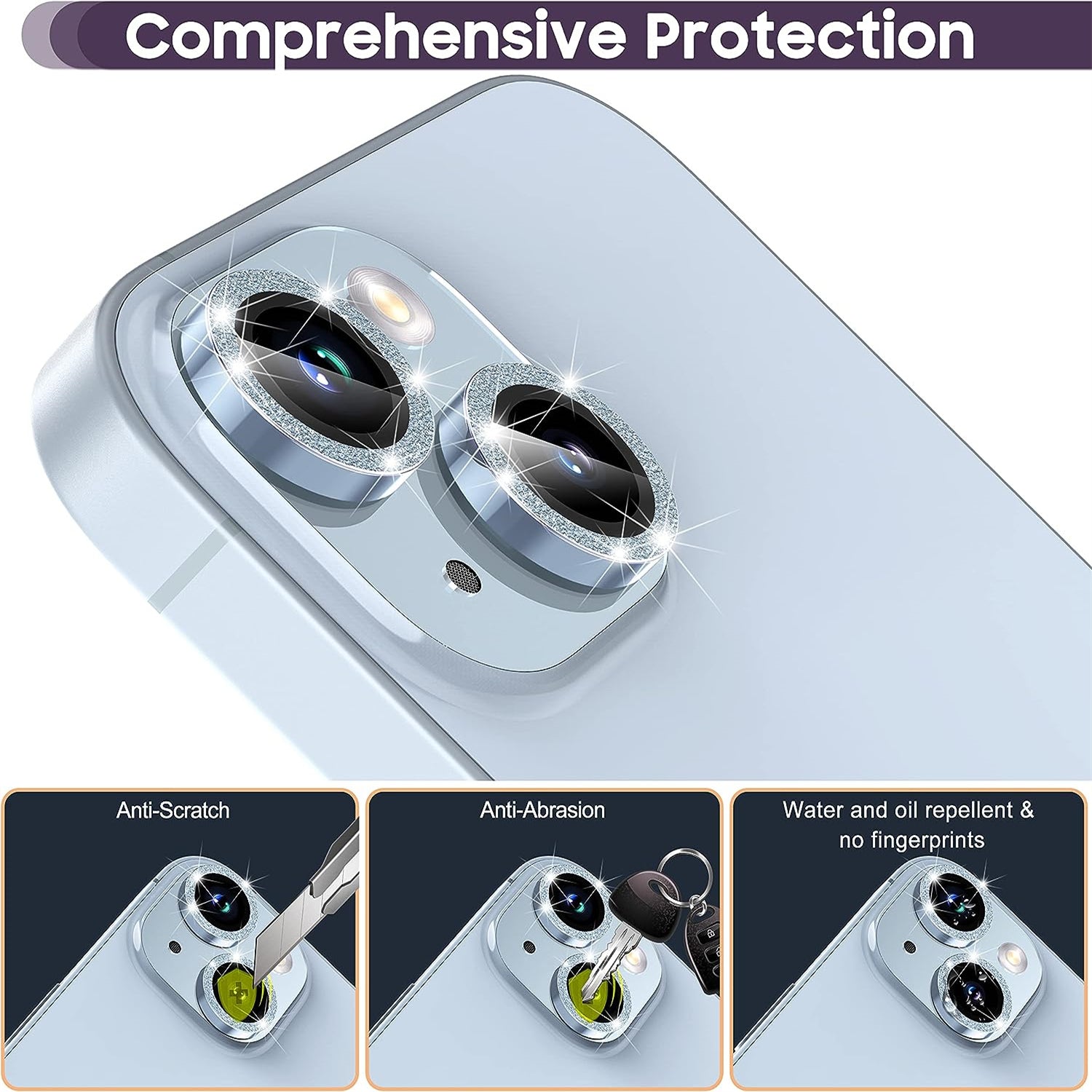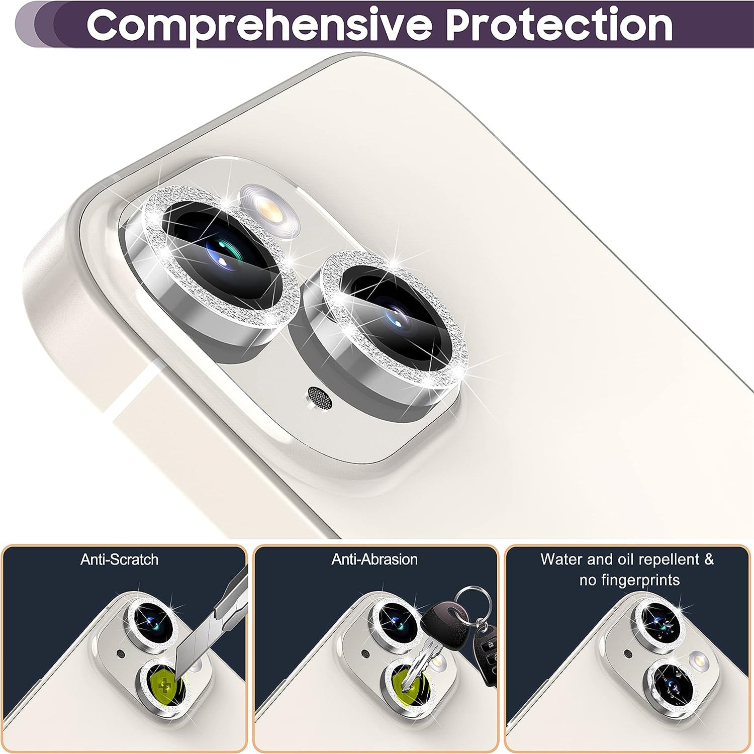 For iPhone 15 / 15 Plus Camera Lens Protector Set Glitter Metal Ring Tempered Glass Back Lens Film