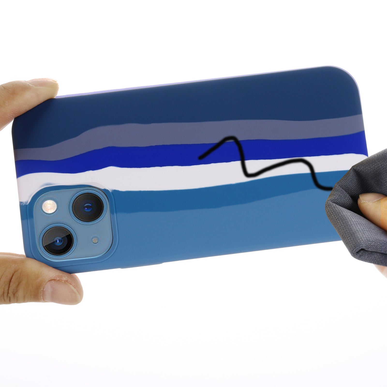 For iPhone 15 Plus Rainbow Rubberized Liquid Silicone+PC Back Cover Fiber Lining Phone Case