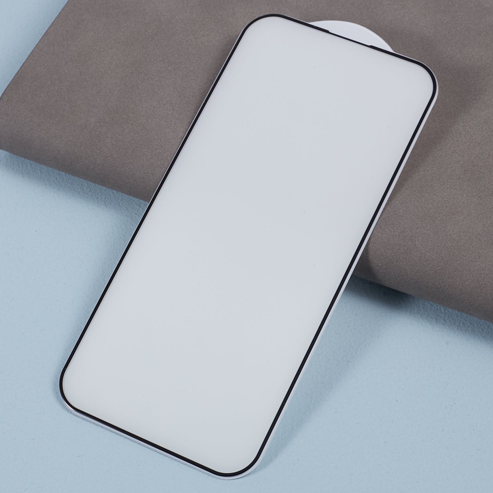 For iPhone 15 Purple Light Black Edge Tempered Glass Film Silk Printing Full Glue Full Screen Protector