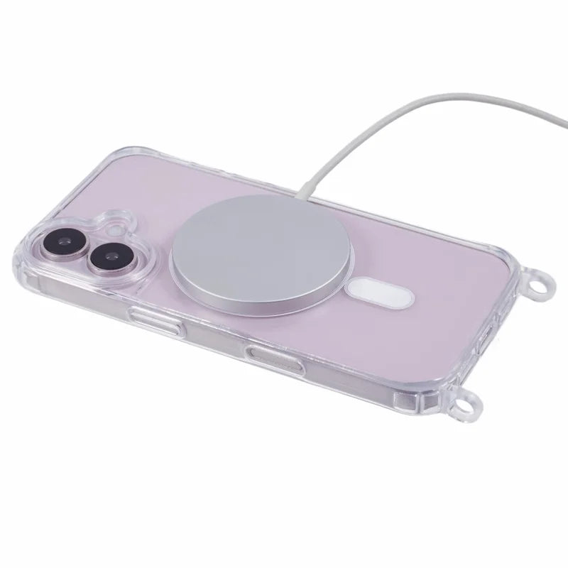 For iPhone 16 Plus Case Compatible with MagSafe TPU+PC 1.5mm Clear Phone Cover with Lanyard Holes
