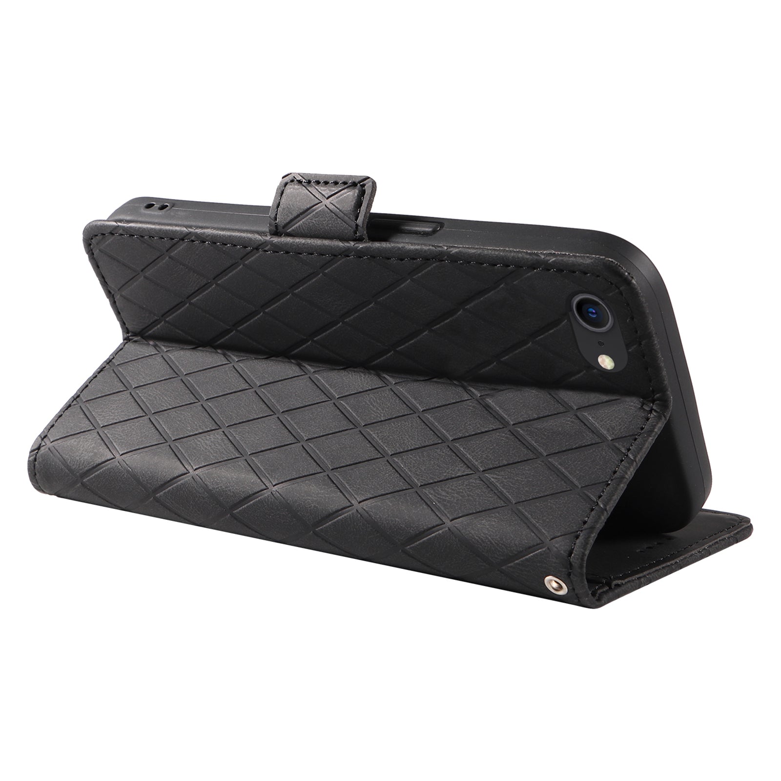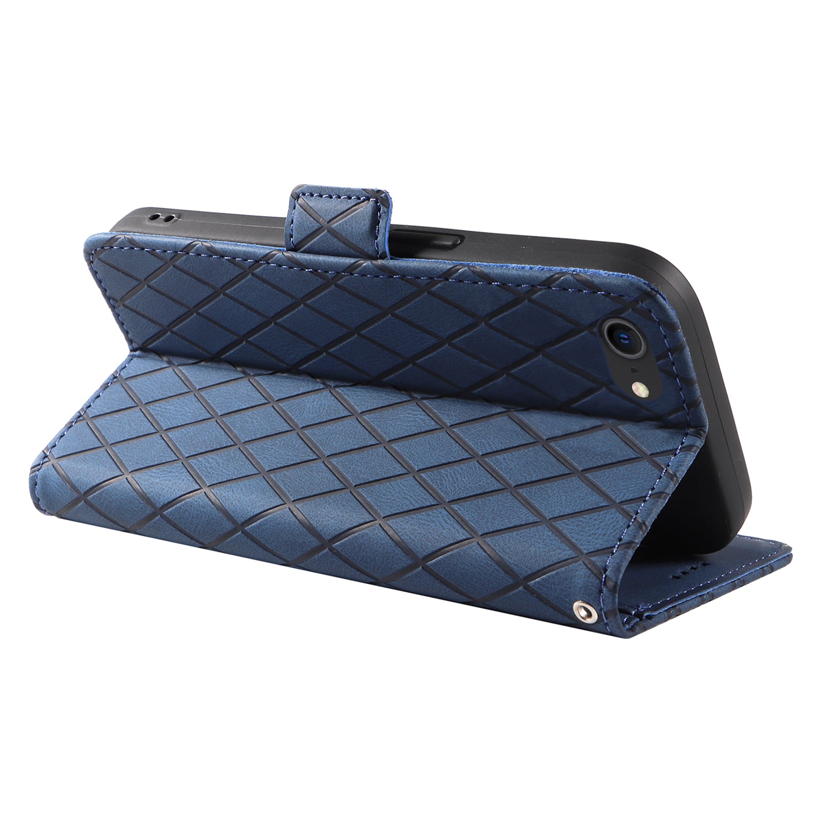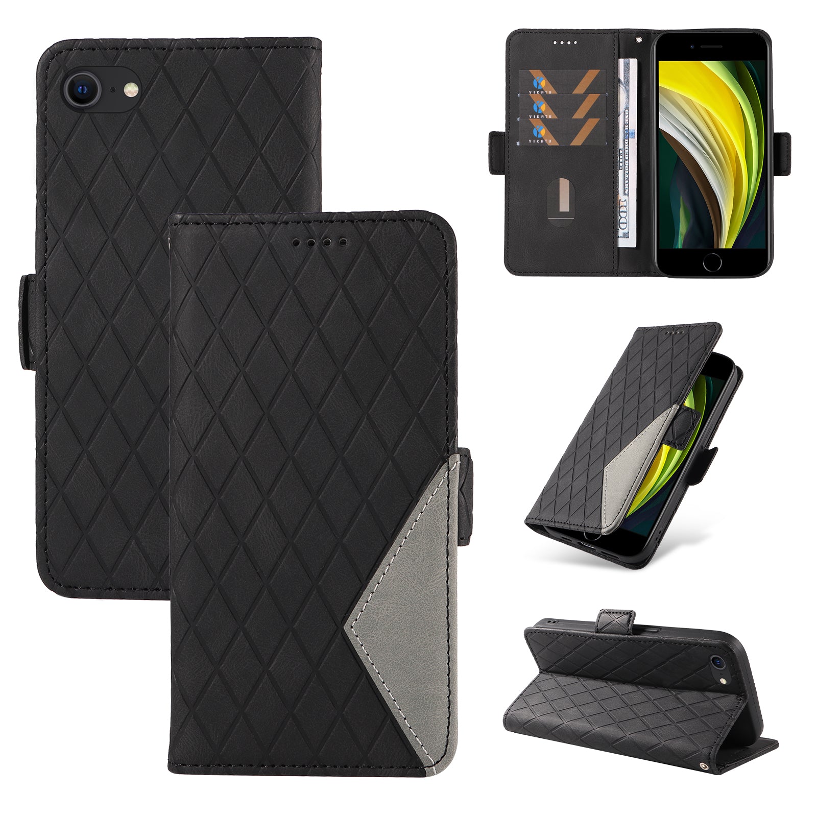 For iPhone 6 / 6s / 7 / 8 / SE (2020) / SE (2022) Rhombus Imprinted Stand Cover Color Splicing Phone Leather Wallet Case