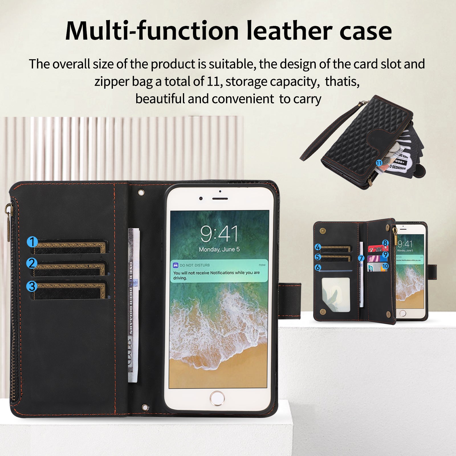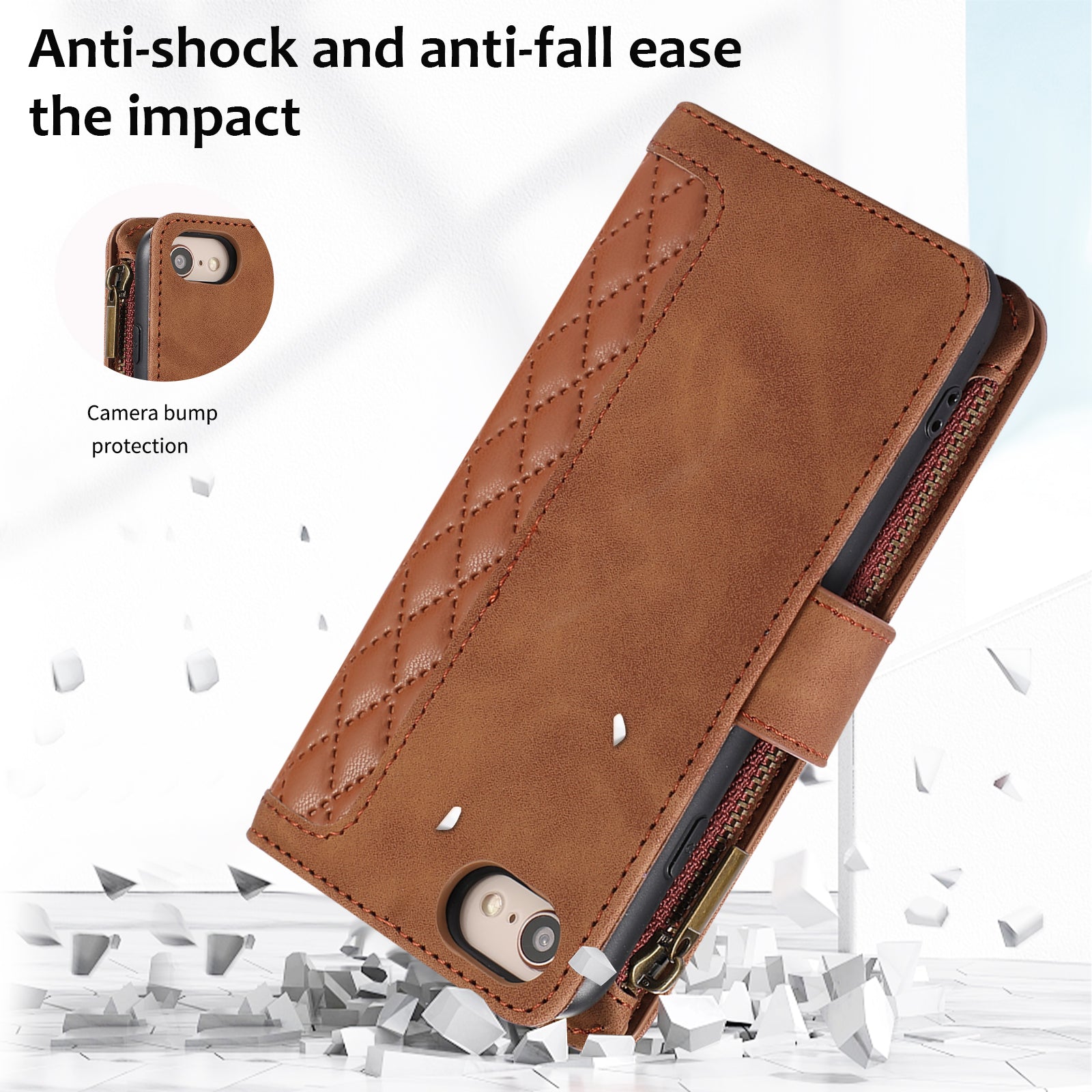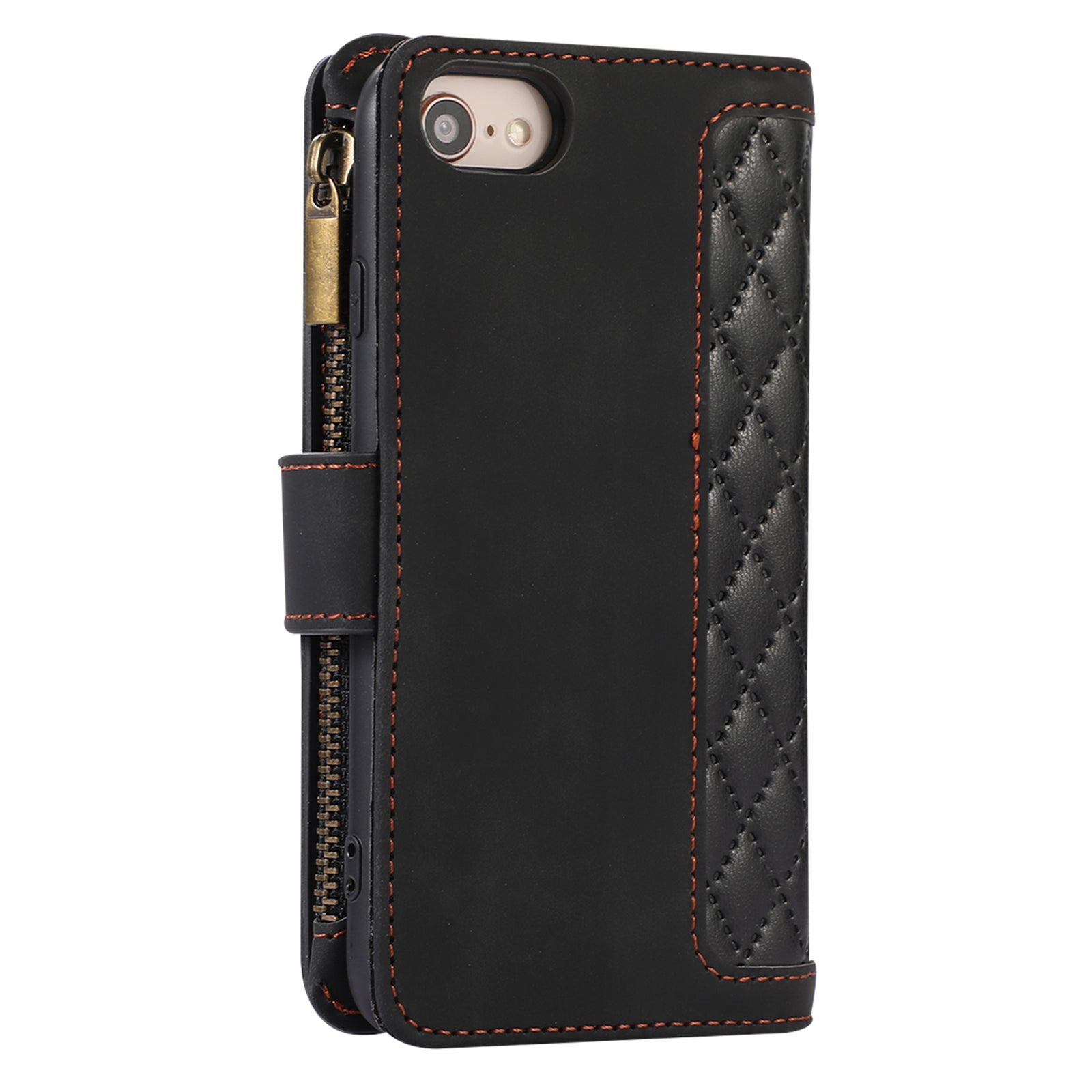 For iPhone 7 / 8 4.7 inch / SE (2022) / (2020) Imprinted Phone Case 9 Card Slots Leather Wallet Stand Cover with Zipper Pocket